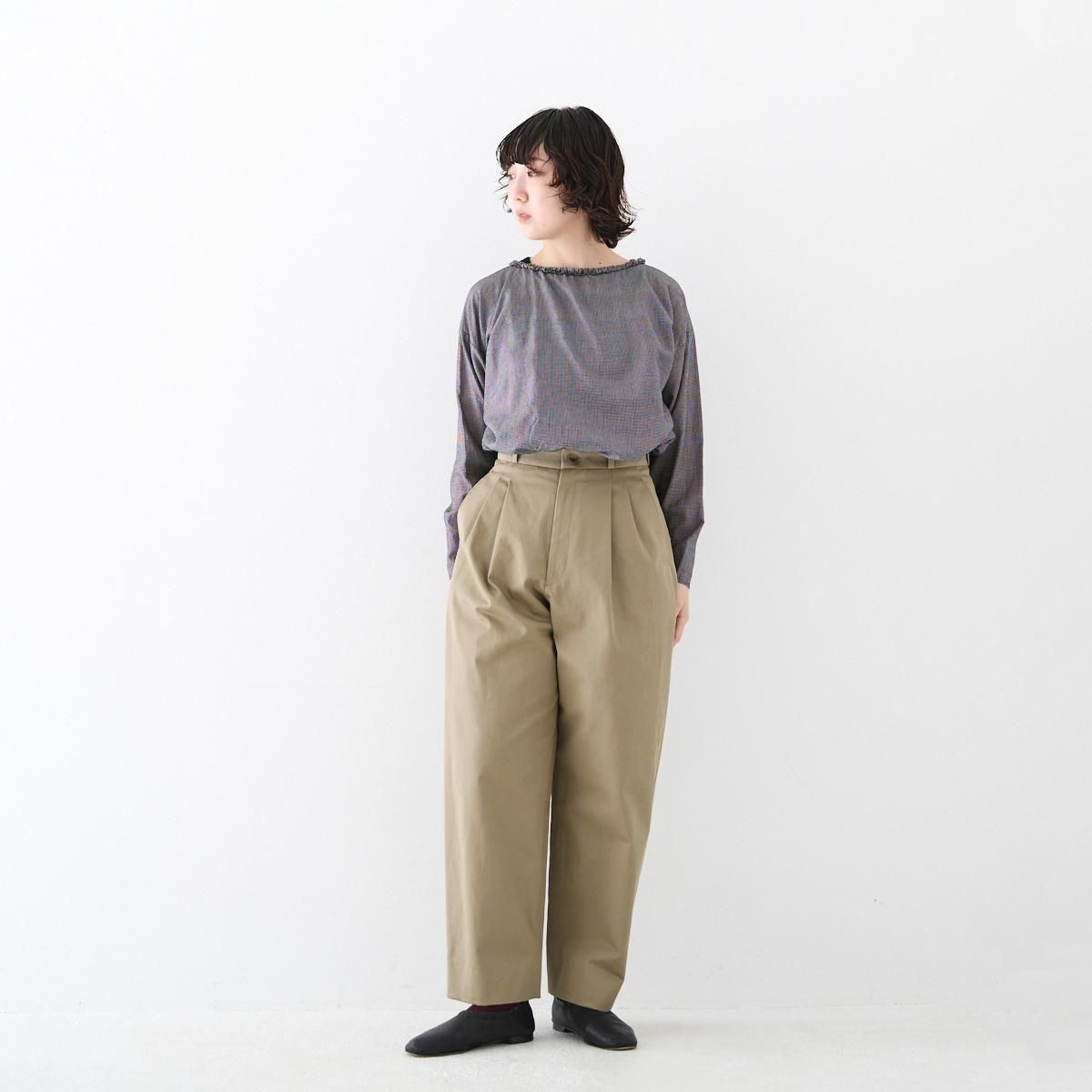 やや深めの股上に、ヒップから膝にかけて柔らかく丸みを持たせたシルエットです。