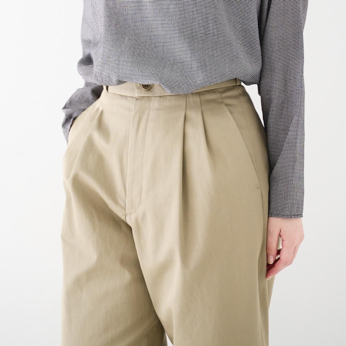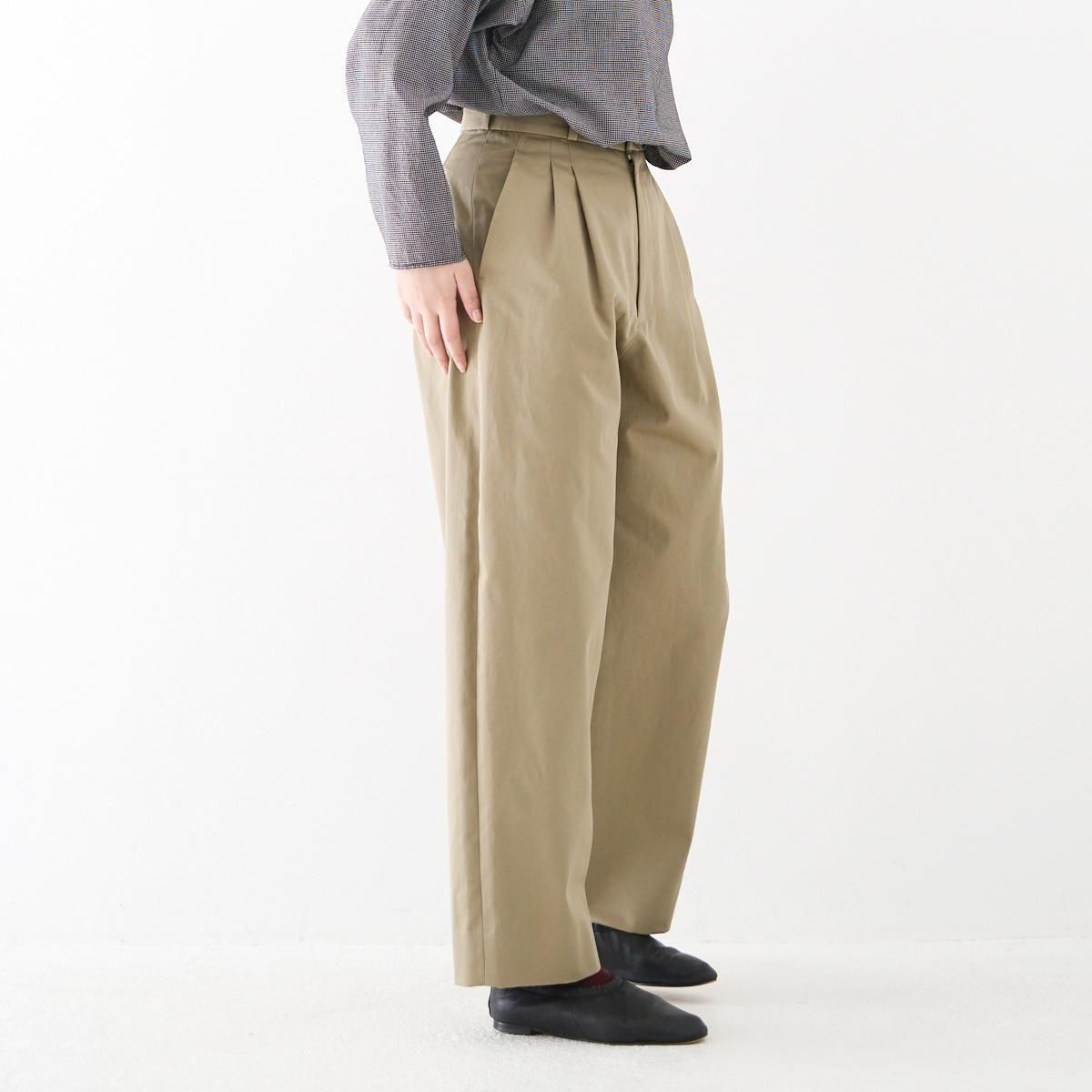 上質なオーガニックコットンを高密度に織り上げたチノクロスで仕立てた、新型のスラックス。
