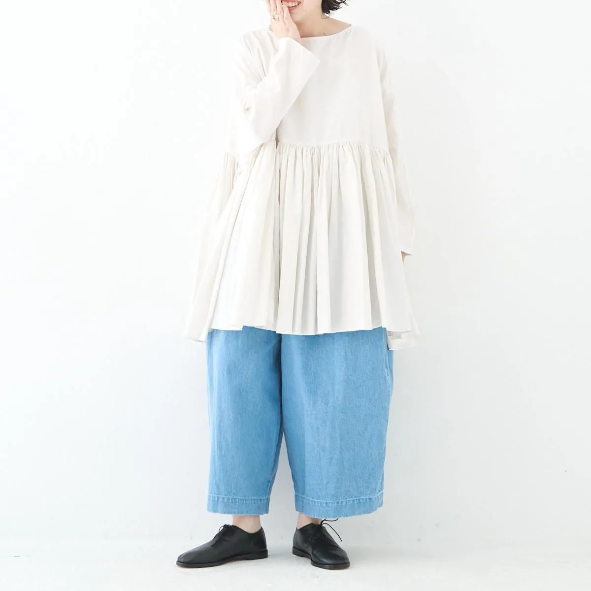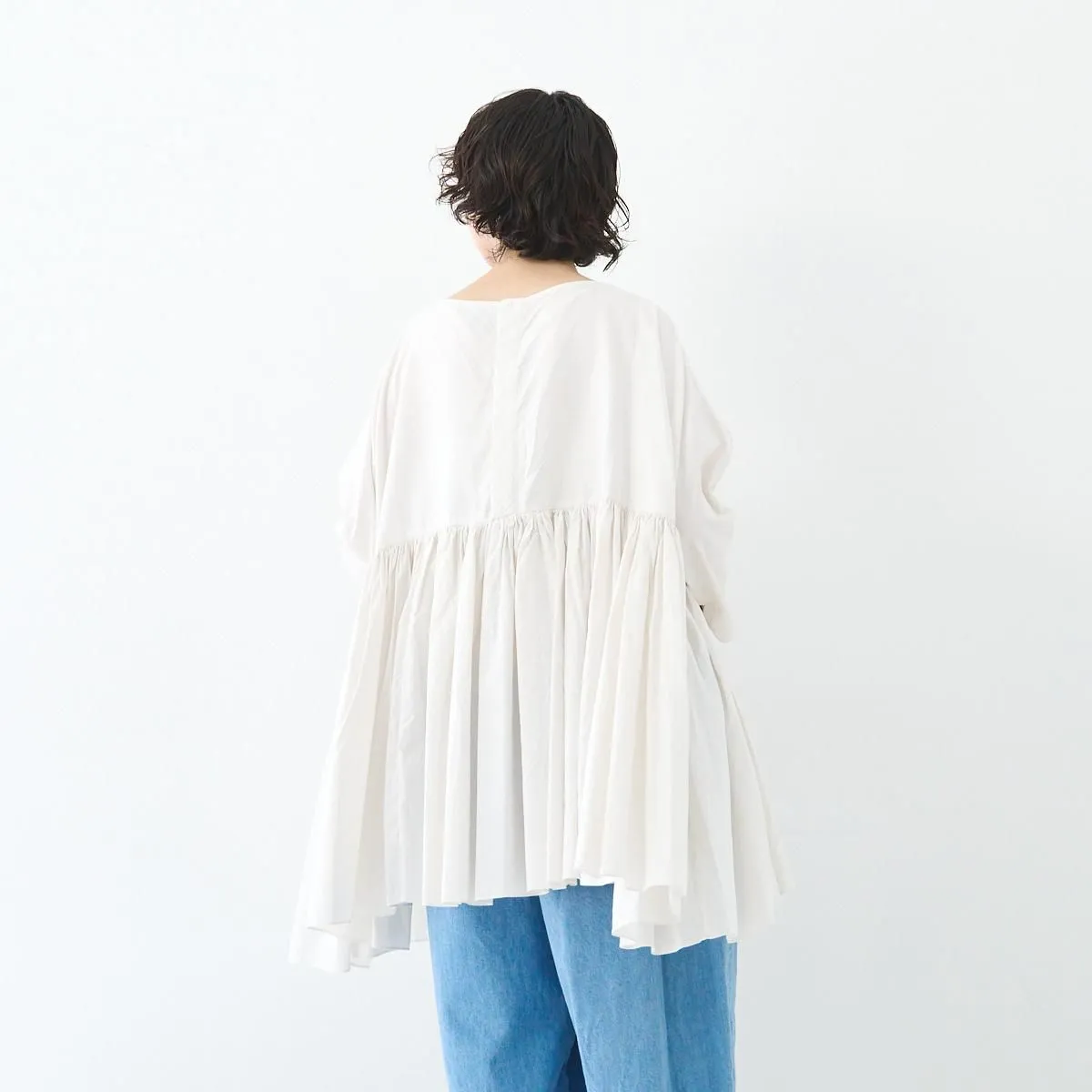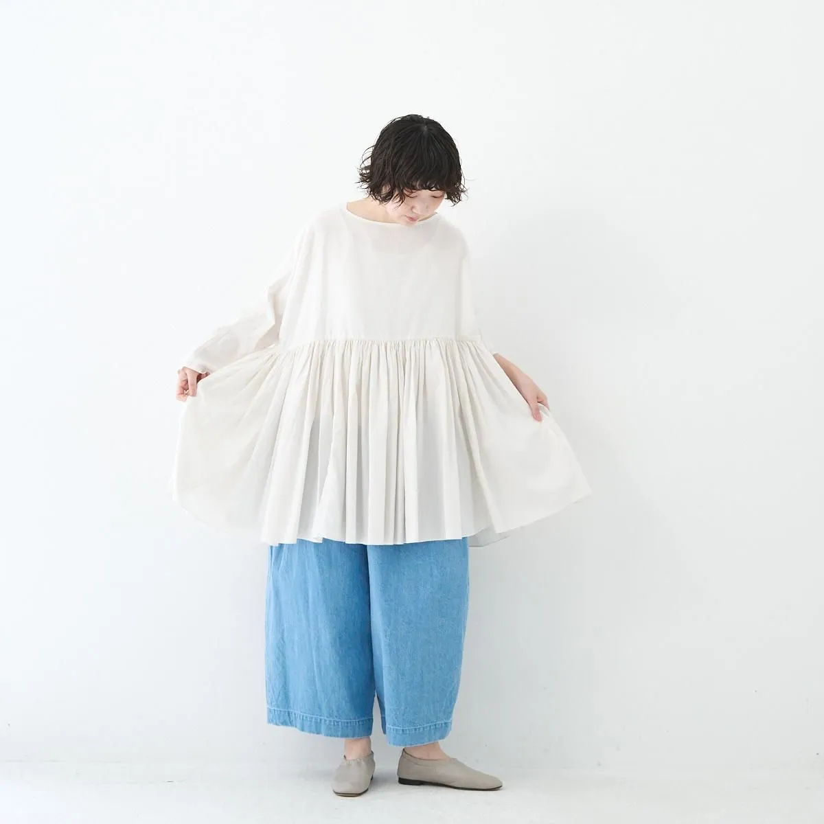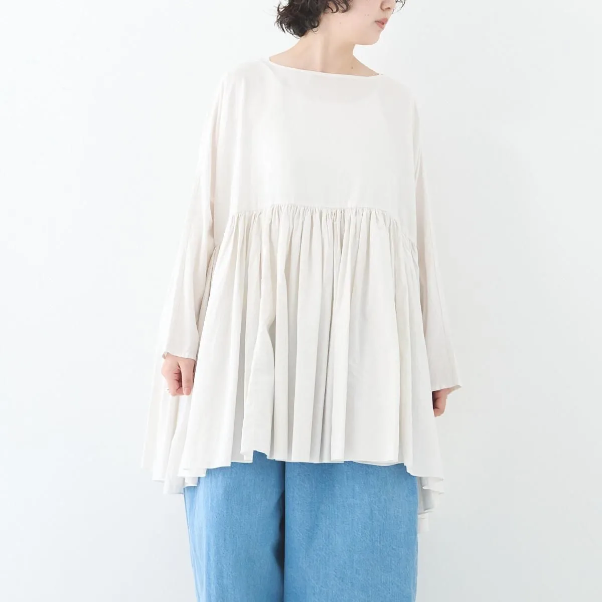 TOP > SP(エシュペー) > SP (エシュペー)exhibition / FINE COTTON OXFORD WIDE GATHER BLOUSE