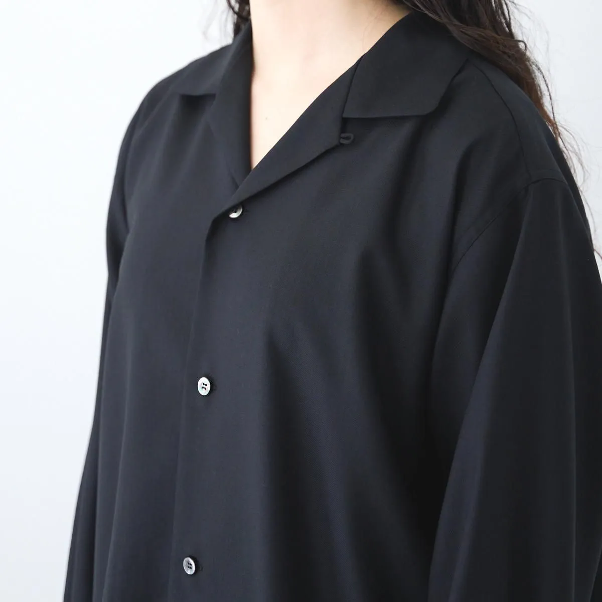 TOP > SP(エシュペー) > SP (エシュペー)exhibition / CLASSIC FINE WOOL OPEN COLLAR SHIRT