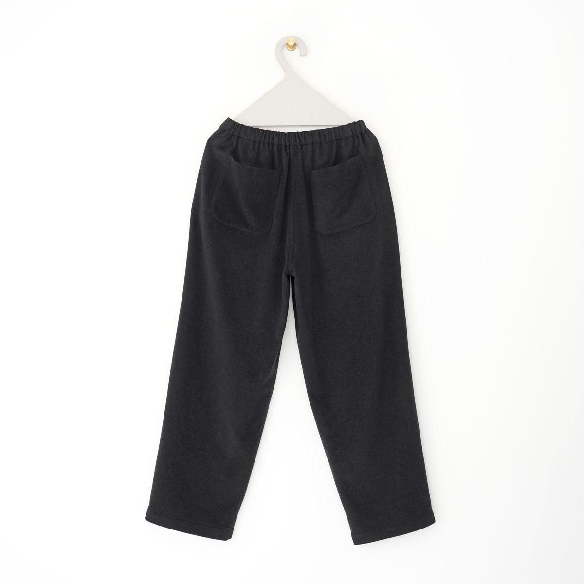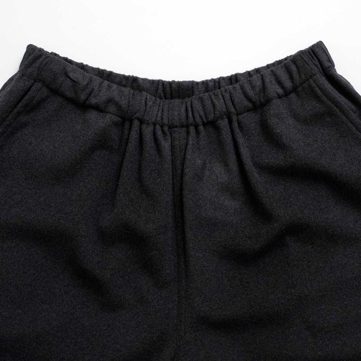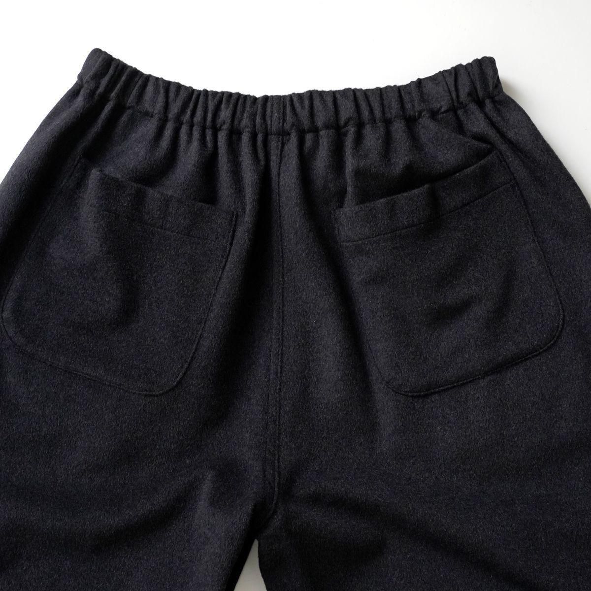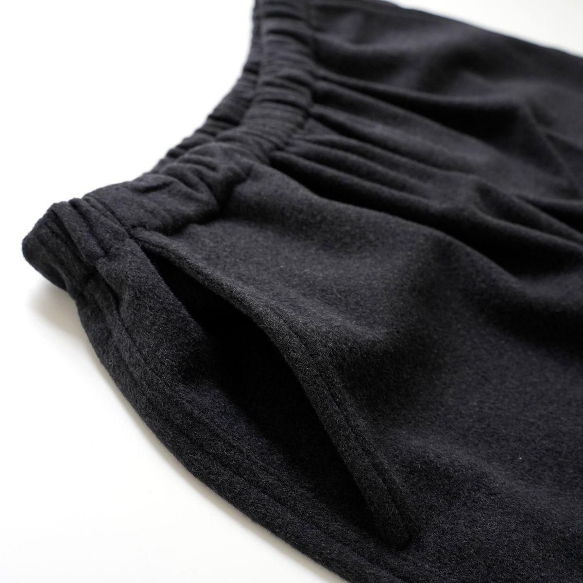 holk定番のカンフーパンツ。とても滑らかな肌触りのショートビーバー仕上げのウール生地。 ドレープ感が綺麗なシルエットを作ってくれ、ゴムウエストにドローコードでサイズ調整しやすくオンもオフもリラックスしてお召しいただけます。 セットアップもおすすめです。 両サイドにポケット付き 25AW unsex size: 1・2 1:ウエスト31cm 股上30cm 股下65cm 裾幅21cm 2:ウエスト34cm 股上31cm 股下69cm 裾幅22cm ※サイズ計測の多少の誤差はご了承下さい。 color:Charcoal material: wool100% model:163cm(#1) 取り扱い店舗・・・dieci芝川ビル店 -------------------------------------------------------- holk|ホーク "身近な人々のための服の在り方”をコンセプトに、尾州の小さな工場の熟練された職人の手によって機織りから縫製までの工程を行なっています。若き職人とともに技術を学び後世に残るものづくりに取り組み、また物作りから購入までに関わる全ての人の心が豊かになるプロダクトを目指しています。 size_chart