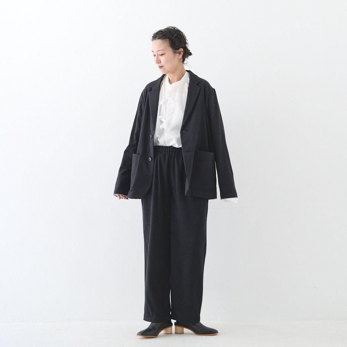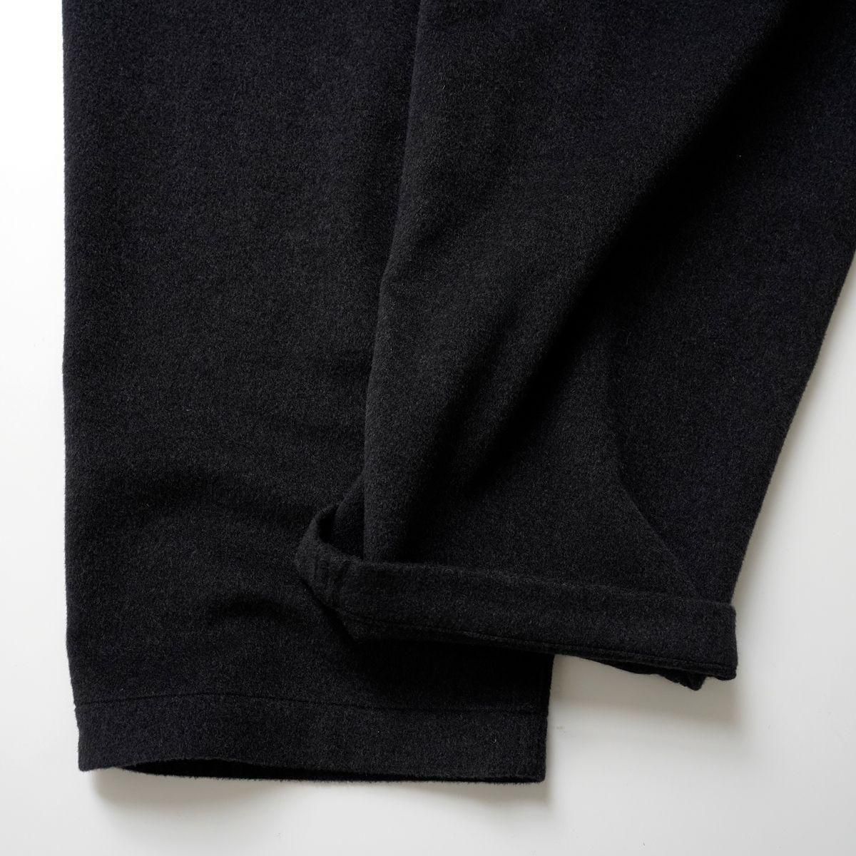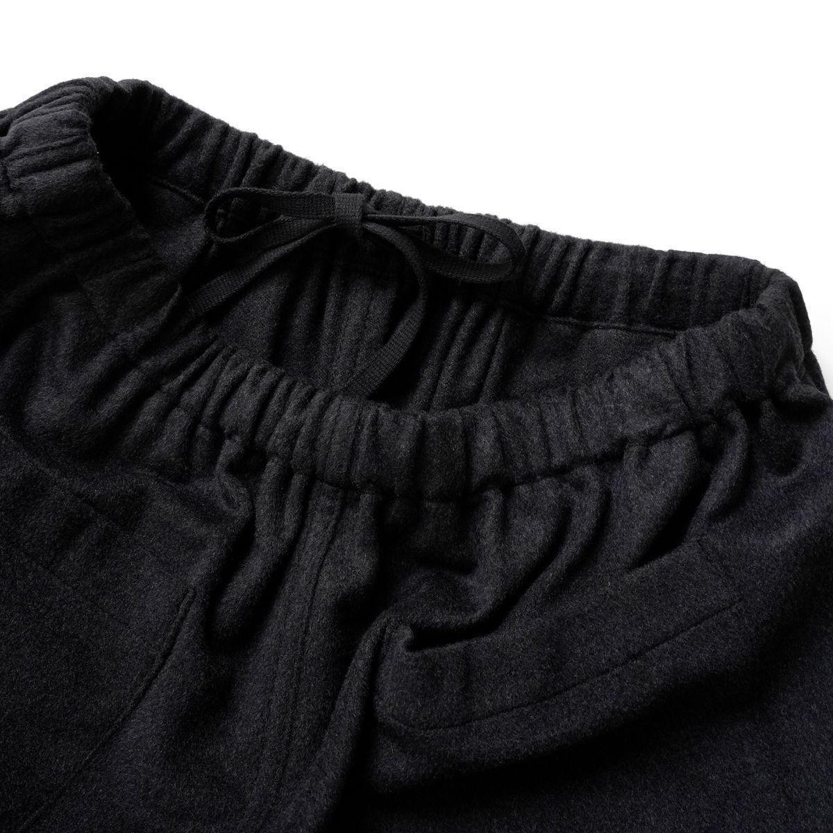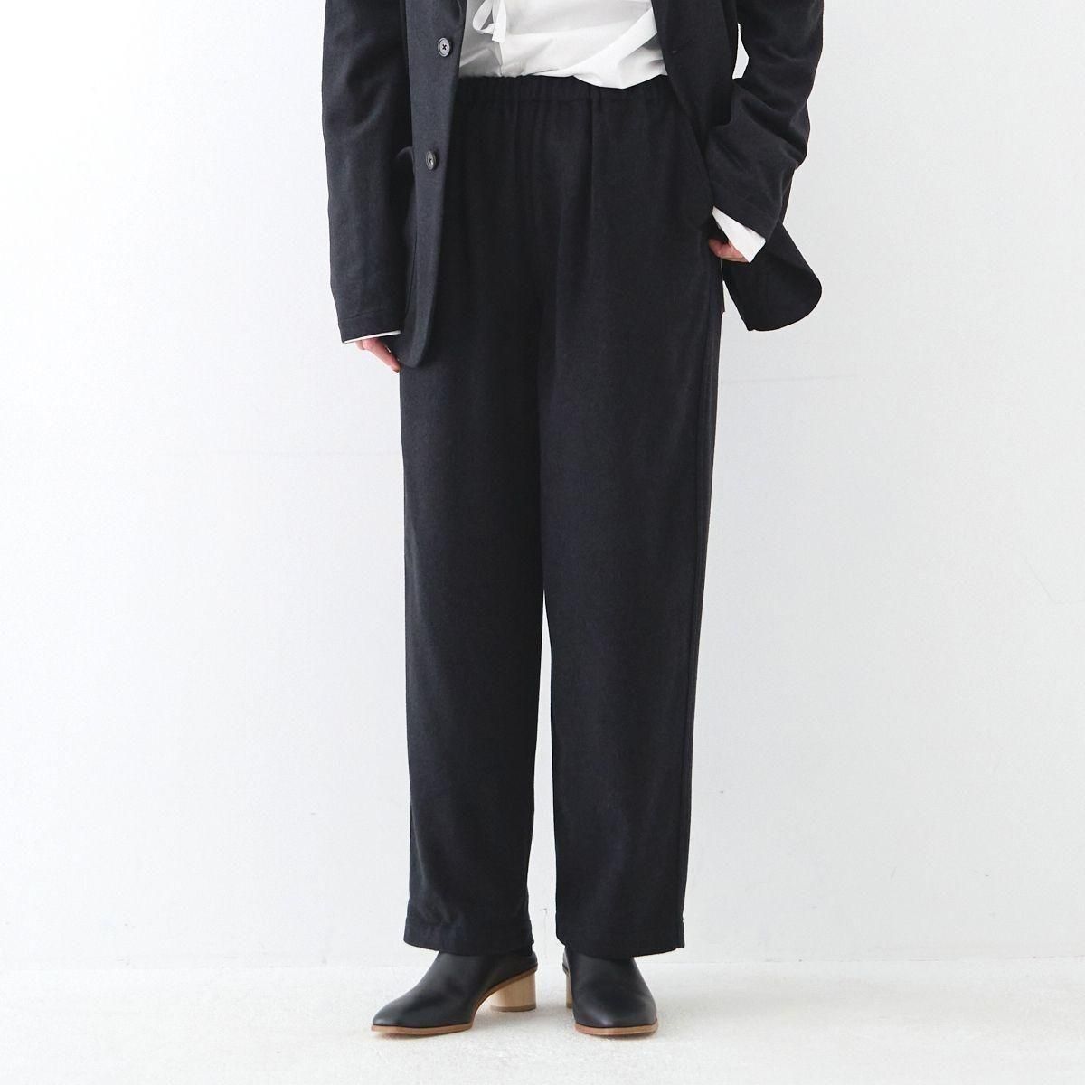 holk定番のカンフーパンツ。とても滑らかな肌触りのショートビーバー仕上げのウール生地。 ドレープ感が綺麗なシルエットを作ってくれ、ゴムウエストにドローコードでサイズ調整しやすくオンもオフもリラックスしてお召しいただけます。 セットアップもおすすめです。 両サイドにポケット付き 25AW unsex size: 1・2 1:ウエスト31cm 股上30cm 股下65cm 裾幅21cm 2:ウエスト34cm 股上31cm 股下69cm 裾幅22cm ※サイズ計測の多少の誤差はご了承下さい。 color:Charcoal material: wool100% model:163cm(#1) 取り扱い店舗・・・dieci芝川ビル店 -------------------------------------------------------- holk|ホーク "身近な人々のための服の在り方”をコンセプトに、尾州の小さな工場の熟練された職人の手によって機織りから縫製までの工程を行なっています。若き職人とともに技術を学び後世に残るものづくりに取り組み、また物作りから購入までに関わる全ての人の心が豊かになるプロダクトを目指しています。 size_chart