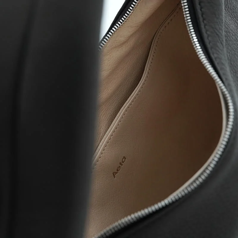DEER COLLECTIONより、こちらはコロンとした丸いフォルムのワンショルダー。 本体と持ち手が一体となり、底まで全て曲線で仕上げたデザインが特徴です。 軽く柔らかなディアレザーの表情が上質感があり、とても雰囲気のあるバッグです。 無駄を省いたシンプルなデザインは、どんなスタイルにも馴染んでくれます。 中にポケットがひとつ付いています。 ※この製品は天然の皮革を使用しております。皮革の表面は傷がつきやすいので丁寧にお取り扱いください。また、ご使用中の摩擦や水濡れにより色落ちや色移りの可能性がございます。衣服との組み合わせの際は充分にご注意ください 。 ・お手入れの際はベンジン類のご使用を避け、革製品専用のお手入れ用品をご使用ください。 ・水濡れや液状の汚れはシミや水ブクレになりやすいため、濡れてしまった場合は乾いた布で拭き取り、直射日光を避けた風通しの良い場所で乾燥させてください。 ・保管の際は高温や多湿の場所をお避けください。 size : W270×H170×D70mm ※サイズ計測の多少の誤差はご了承下さい。 material:Deer Leather / Pig Leather color:Black お取り扱い店舗・・・dieci芝川ビル店 -------------------------------------------------------- Aeta(アエタ) 様々な国や地域に赴き、現地での一期一会を形にするバッグブランドです。 ブランドネームの語源は日本語の「逢えた」に由来。バングラディッシュにて革の調達から生産までをおこなったりと一つ一つの出逢いを大切に自由な発想で丁寧なものづくりされています。素材、製法の異なるいくつものシリーズがあります。
