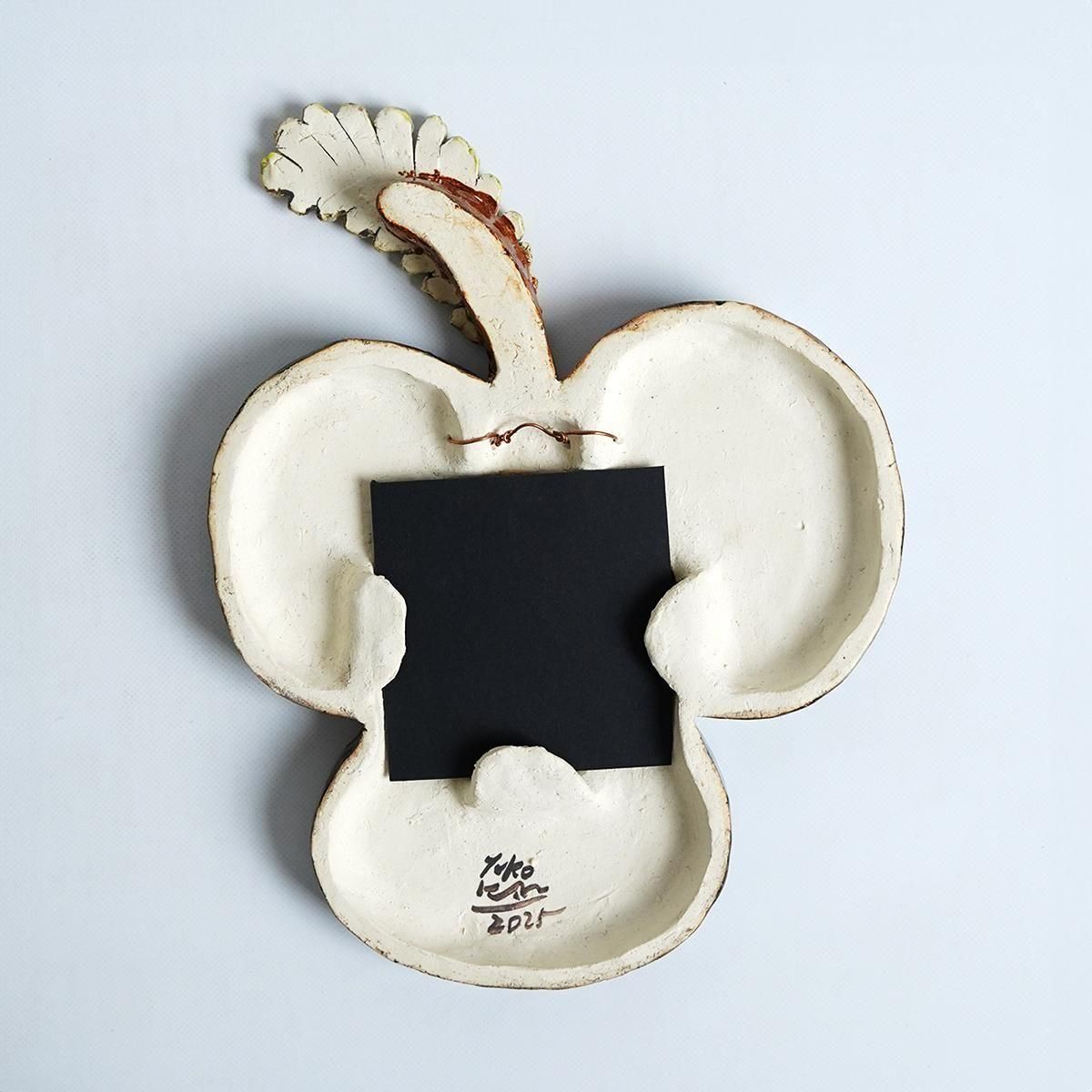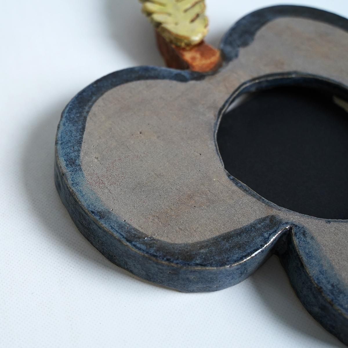木版画や木彫、陶器を用いて愛らしく柔らかい世界観を表現される作家の菅祐子さん。 こちらは菅さんらしいユーモラスな視点と感性が詰まったフォトフレームとなります。ご自身の出産、子育てを経て家族写真が増えたことから、こんなフォトフレームだったら自分も部屋に飾りたいという思いで制作されました。 お気に入りの写真や絵、子供が描いた落書きなど色々飾ってお楽しみください。 果実のようにも、野菜のようにも見える壁掛フォトフレーム。 飛び出した葉っぱもユニークな形で優しい色との組み合わせが、お部屋の雰囲気を明るくしてくれそうです。 size : W約19.2cm×H約25cm×D約1.8cm 陶器 ※貫入やカケがある場合がございますが、作品の特徴となりますのでご了承下さいませ。 写真を出し入れする際は上から滑りこませるようにしてください。 紙を無理に手前に引っ張って出そうとするとツメ部分が取れてしまう恐れがありますのでご注意ください。
