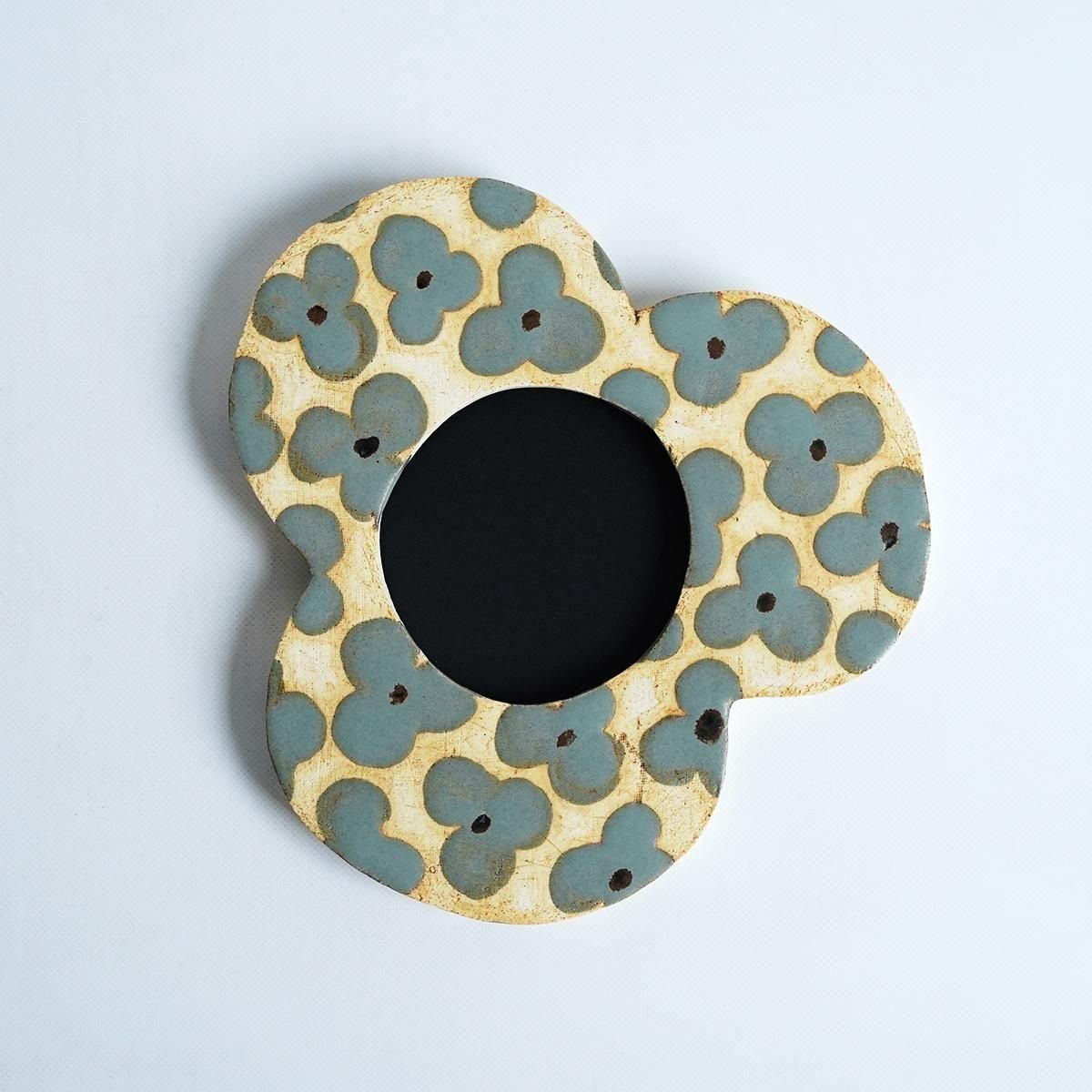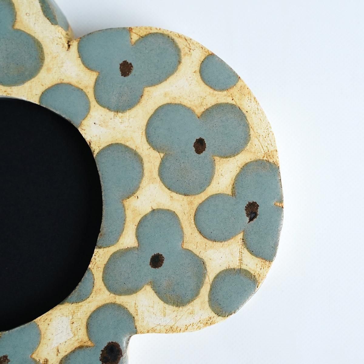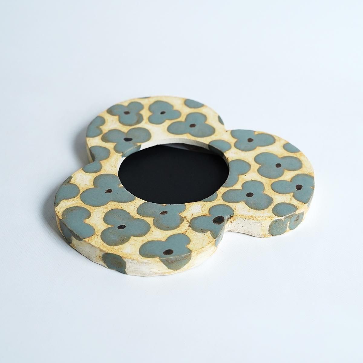 木版画や木彫、陶器を用いて愛らしく柔らかい世界観を表現される作家の菅祐子さん。 こちらは菅さんらしいユーモラスな視点と感性が詰まったフォトフレームとなります。ご自身の出産、子育てを経て家族写真が増えたことから、こんなフォトフレームだったら自分も部屋に飾りたいという思いで制作されました。 お気に入りの写真や絵、子供が描いた落書きなど色々飾ってお楽しみください。 三つ葉のようにも、花のようにも見える壁掛け作品。 優しい色とユニークな形で、お部屋の雰囲気を明るくしてくれそうです。 size : W約20cm×H約18cm×D約1.5cm 陶器 ※貫入やカケがある場合がございますが、作品の特徴となりますのでご了承下さいませ。 写真を出し入れする際は上から滑りこませるようにしてください。 紙を無理に手前に引っ張って出そうとするとツメ部分が取れてしまう恐れがありますのでご注意ください。