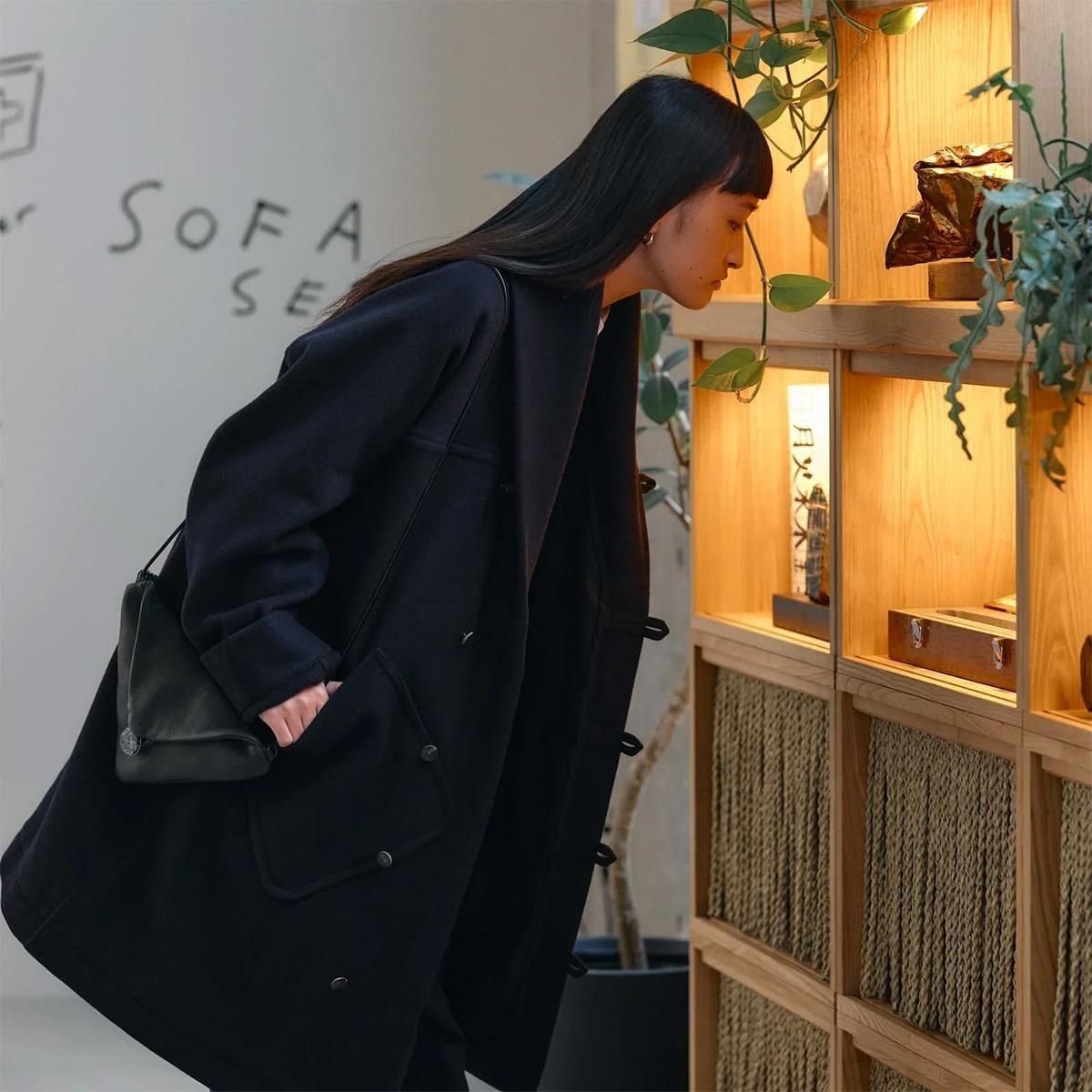 POSTALCO(ポスタルコ)はニューヨークブルックリン生まれのブランドです。伝書鳩のトレードマークには郵便という物が運ばれていくことの関心からやがてその興味は紙へと移り、ふたつのものがクロスする…そんな思いが込められています。 こちらは、POSTALCOの創業者であるマイク・エーブルソンとエーブルソン友理が著者となった最新刊『霧の中の展望台』の刊行を記念したPOP UPにてご紹介中のカラーコート ソリッドウールです。 身体にすっと馴染むようデザインされたユニセックスのコート。手の端から端までひと続きの布で仕立てられており、肩に縫い目がないため、まるで暖かさのレイヤーをふわりと羽織るような着心地です。上質なメリノウール100%を使用し、やわらかく軽やかな質感が魅力。ふんわりと包み込む大きめの襟まわりが、暖かな空気を逃さず保ちます。セーターやジャケットの上からさらりと羽織って。トラディショナルなメルトンウールコートの要素を受け継ぎながら、現代的なフォルムに仕上げられています。ジッパー付きの大きなポーチポケットは、手を入れやすいよう約45°の角度に設計。さらに両サイドにはハンドウォーマーポケットも備えています。 color:Black, Navy,Walnut size:M,L M:身幅65cm/着丈89cm/裄丈84cm L:身幅70cm/着丈95cm/裄丈89.5cm material:WOOL100% made in Japan 取り扱い店舗・・・dieci kyutaro店 2F