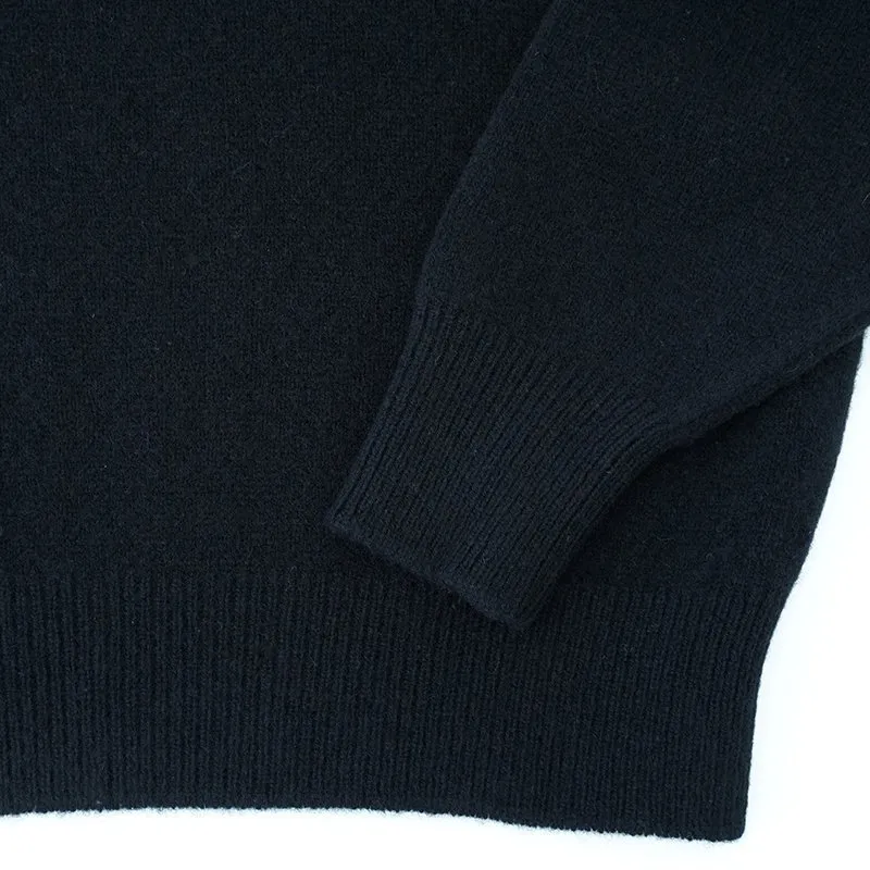 COMOLI は、2011 年にデザイナー小森啓二郎氏が立ち上げたブランド。“全ての洋服の原型は欧米から生まれ、ある目的の為に作られた物である”という考えに基づいて、“今の”日本の気候に合う、日本人の体型に合った、上質でシンプルな日常着を提案されています。 こちらは継続商品のラムズウールクルーネックニットです。 ふんわりとした質感のラムズウールは着心地も良く保温性に優れます。 程よいサイズ感で作られており、シャツをインしたレイヤードスタイルから、ジャケットスタイルのインナーまで幅広く活躍します。 25AW size: 2,3 2:着丈 66cm 身幅52cm 肩幅42cm 袖丈62cm 3:着丈 67cm 身幅54cm 肩幅45cm 袖丈63cm (伸縮がある為、採寸に若干の差異がございます。) color:BLACK material: WOOL100% model:163cm(サイズ2着用) 取扱い店舗…dieci芝川ビル店(火水定休日)