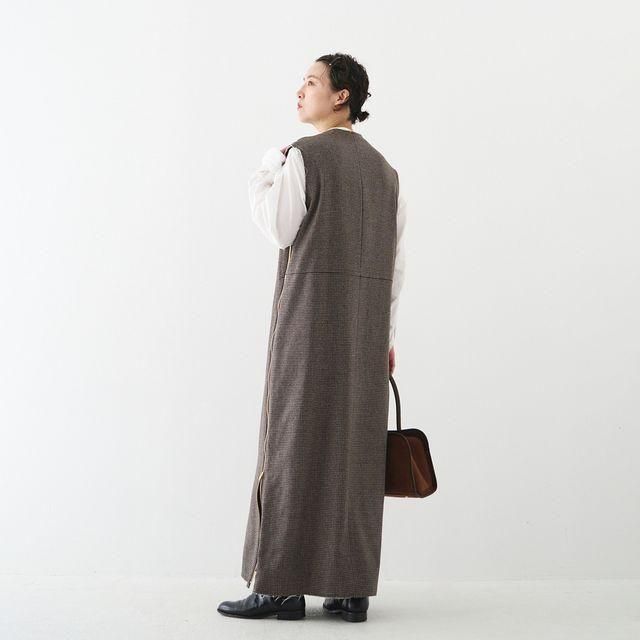 oundstooth (千鳥格子)の上質なウール生地で上品な印象のドレス。