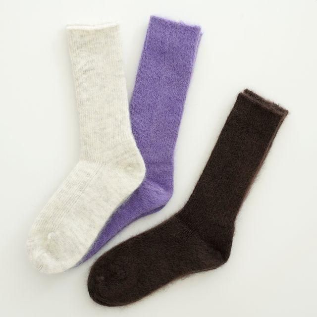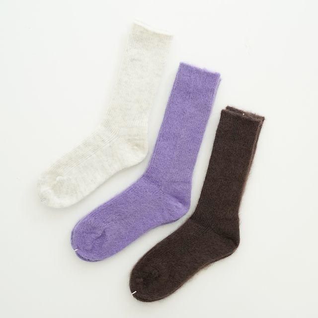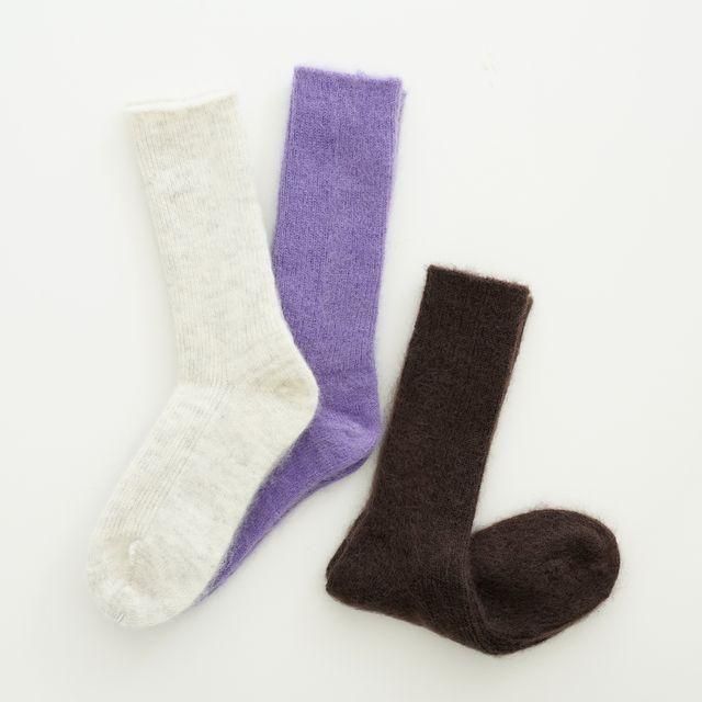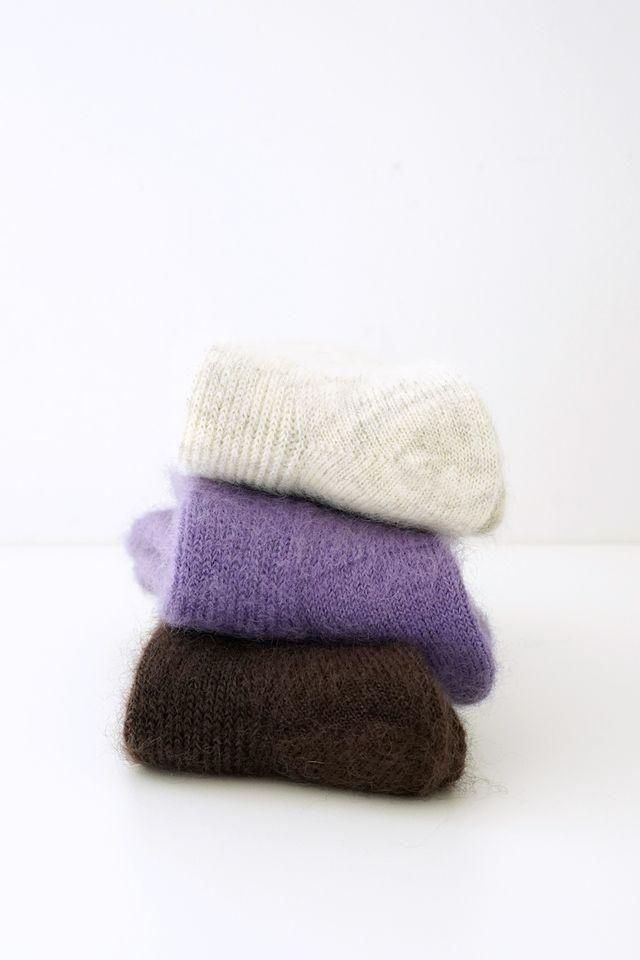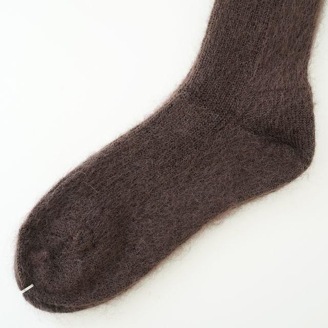 細リブでフィット感あるモヘアソックスです。