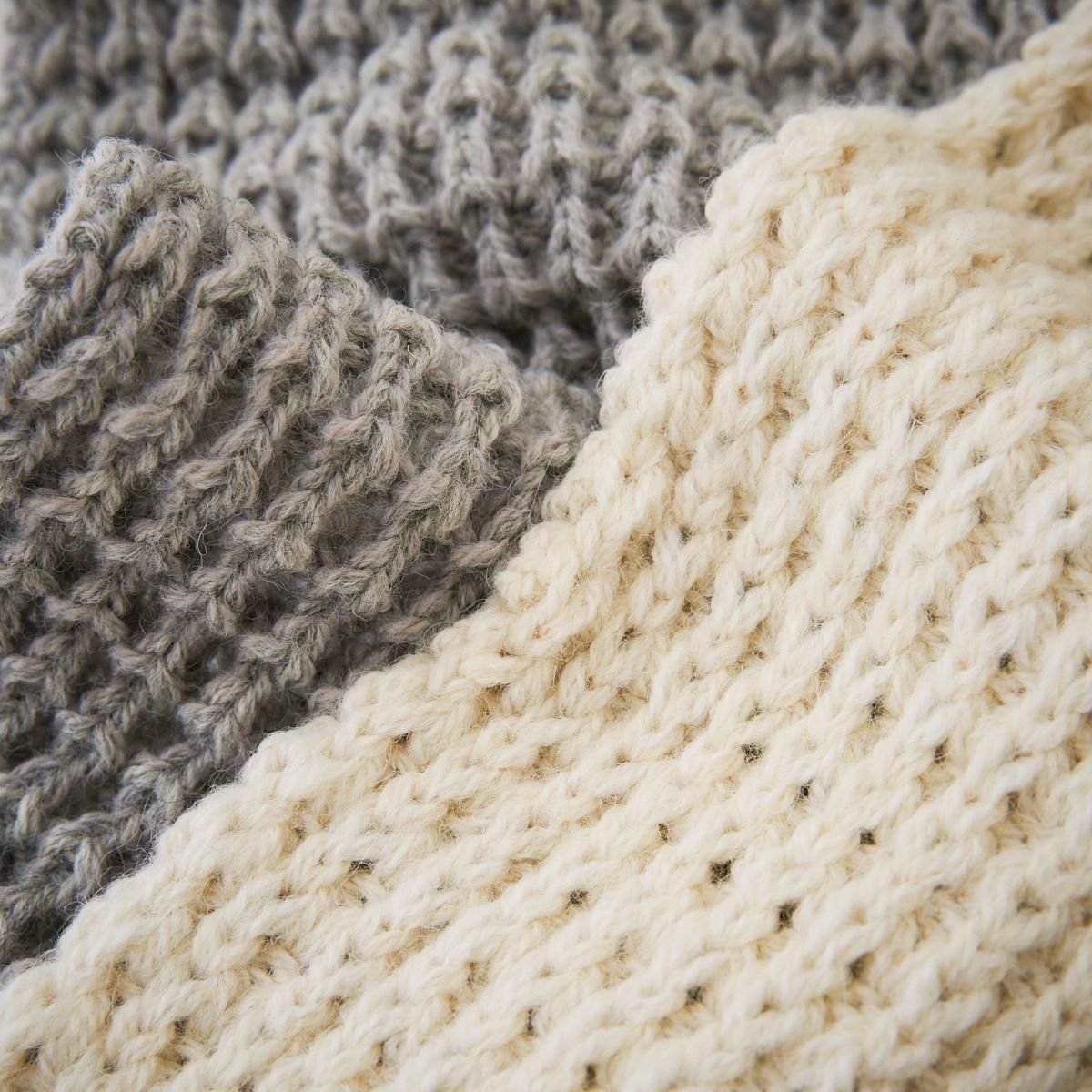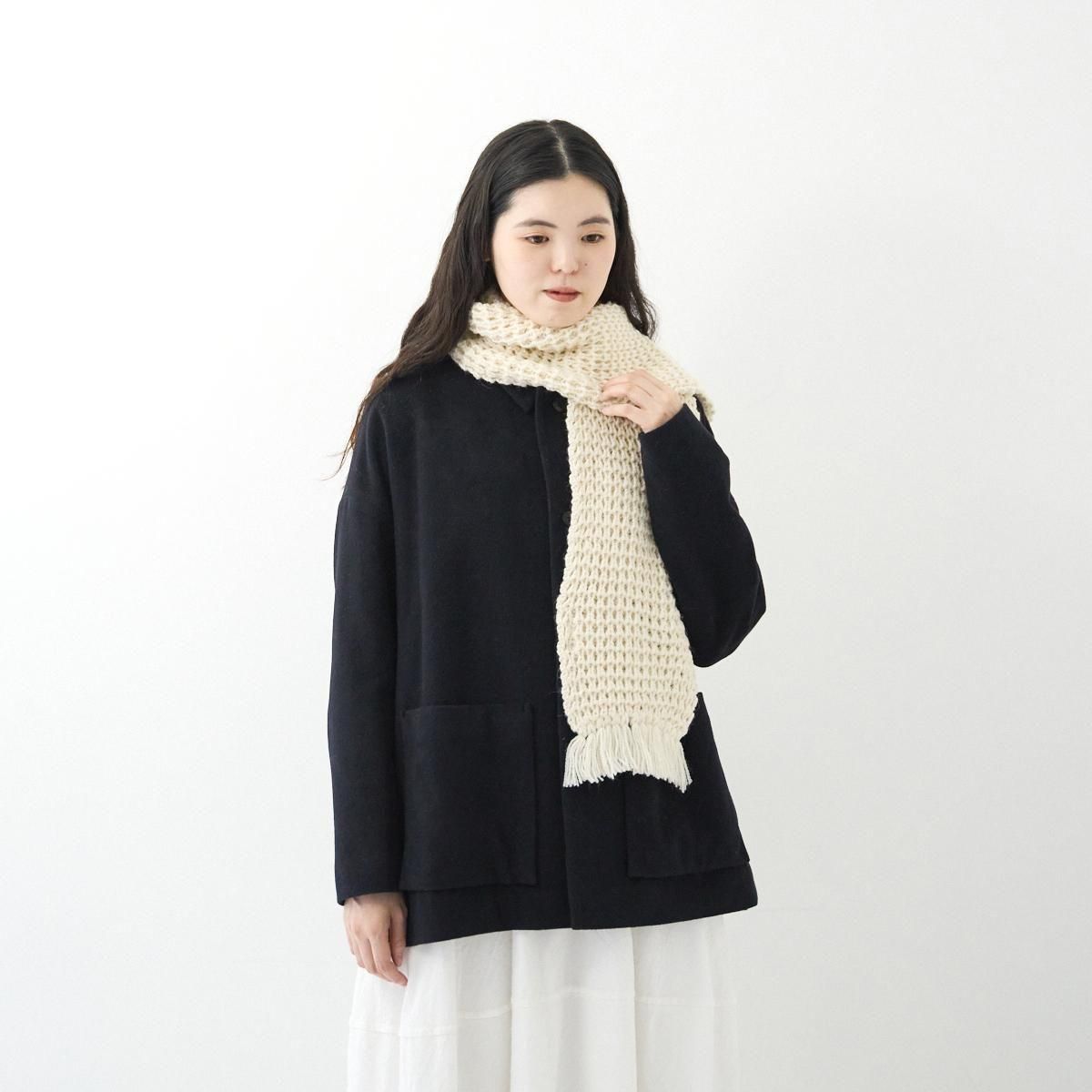 アルパカ、ブリティッシュウール、アクリルの混紡素材が柔らかな肌あたりと型崩れしにくいつくりを叶え、心地よい質感を生み出しています。