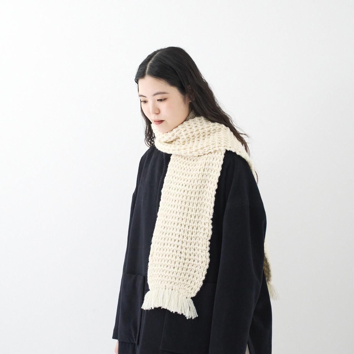 東京・吉祥寺のセレクトショップCINQのタックステッチマフラーはイギリス中部のノッティンガム近郊に拠点を置くニットブランド、 Highland 2000によるマフラーです。