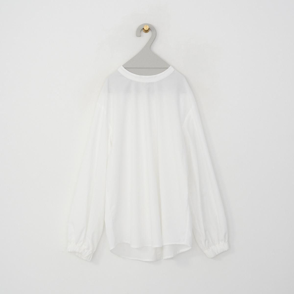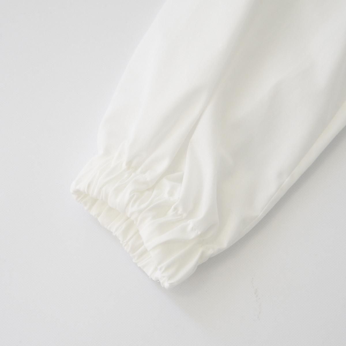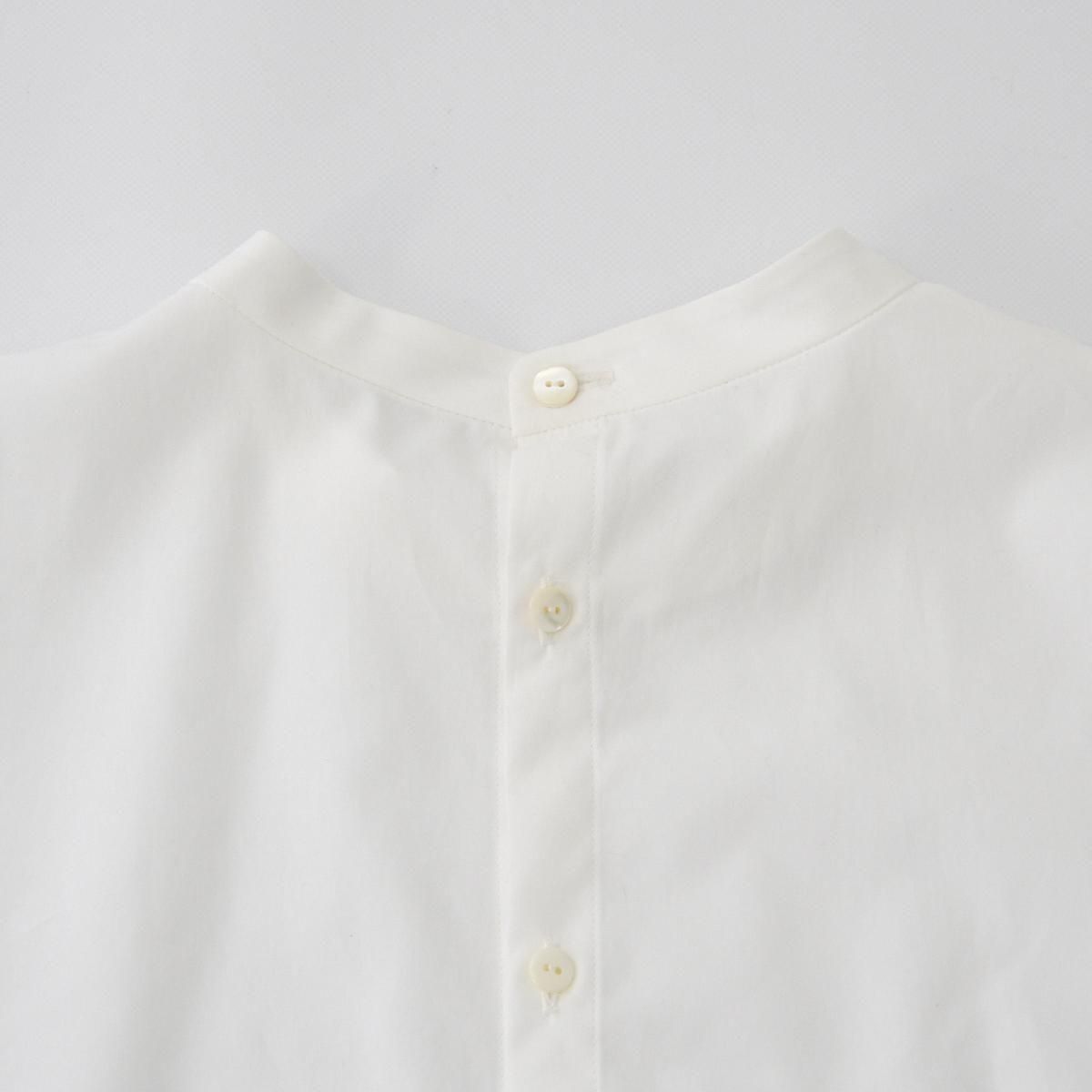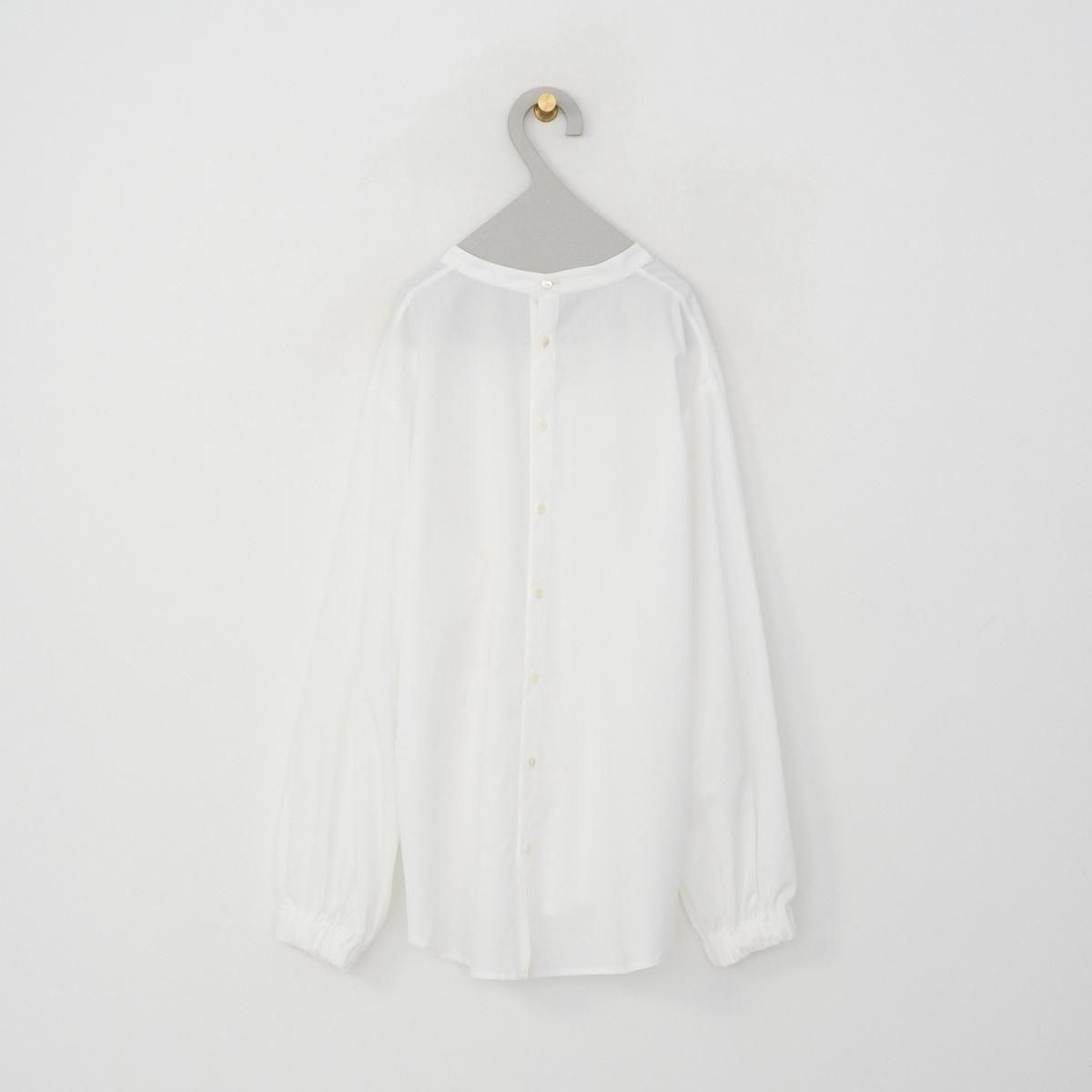 後ろボタンでシンプルな印象に仕上げたスタンドカラーブラウス。太めのギャザースリーブとゴム仕様の袖口が特徴で、袖口をたくしあげるとふわっとしたシルエットをお楽しみいただけます。 上質なオーガニックコットン100%なので、柔らかく滑らかな肌触りで、シーズンレスで重宝する一枚です。 color:卯の花色(オフホワイト) size:2 着丈69cm /肩幅43.5cm/身幅53cm/袖丈54cm ※商品には若干の個体差があるため、採寸には誤差がございます material:cotton100% 取り扱い店舗:dieci芝川ビル店 ------------------------------------------------------- fruits of life |フルーツオブライフ スタイリスト 大橋利枝子さんが作り、選んだ衣服と暮らしまわりのものを提案しているブランドです。心から大切に思えるものだけを少しだけ。日々の生活にたわわな実りをもたらしますようにと思いを込められたモノたちをご紹介します。 size_chart