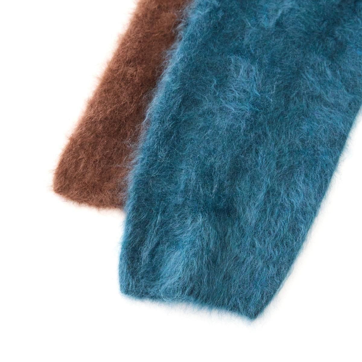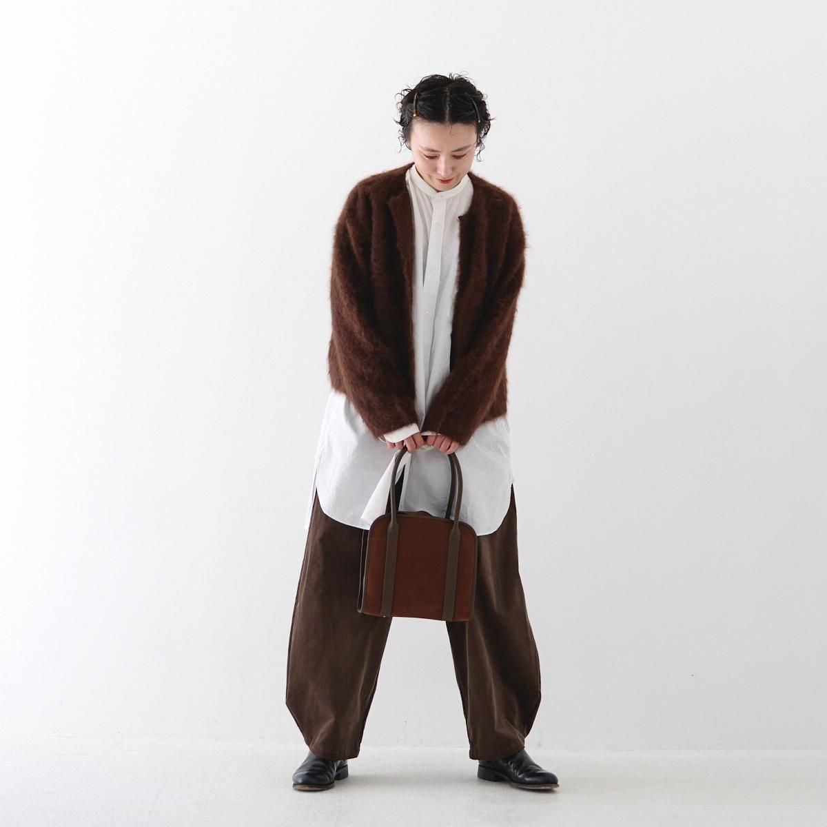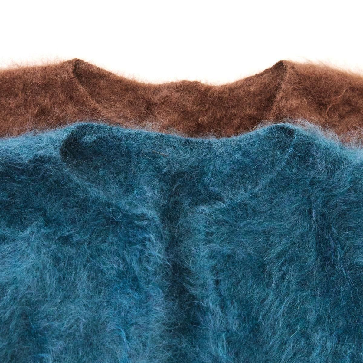 カシミヤ起毛のふんわりとした毛足が華やかな、主役級のカーディガン。 24AWで大人気だったカシミヤファーカーディガン。 着丈を短く、身幅をゆったりとさせてブラッシュアップしました。 寒い時期でもジャケット感覚で暖かく着用できます。 今季は新色のブラウンが登場。 コーディネートが華やぐアイテムです。ホールガーメント仕様。 ホールガーメントでシームレスに仕立てているので、とても着心地が良い仕上がりです。 上質のカシミヤ100%素材を使用しており、カシミヤ特有の風合いを最も醸し出す、特別な技術のファー加工を1枚1枚手作業で施し、より滑らかに毛足も出してふんわり仕上げられています。滑らかなカシミアは驚くほど暖かく、まるで優しく包まれているよう。 ボタンレスで、程よくゆったりしたサイズ感なので、寒い時期でもセーター等とレイヤードしてジャケット感覚で着ていただけます。 何年もお手入れしながらずっと大切に着ていただきたいカーデガンです。 color:栗梅色/くりうめいろ(ブラウン)、 青緑色(グリーン)、紺青色(ネイビー) ※ネイビーは14枚目の生地アップ画像のみ size:サイズ2 (フリー) 着丈 57cm 肩幅 42cm 身幅 58cm 袖丈 55cm 裾幅 52cm 参考寸法(平置き) 1点1点個体差がございます。 material:カシミヤ 100% ※数回着ていただいたら、洋服ブラシ(馬毛等)でブラッシングをして頂く事によって、汚れや毛玉を防いで艶々になります。 ※手洗いすると、ふんわりやわらかな手触りになります。 ※干すときにハンガーにかけてしまうと形が崩れてしまうので、横に広げて干してください。 model:163cm 取り扱い店舗・・・dieci芝川ビル店 ------------------------------------------------------- fruits of life |フルーツオブライフ スタイリスト 大橋利枝子さんが作り、選んだ衣服と暮らしまわりのものを提案しているブランドです。心から大切に思えるものだけを少しだけ。日々の生活にたわわな実りをもたらしますようにと思いを込められたモノたちをご紹介します。 size_chart