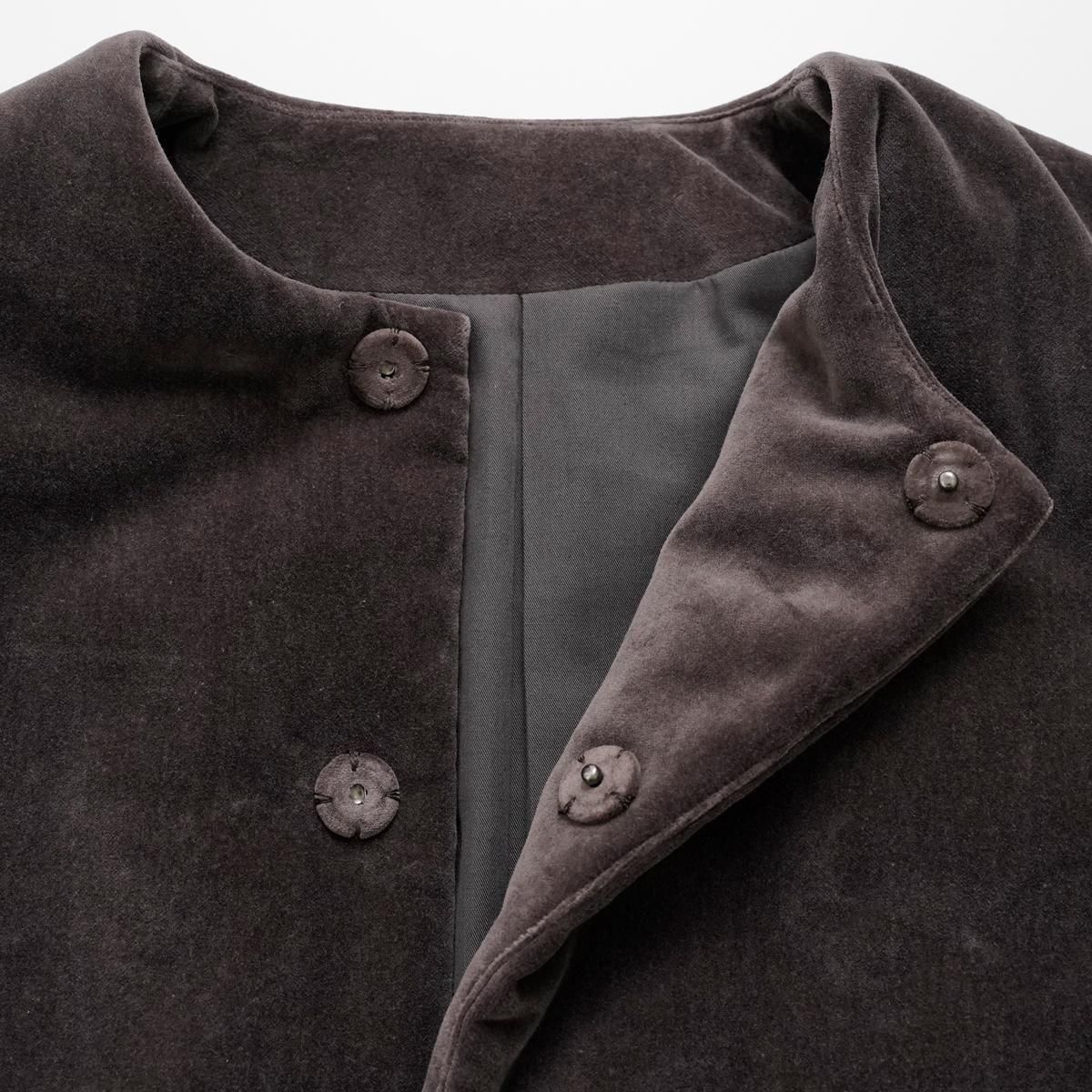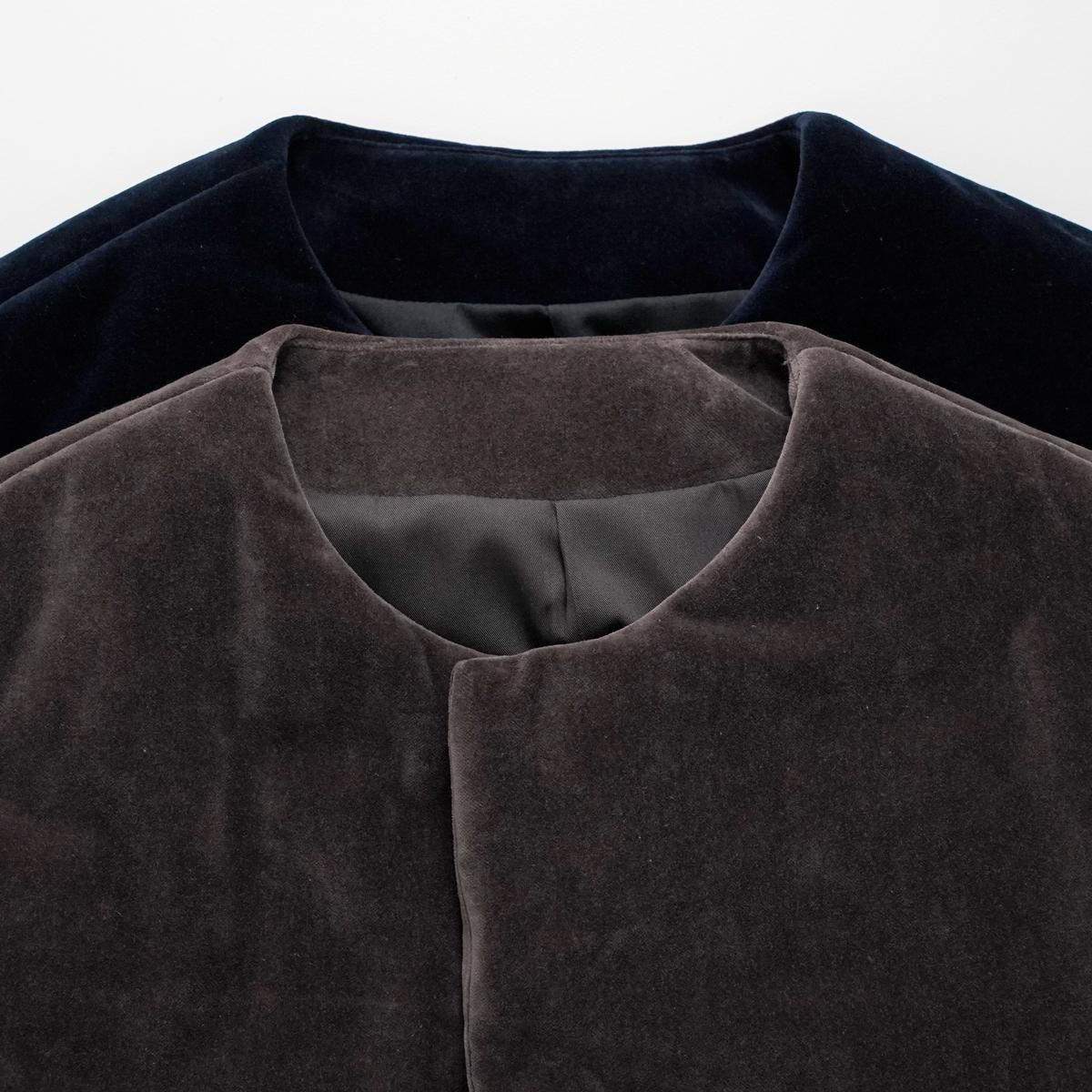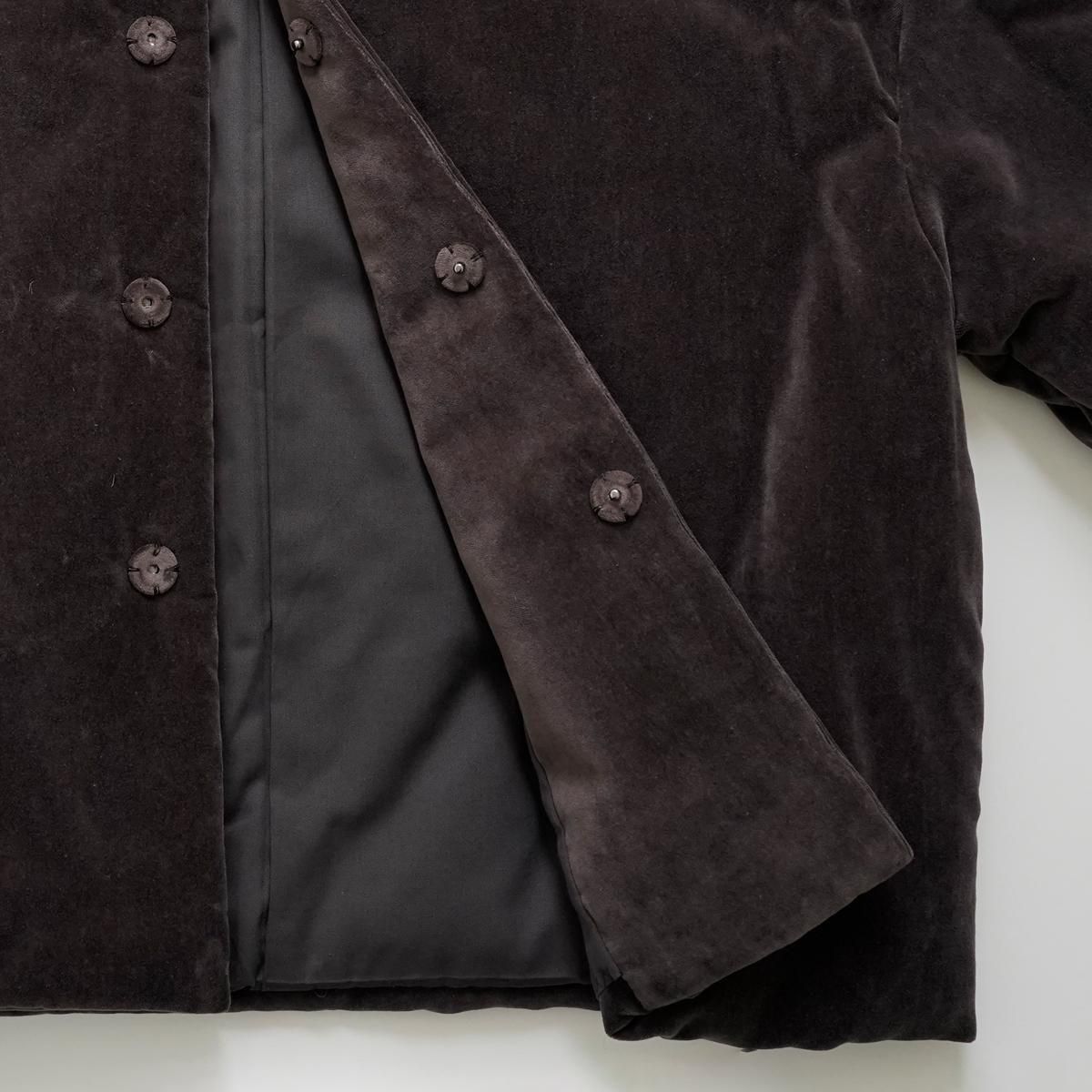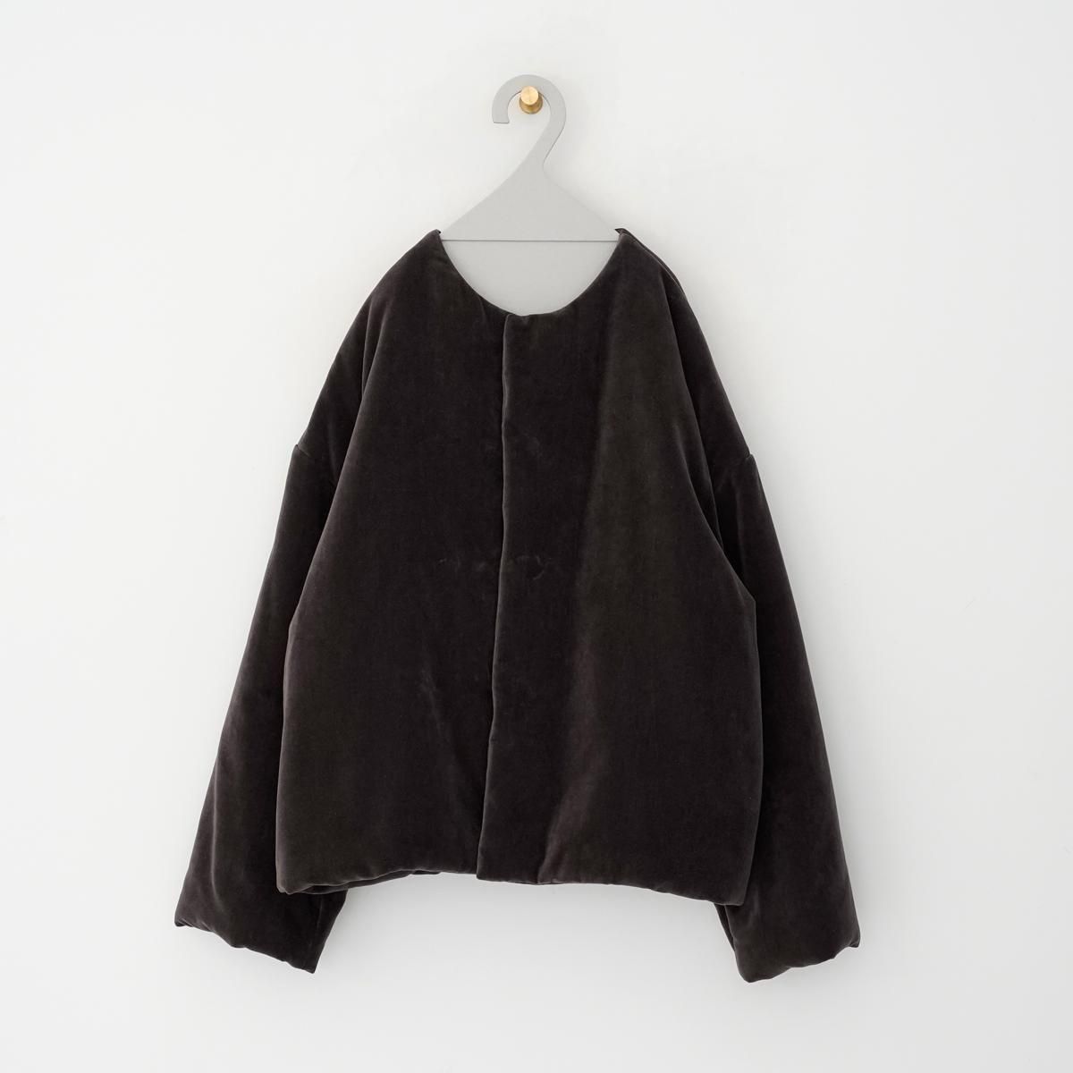 中綿入りのショートコート。表地は光沢のあるベッチン。 綿は高機能中綿素材のシンサレートを使用(アウトドアブランドもアウターに使用しているので、暖かさは保証済み) オーバーサイズのドロップショルダーで着丈を短めにして、ふわっとしたシルエットに。 ベッチンの素材感を印象強くするために、ノーカラーと隠しボタンでシンプルに仕上げました。カジュアルだけど、洗練されたアウターです。 ドライクリーニング color:焦茶色(ブラウン),⻘褐色(ネイビー) size:2 (フリー) 着丈62cm 肩幅63cm 身幅65cm 袖丈48.5cm 袖幅48.5cm 裄丈80cm 裾幅63cm material:表地 コットン 100% 裏地 ポリエステル 65% コットン 35% 中綿入り model:163cm ----------------------------------------------- fruits of life |フルーツオブライフ スタイリスト 大橋利枝子さんが作り、選んだ衣服と暮らしまわりのものを提案しているブランドです。心から大切に思えるものだけを少しだけ。日々の生活にたわわな実りをもたらしますようにと思いを込められたモノたちをご紹介します。 size_chart