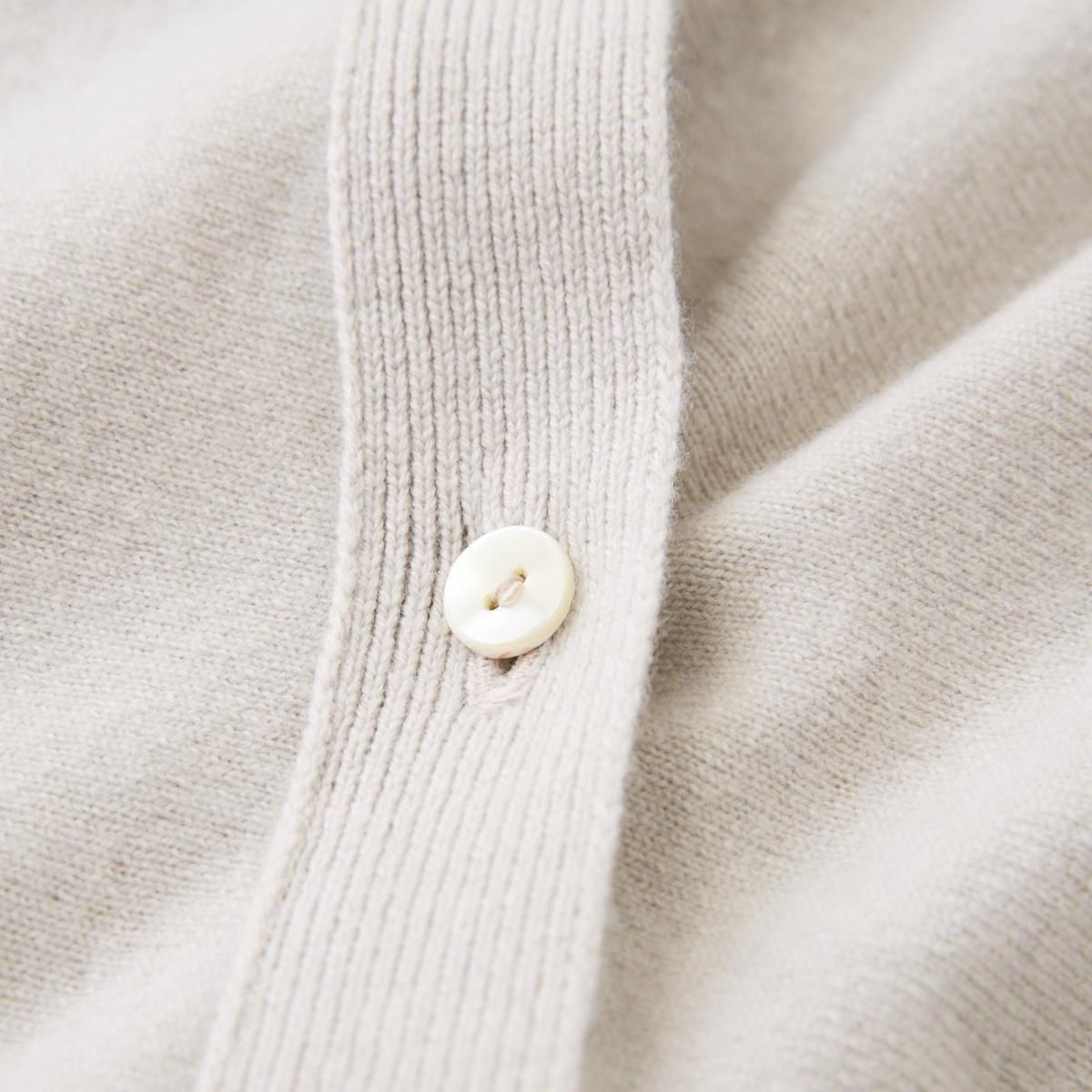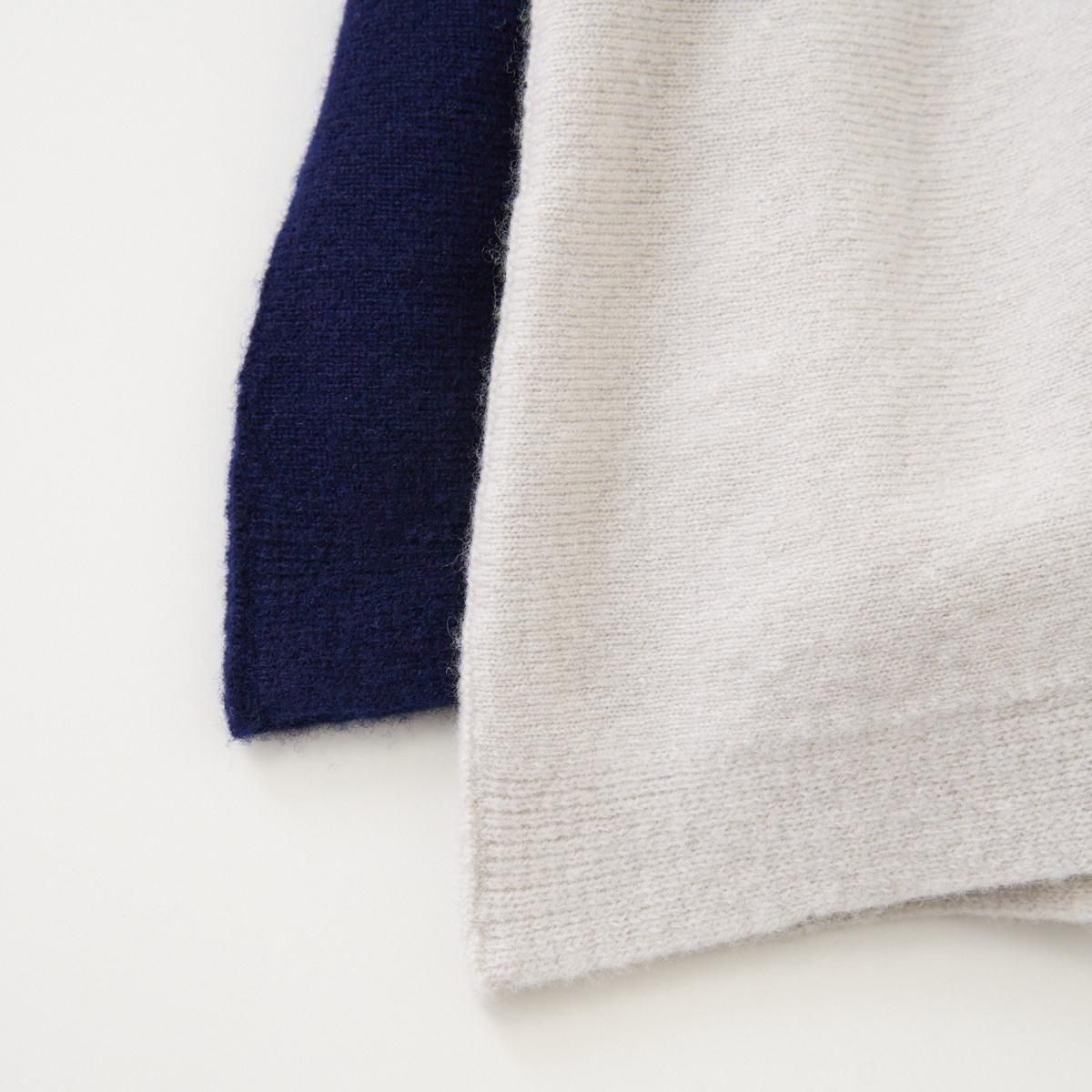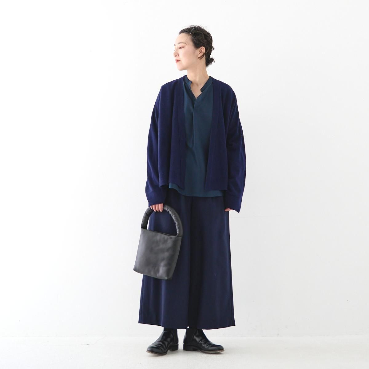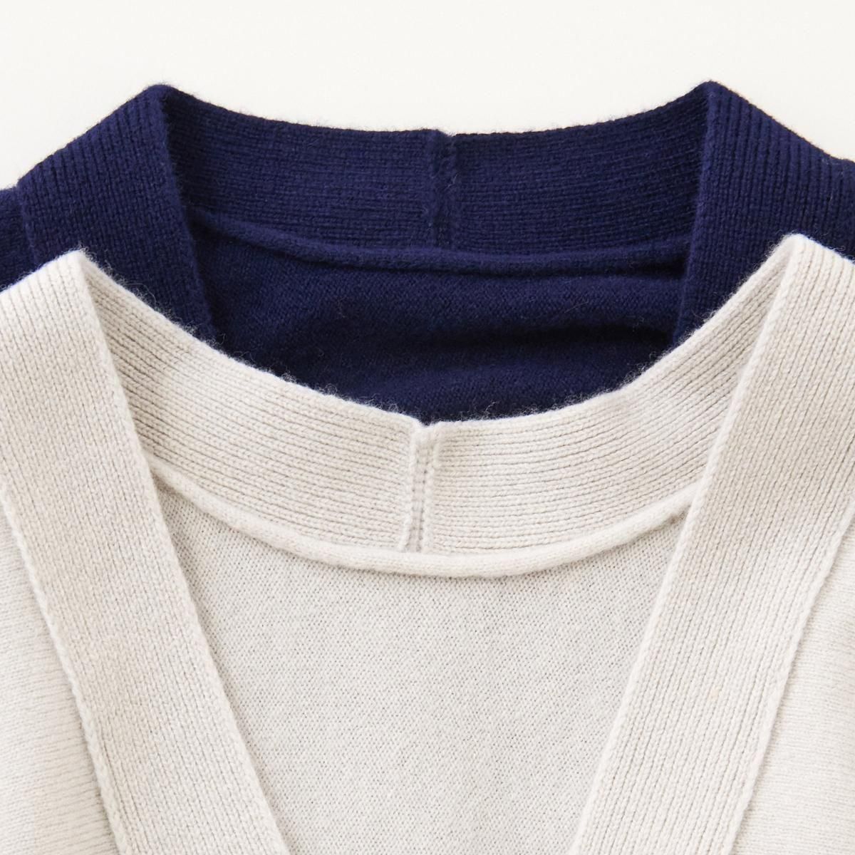 さらりと羽織れるAラインシルエットのカシュクール風ローブはエレガントでニュアンスのある一枚。ボタンをとめるとジャケットのような着こなしに。 全体的にゆったりとしたデザインで、袖も太いので、インナーを選ばずに着用できます。 Vネックニットと合わせるとアンサンブルになります。 素材は、南米・ウルグアイで育てられた、希少性の高い羊の最高品質の毛糸で編まれています。カシミヤ並みの細さの毛糸は、しっとりとして程よい弾力感がある肌触り。空気を含む事でふっくらとし、暖かく、柔らかさと滑らかでしなやかな風合いは、素肌にも着られる程の最高の着心地。驚くほど気持ちの良いニットです。 *手洗い可能。 洗うことでふんわりやわらかな手触りになります。干すときにハンガーにかけてしまうと形が崩れてしまうので、横に広げて干してください。 (オフィシャルより引用) size:2(フリー) 着丈 58cm 肩幅 54cm 身幅 60cm 袖丈 54cm 袖幅 24cm 袖口幅 14cm 裾幅 59cm 参考寸法(平置き) 1点1点個体差がございます。 material:ウルグアイウール 100% color:灰白色(ベージュ)・紺藍色(ネイビー) model:163cm,170cm 取扱店:芝川ビル店 ------------------------------------------------------- fruits of life |フルーツオブライフ スタイリスト 大橋利枝子さんが作り、選んだ衣服と暮らしまわりのものを提案しているブランドです。心から大切に思えるものだけを少しだけ。日々の生活にたわわな実りをもたらしますようにと思いを込められたモノたちをご紹介します。 size_chart