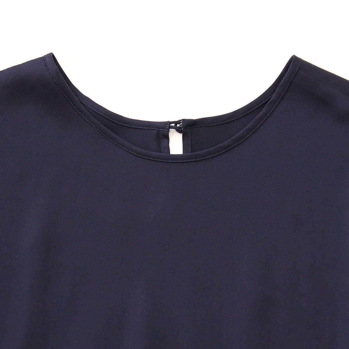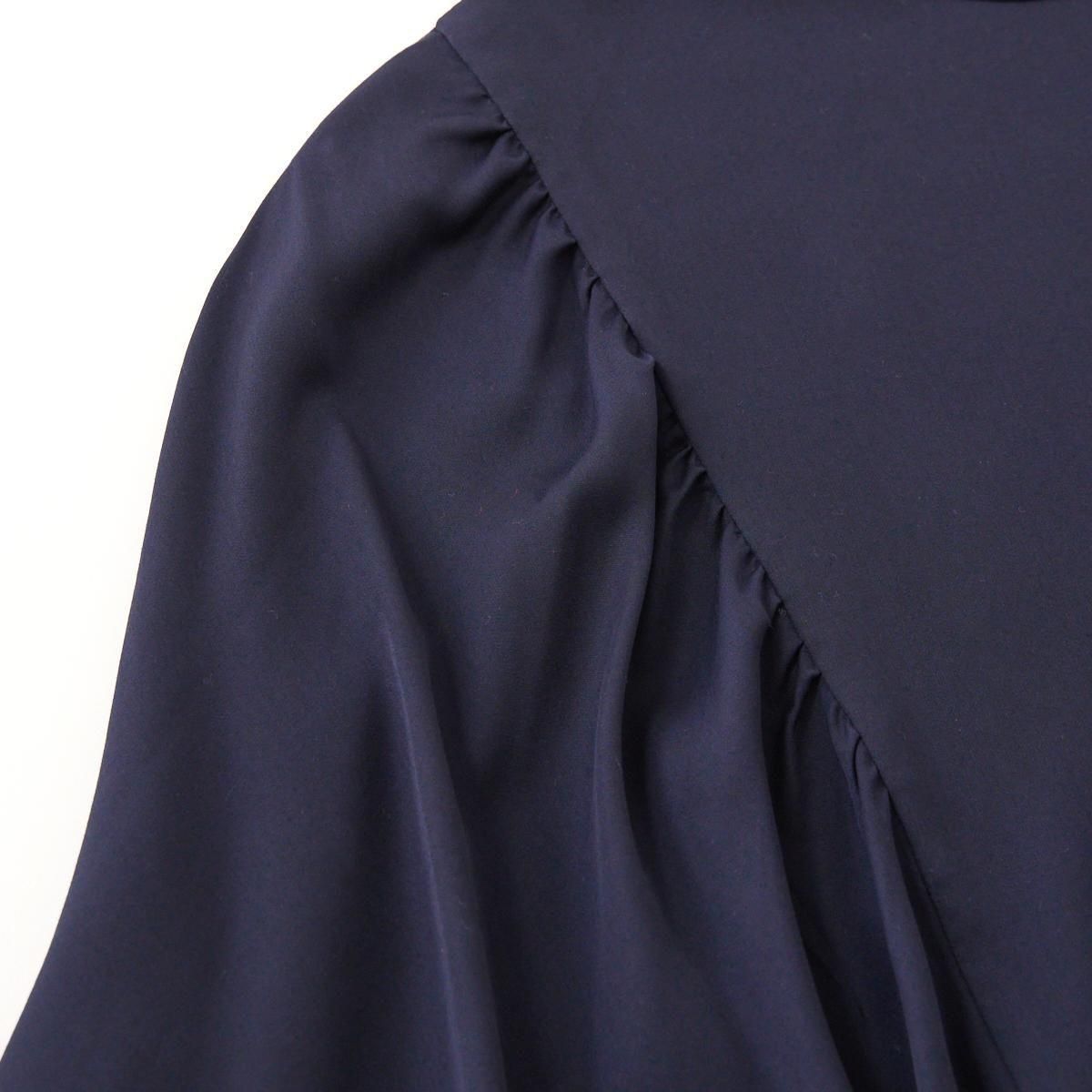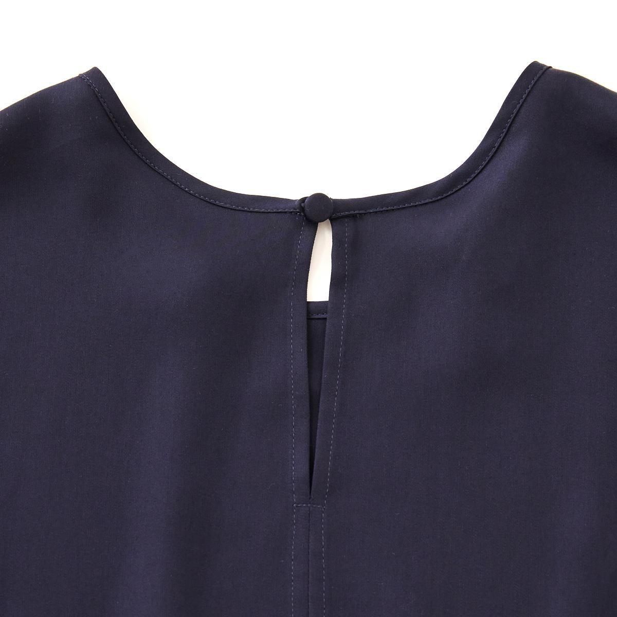 ギャザーの入ったドルマンスリーブが印象的なブラウス。後ろ前、両面でお召し頂けます。 ゆったりとしたシルエットなので、体型を気にせず、楽な着心地です。ブラウスの後ろの裾が少し長めのデザインなので、裾を出してもバランス良く着こなせます。ボタンを前にすると、シンプルでカジュアルな印象。袖口はタックが入り、パイピングで仕上げています。 使用しているスパンキュプラは 光沢が上品な印象の生地です。汗を素早く吸って拡散できるので、暑い夏場でもいつもサラサラの着心地を味わっていただけます。また手軽に洗えてシワになりにくいのも便利です。 *手洗い可能。 ご家庭で洗濯可能ですが、摩擦に弱いので生地を擦らないように注意して、優しく手洗いして下さい。 汗をかいたら、ハンガーにつるして、汗を飛ばして下さい。またシーズンが終わる時にドライクリーニングにだしていただければ、綺麗に保てます。 (オフィシャルより引用) size:2(フリー) 前着丈 55cm 後着丈 59cm 身幅 59cm 袖口幅 12cm 参考寸法(平置き) 1点1点個体差がございます。 material:キュプラ 100% color:留紺色/とめこんいろ(ネイビー) model:170cm 取扱店:芝川ビル店 ------------------------------------------------------- fruits of life |フルーツオブライフ スタイリスト 大橋利枝子さんが作り、選んだ衣服と暮らしまわりのものを提案しているブランドです。心から大切に思えるものだけを少しだけ。日々の生活にたわわな実りをもたらしますようにと思いを込められたモノたちをご紹介します。 size_chart