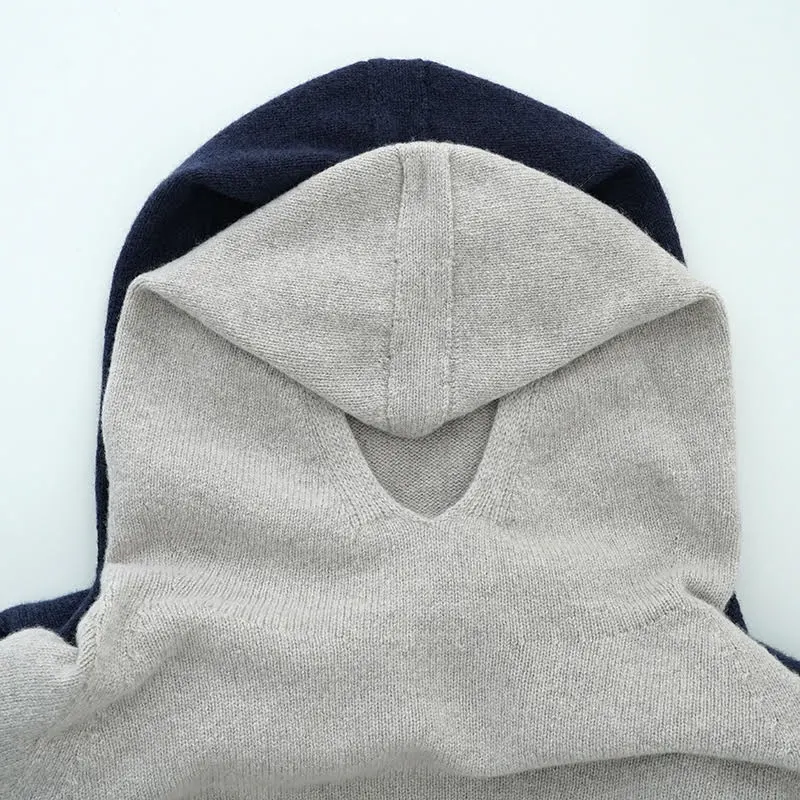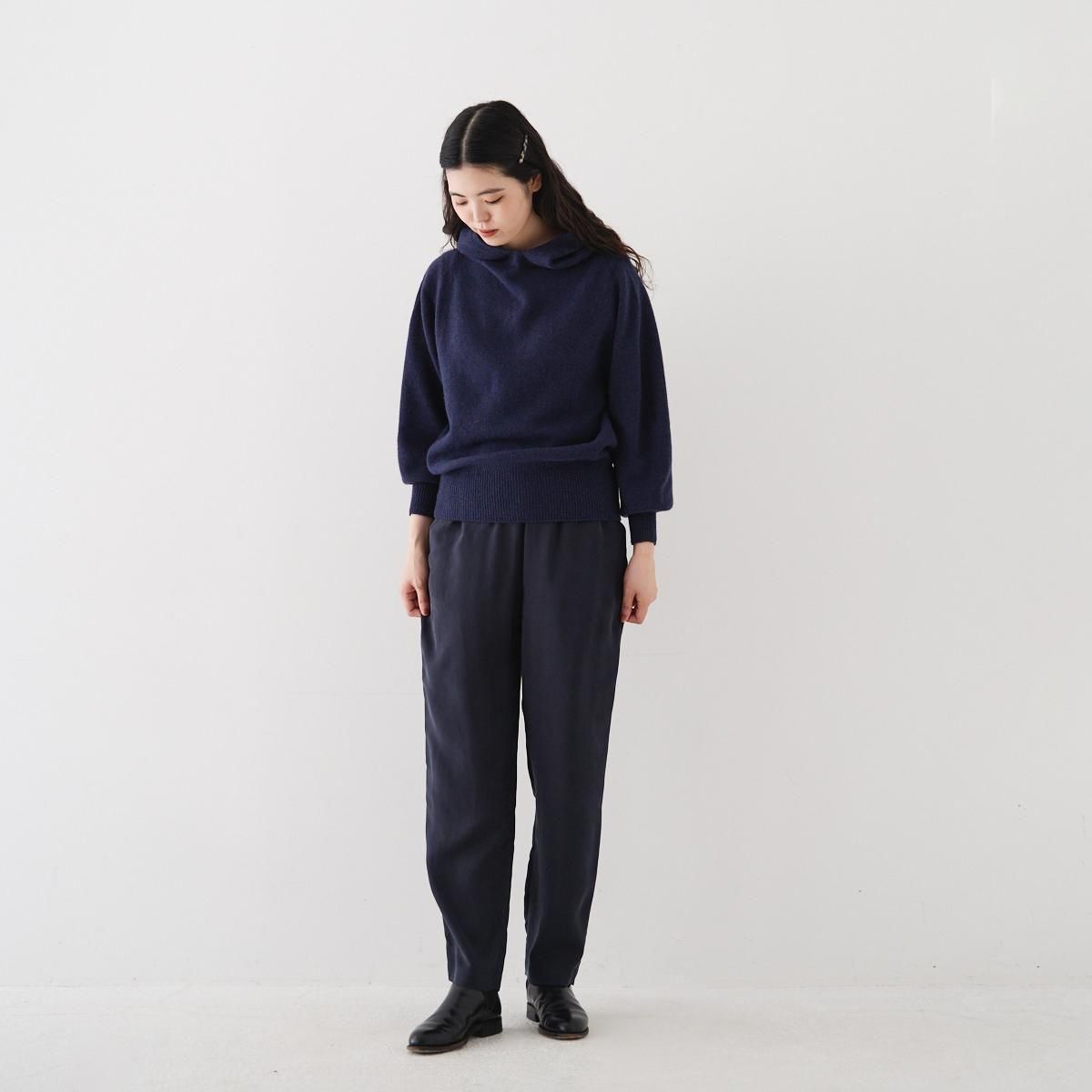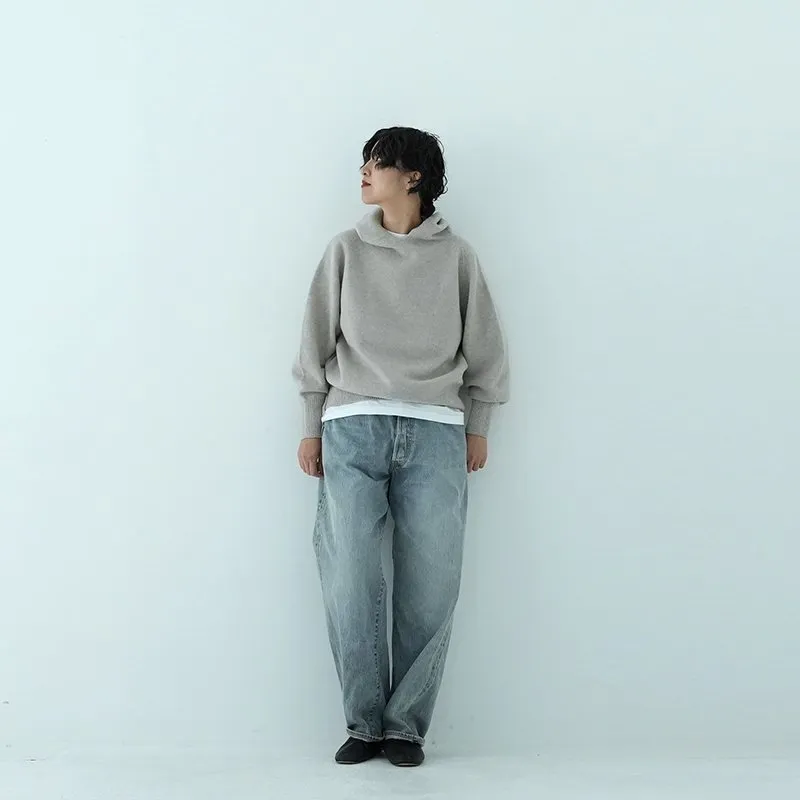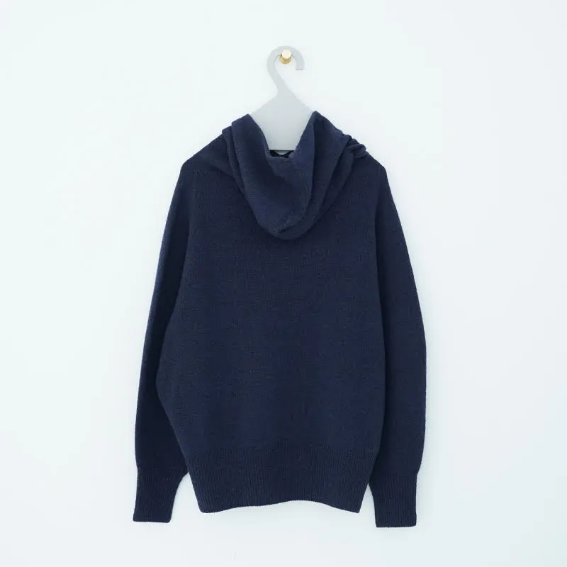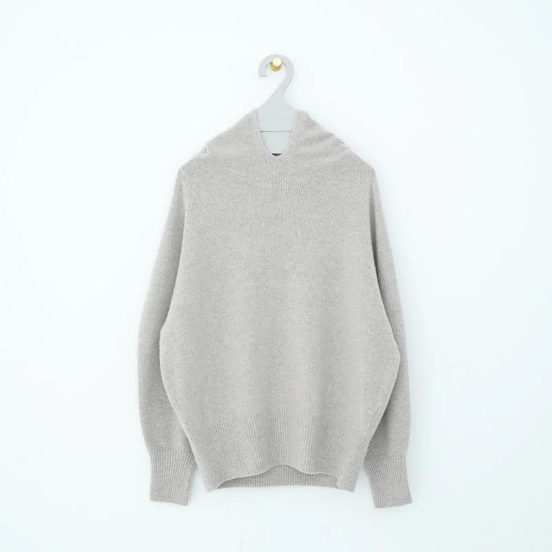 立体感のあるシルエットをホールガーメントでシームレスに仕立てた、とても着心地の良いフーディーです。 上質なウールにカシミヤとシルクで、軽さとしなやかさがあり、ふんわりとやさしい風合いのニットに。少し立ち上がりのある襟元でフードがしっかり立ち、顔周りが華やかな印象になります。立体的なパフスリーブ、ボトムとバランスの取りやすいショート丈。 ゆったりしたラグランスリーブの袖まわりは、コートを羽織ってもストレスのない分量にされています。カジュアルでスポーティーなパーカーとはまた違った、大人の女性のためのフーディーです。 ※手洗いするとさらにふんわりと柔らかな肌触りになります。 ※干すときにハンガーにかけてしまうと形が崩れてしまうので、横に広げて干してください。 color:灰色(チャコールグレー),瞑色(ネイビー),白茶色(ベージュ) size:サイズ2 (フリー) 着丈59cm 身幅 58cm 袖64cm 裾幅 44cm 参考寸法(平置き) 1点1点個体差がございます。 material:ウール80% カシミヤ10% シルク10% model:163cm,170cm ------------------------------------------------------- fruits of life |フルーツオブライフ スタイリスト 大橋利枝子さんが作り、選んだ衣服と暮らしまわりのものを提案しているブランドです。心から大切に思えるものだけを少しだけ。日々の生活にたわわな実りをもたらしますようにと思いを込められたモノたちをご紹介します。 size_chart