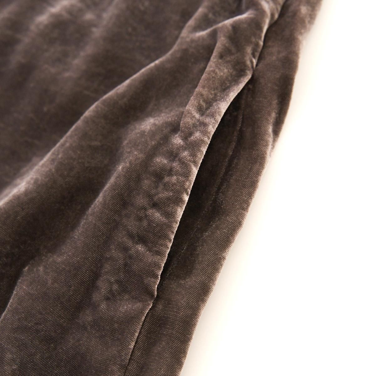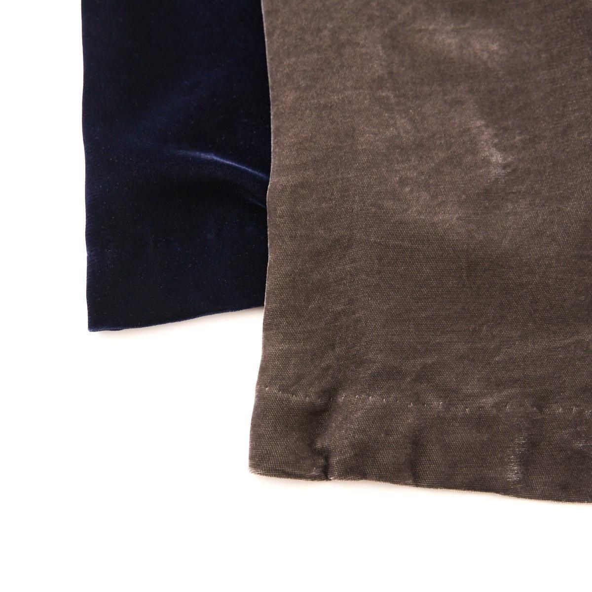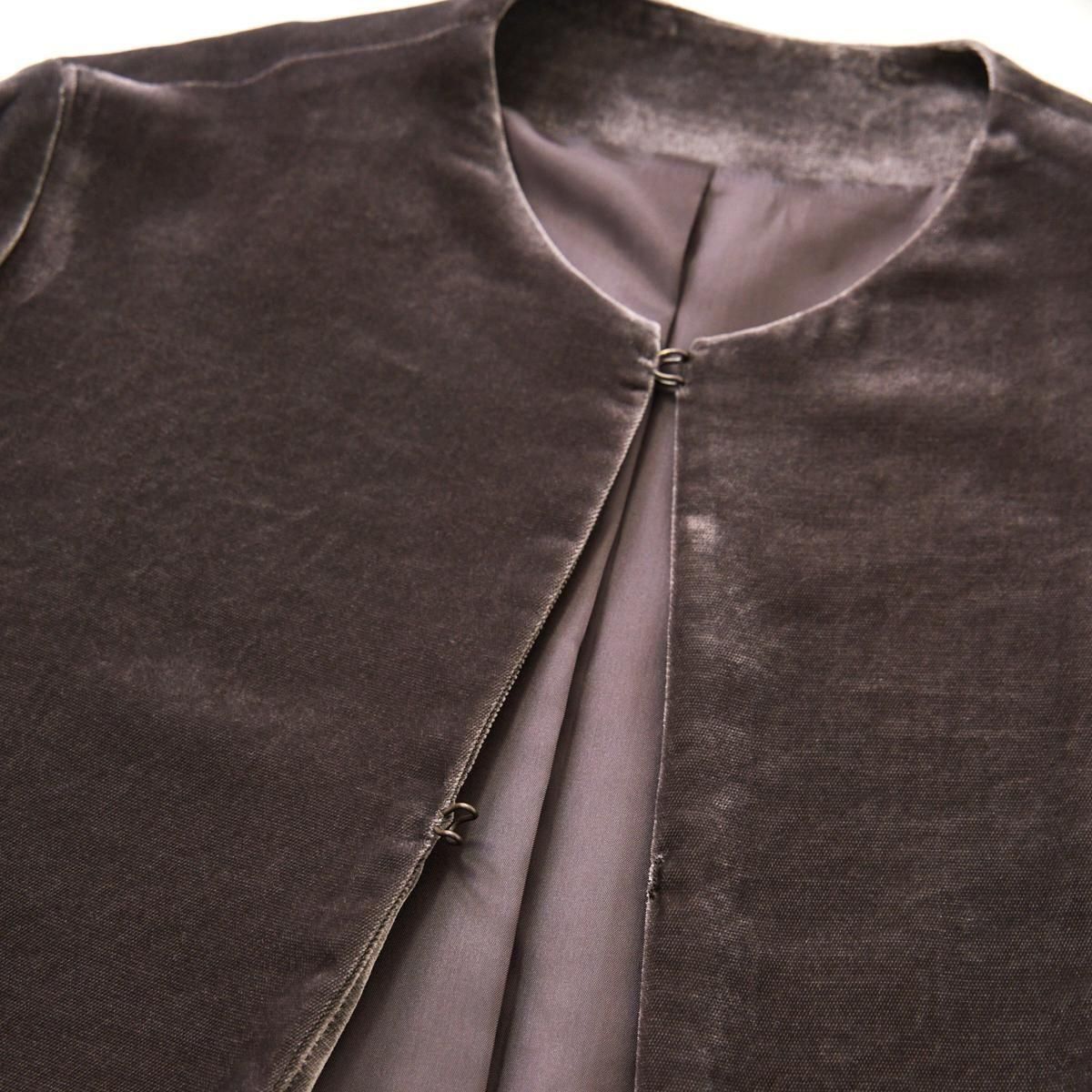 さっと羽織れるベルベット仕立てのローブコート。 薄手なので軽く、重ね着を楽しみながら初冬から春先まで活躍します。 どんなスタイルにも合わせやすいノーカラーと、女性らしいAラインのシルエットがポイント。光沢のある上質なベロア素材は特別な存在感です。 裏地付きで、胸元に二箇所ホックがついているので、前を閉じても着ることも。 シンプルなパンツスタイルやワンピースとも相性がよく、一枚持っておくと便利なアイテムです。 color:茶ねず色(グレージュ),紺青色(ネイビー) size:2(フリーサイズ) 着丈118cm 肩幅39.5cm 身幅59cm 袖丈48cm material:レーヨン67% キュプラ33% ドライクリーニング model:163cm,170cm お取り扱い店舗・・・dieci芝川ビル店 ------------------------------------------------------- fruits of life |フルーツオブライフ スタイリスト 大橋利枝子さんが作り、選んだ衣服と暮らしまわりのものを提案しているブランドです。心から大切に思えるものだけを少しだけ。日々の生活にたわわな実りをもたらしますようにと思いを込められたモノたちをご紹介します。 size_chart