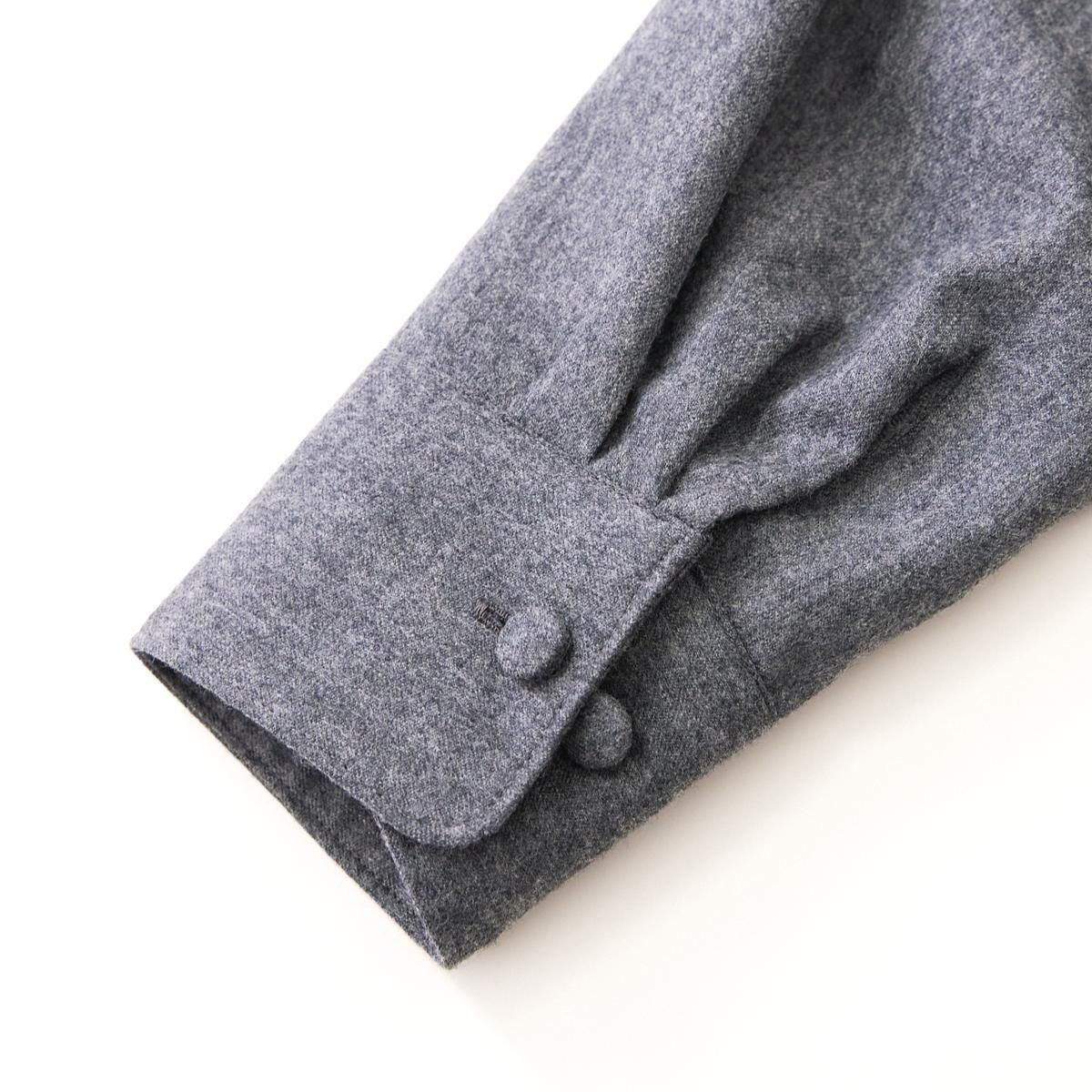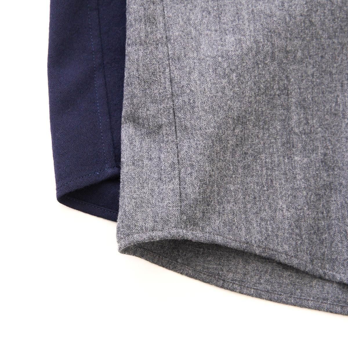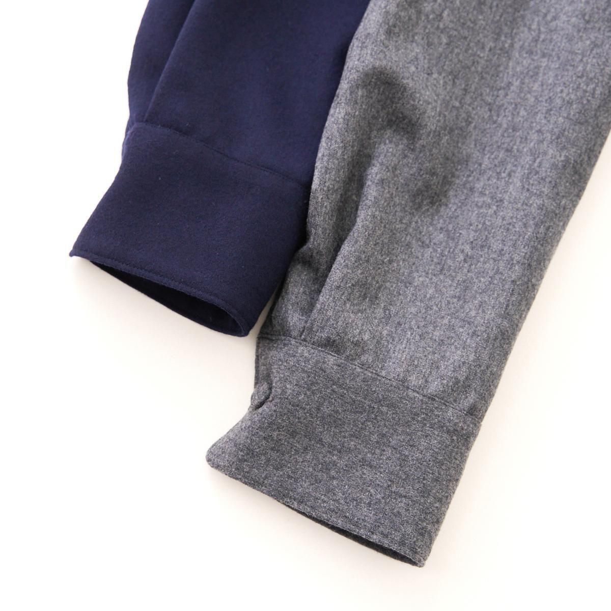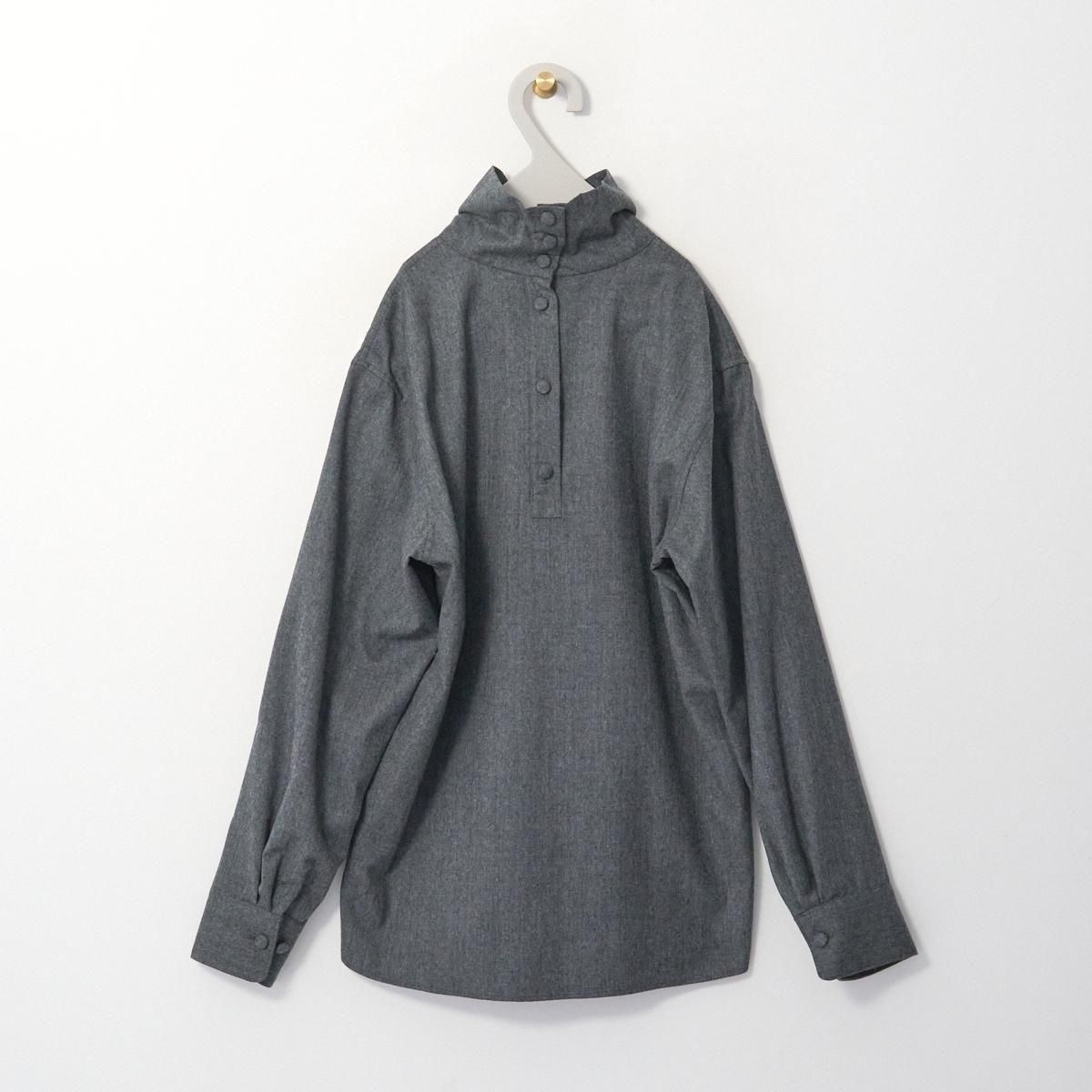 しなやかで上質な薄手のウール素材で仕立てたエレガントな1枚。 そのまま着ると後ろボタンのハイネックシャツ、後ろ前に着るとスキッパーシャツのような大きな襟になる2WAYシャツになっています。 同素材のウールタックパンツとセットアップするとさらにシックな印象に。ウールが醸し出す柔らかなシルエットは、女性を美しく見せてくれます。 薄手で上質なウール100%の生地を使用し、繊維が細いので軽くて柔らかいのが特徴です。ウールタックパンツと同じ生地なのでセットアップで着ていただけます。 ドライクリーニング推奨。 (オフィシャルより引用) size:2 (フリーサイズ) 着丈68cm 肩幅43cm 身幅53cm 袖丈58.5cm 袖幅22cm 袖口幅11cm 裾幅53cm 参考寸法(平置き) 1点1点個体差がございます。 material:ウール 100% color:濃紺色(ネイビー)・消炭色(チャコールグレー) model:163cm,170cm 取扱店:芝川ビル店 ------------------------------------------------------- fruits of life |フルーツオブライフ スタイリスト 大橋利枝子さんが作り、選んだ衣服と暮らしまわりのものを提案しているブランドです。心から大切に思えるものだけを少しだけ。日々の生活にたわわな実りをもたらしますようにと思いを込められたモノたちをご紹介します。 size_chart