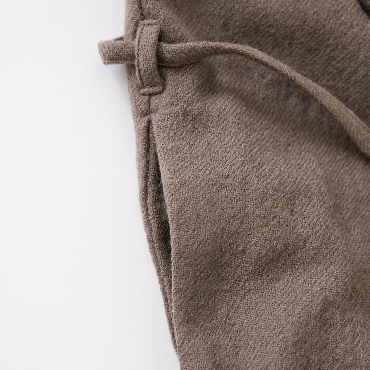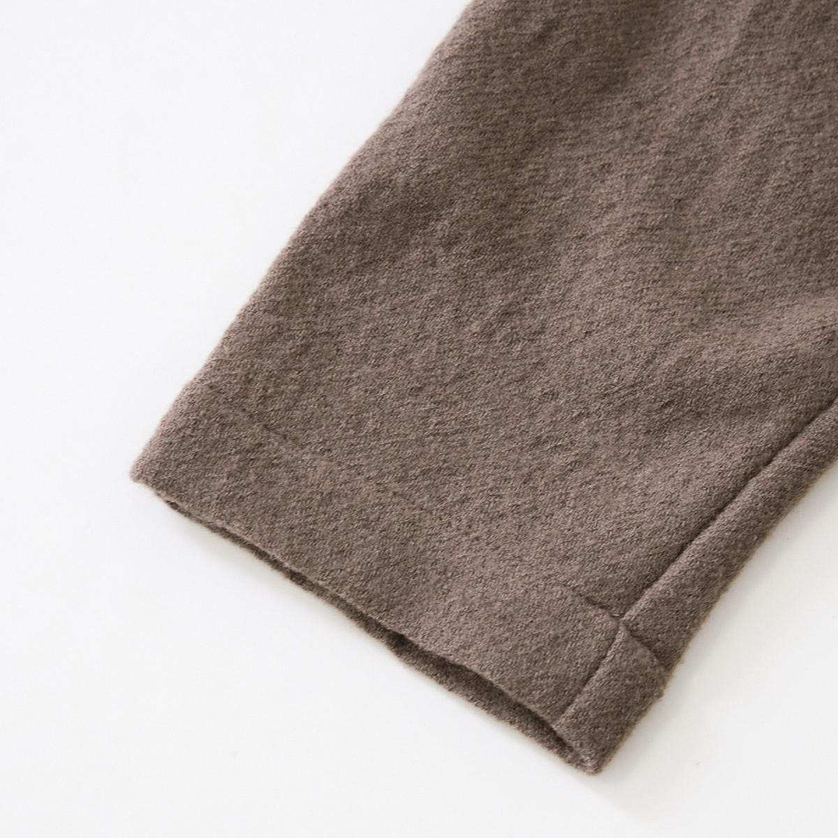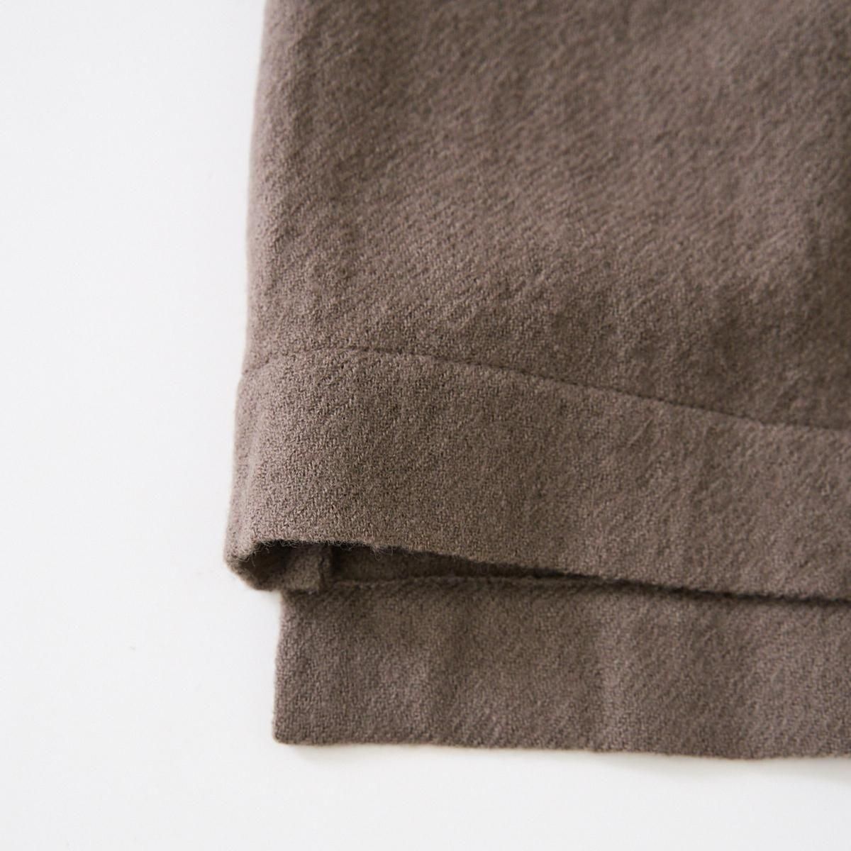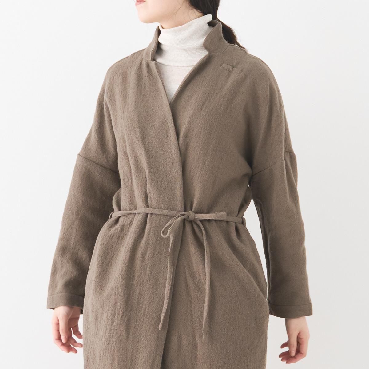 YAA!!定番のシャツコート。ウエストに細ヒモが1本付属しております。 薄手のウール素材を使用しているので、秋から春先まで活躍します。裏地のない一枚仕立てでとにかく軽いのでロングカーディガンのような気軽な羽織としてお使いいただけます。襟は立てていただくのも素敵です。紐でウエストをマークしてシルエットを変えてもお楽しみいただけます。 size:F 着丈114cm 肩幅75.5cm 身幅67cm 袖丈38cm color:beige brown material:ウール100% model:168cm お取扱い店舗・・・dieci kyutaro店2F ------------------------------------------------------- YAA!! 福岡の港町 TERCEIROの店主、浅岡陽子さんによる2011年にスタートしたオリジナルの洋服ライン。自分たちが今着たい服のイメージを膨らまし、生地を選び、すこしづつ制作されています。