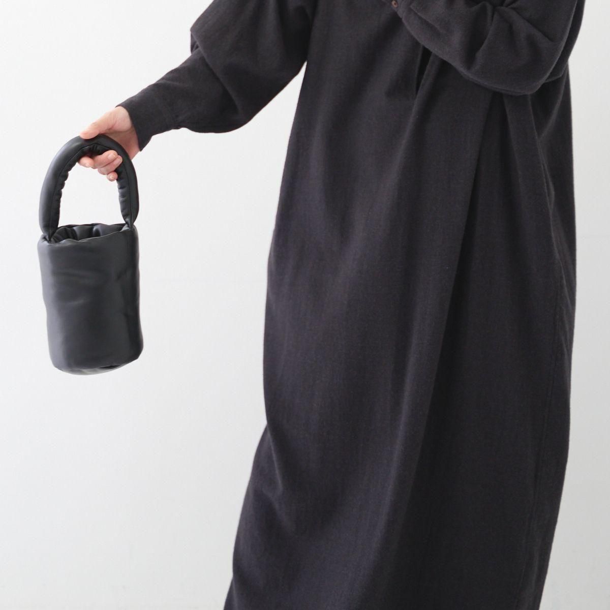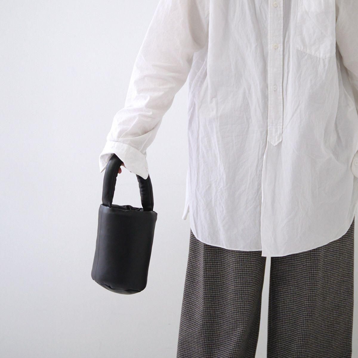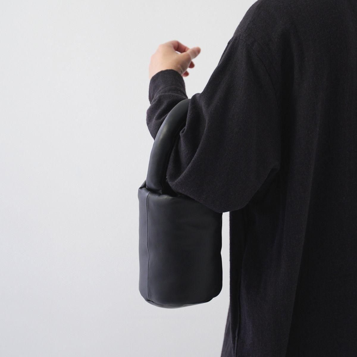 ドイツ発のレザーブランド"NOWHOW。 "NOW"=『今』、"HOW"=『どの様に』、革職人とオペラ振付師という異なる経歴をもつ2人の日本人によってベルリンにてデザインから製作まで全ての工程を行う。ヨーロッパの上質なレザーを使用しベーシックでありながらコンテンポラリーなプロダクトを提案されています。 熟練した革職人がひとつひとつハンドメイドで丁寧に仕立てており、軽量かつ柔らかな革は使い込むほどに味わいの出る経年変化を楽しめます。 こちらはラムレザーに中綿入りの筒型バッグ、ブランド定番の"CYLIND"。 使用されているレザーは南フランスで約150年ラムのみをなめしてきた老舗のタンナーによるもの。名だたるメゾンブランドも同じ皮を使用するなど上質なレザーを使用。 ラムレザーの程よいハリと、ボディ、持ち手にも入った中綿のふわふわした感触が特徴でとても軽量な仕上がりに。美しいフォルムと小ぶりなサイズ感はコーディネートのアクセントになります。 ※この製品は天然の皮革を使用しております。皮革の表面は傷がつきやすいので丁寧にお取り扱いください。 ※職人による手作業の為、小ジワ、小キズ、多少の個体差などがございますが、味わいとしてご理解くださいませ。 また、ご使用中の摩擦や水濡れにより色落ちや色移りの可能性がございます。衣服との組み合わせの際は充分にご注意ください。 Size(mm): H332 W/D150 material: Lambskin Polyester wadding color: Black お取り扱い店舗・・・dieci芝川ビル店