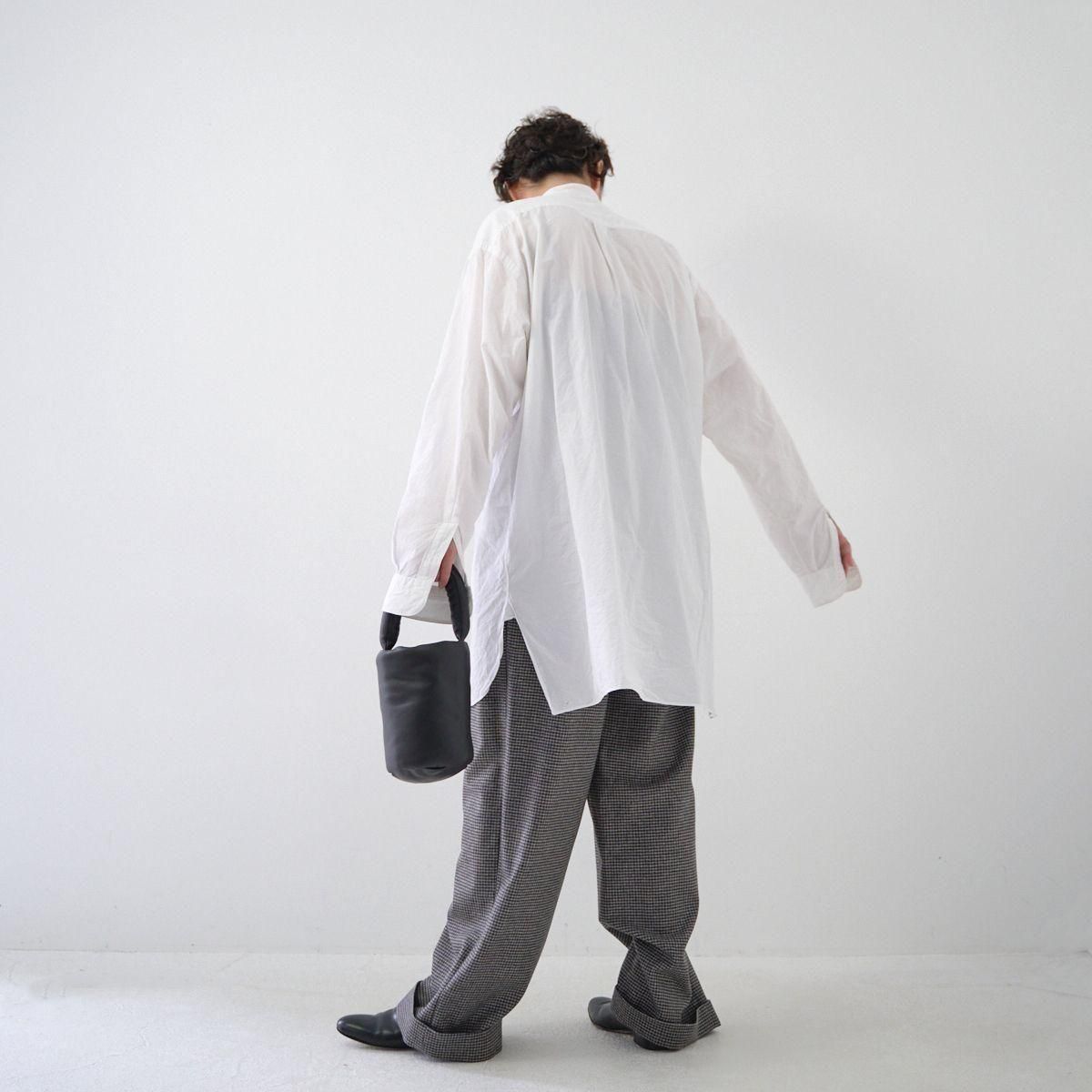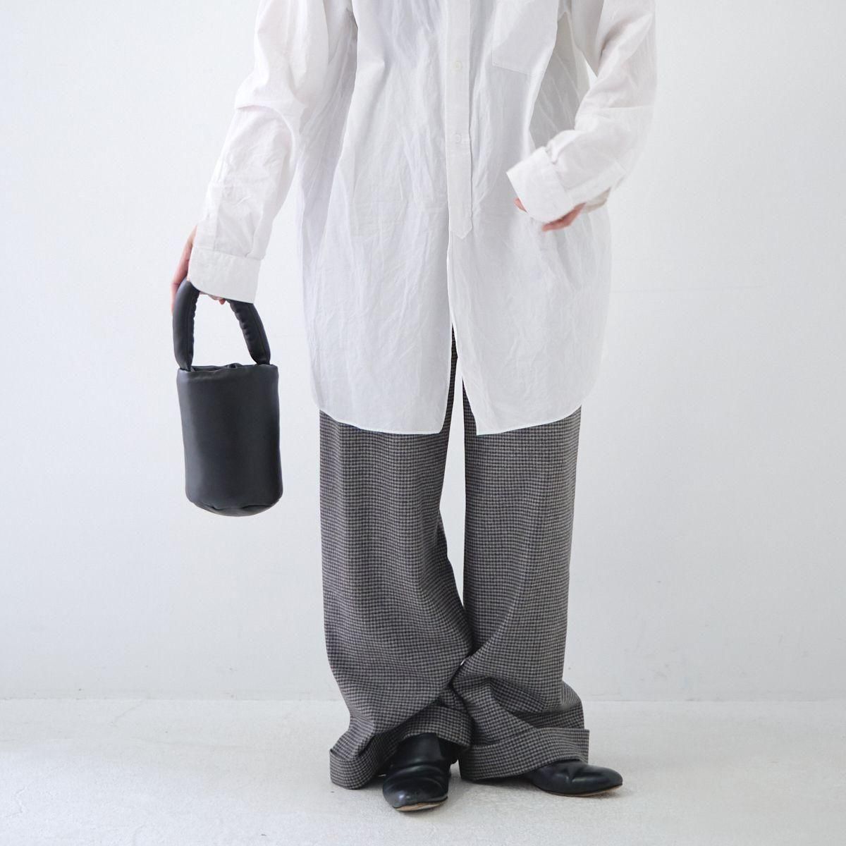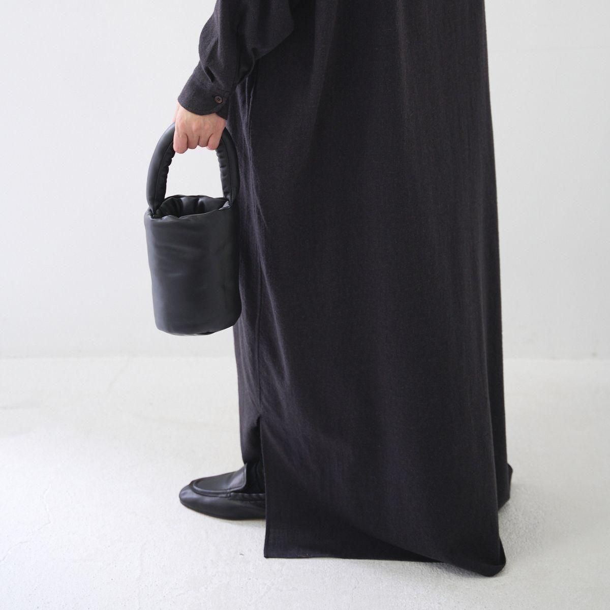 ドイツ発のレザーブランド"NOWHOW。 "NOW"=『今』、"HOW"=『どの様に』、革職人とオペラ振付師という異なる経歴をもつ2人の日本人によってベルリンにてデザインから製作まで全ての工程を行う。ヨーロッパの上質なレザーを使用しベーシックでありながらコンテンポラリーなプロダクトを提案されています。 熟練した革職人がひとつひとつハンドメイドで丁寧に仕立てており、軽量かつ柔らかな革は使い込むほどに味わいの出る経年変化を楽しめます。 こちらはラムレザーに中綿入りの筒型バッグ、ブランド定番の"CYLIND"。 使用されているレザーは南フランスで約150年ラムのみをなめしてきた老舗のタンナーによるもの。名だたるメゾンブランドも同じ皮を使用するなど上質なレザーを使用。 ラムレザーの程よいハリと、ボディ、持ち手にも入った中綿のふわふわした感触が特徴でとても軽量な仕上がりに。美しいフォルムと小ぶりなサイズ感はコーディネートのアクセントになります。 ※この製品は天然の皮革を使用しております。皮革の表面は傷がつきやすいので丁寧にお取り扱いください。 ※職人による手作業の為、小ジワ、小キズ、多少の個体差などがございますが、味わいとしてご理解くださいませ。 また、ご使用中の摩擦や水濡れにより色落ちや色移りの可能性がございます。衣服との組み合わせの際は充分にご注意ください。 Size(mm): H332 W/D150 material: Lambskin Polyester wadding color: Black お取り扱い店舗・・・dieci芝川ビル店