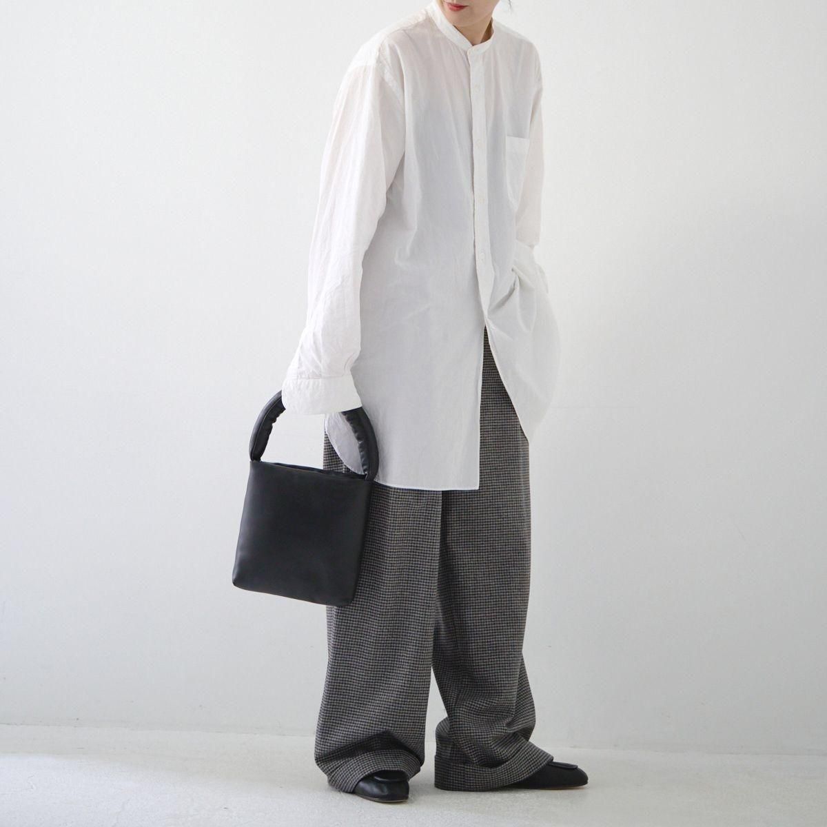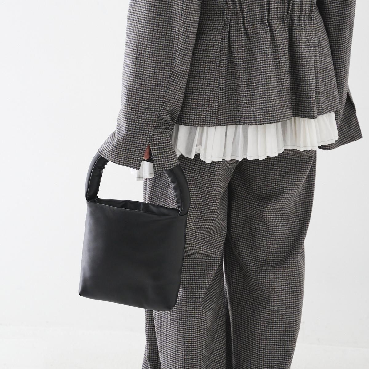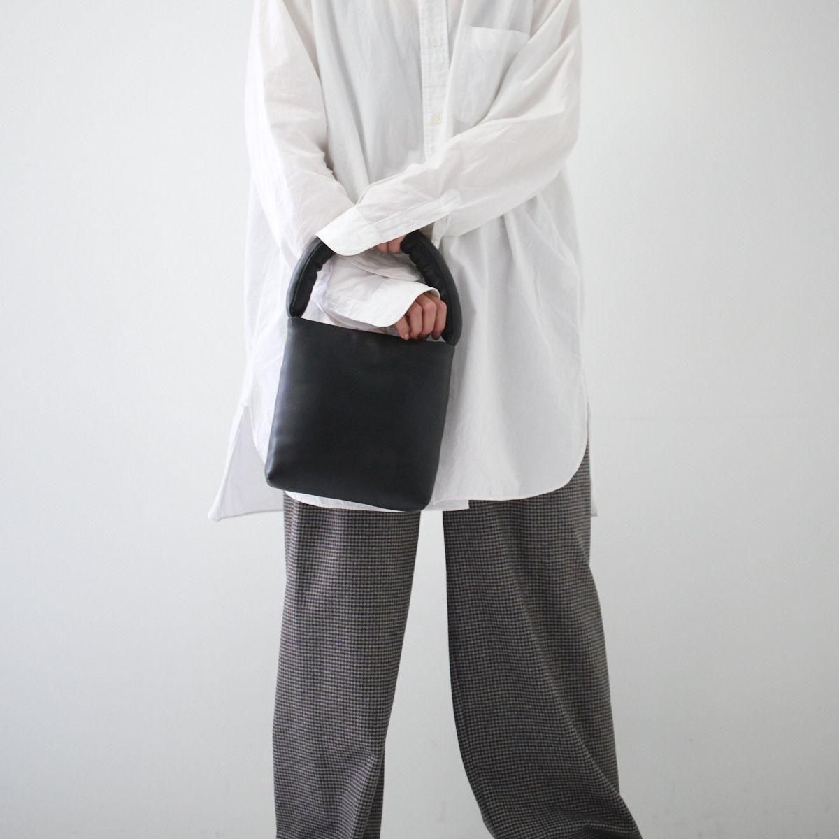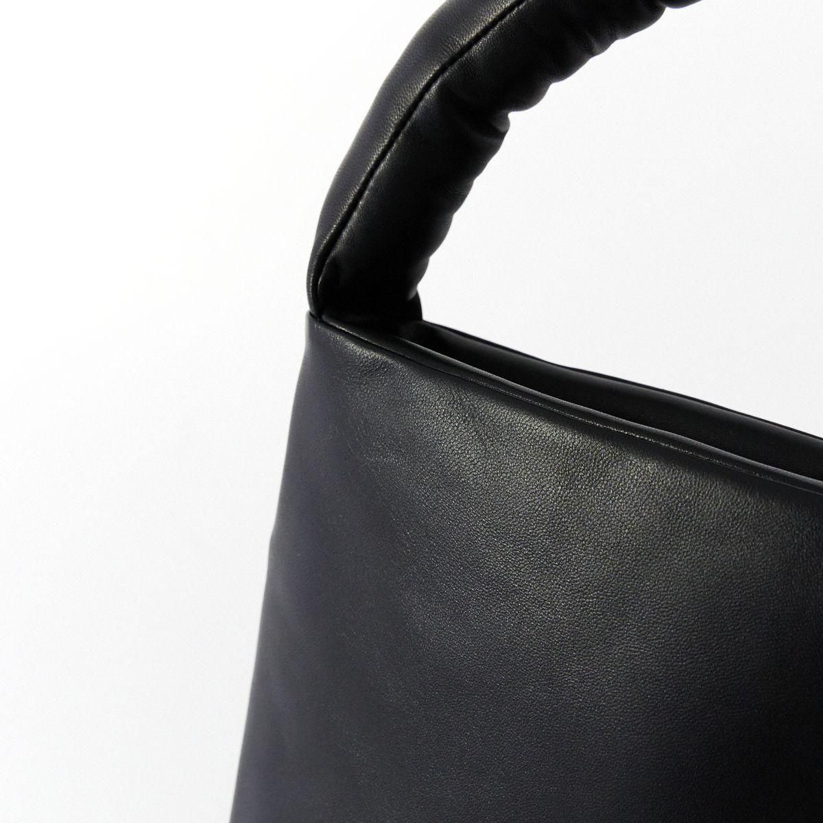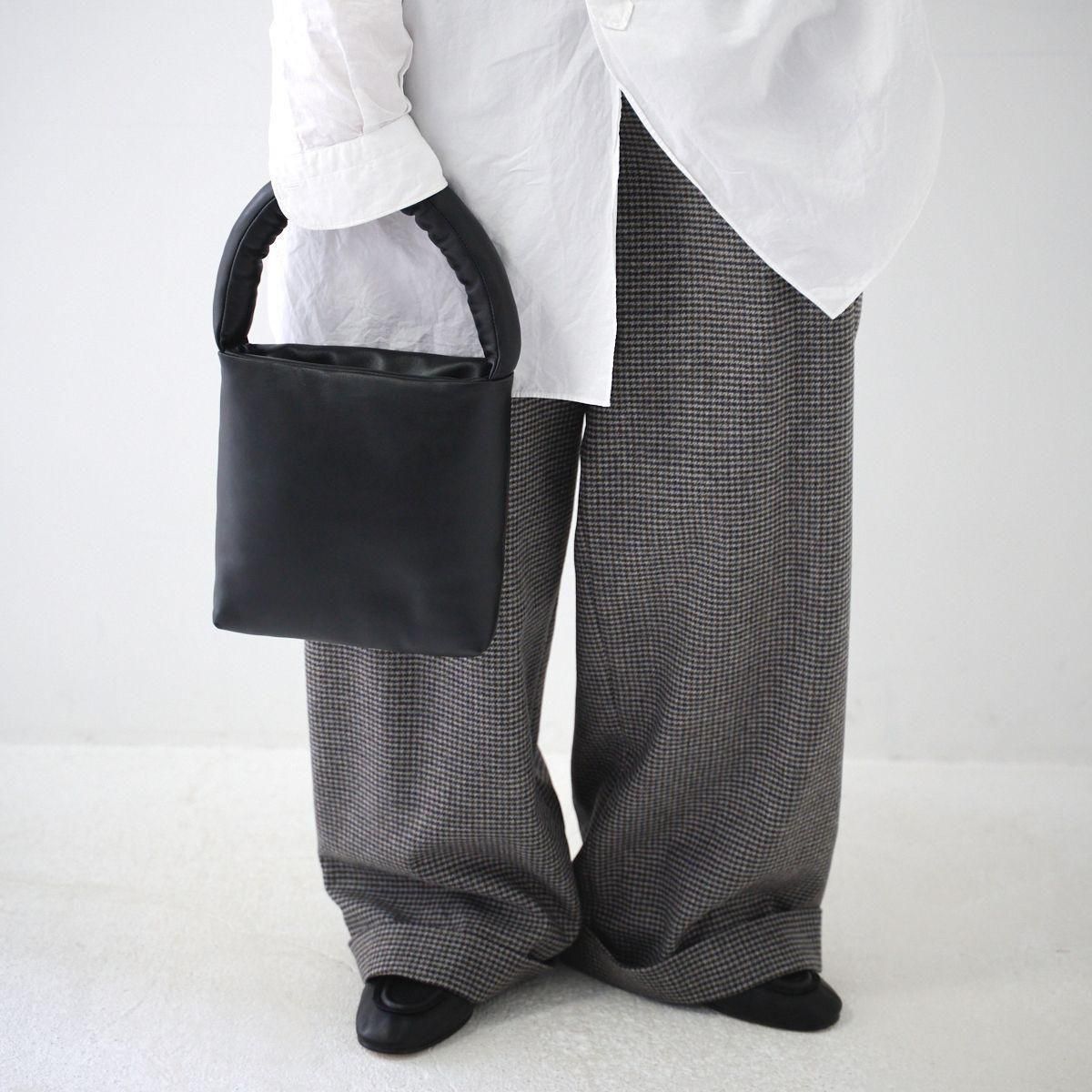 ドイツ発のレザーブランド"NOWHOW。 "NOW"=『今』、"HOW"=『どの様に』、革職人とオペラ振付師という異なる経歴をもつ2人の日本人によってベルリンにてデザインから製作まで全ての工程を行う。ヨーロッパの上質なレザーを使用しベーシックでありながらコンテンポラリーなプロダクトを提案されています。 熟練した革職人がひとつひとつハンドメイドで丁寧に仕立てており、軽量かつ柔らかな革は使い込むほどに味わいの出る経年変化を楽しめます。 こちらはラムレザーに中綿入りのスクエア型バッグ。 使用されているレザーは南フランスで約150年ラムのみをなめしてきた老舗のタンナーによるもの。名だたるメゾンブランドも同じ皮を使用するなど上質なレザーを使用。 ラムレザーの程よいハリと、ボディ、持ち手にも入った中綿のふわふわした感触が特徴でとても軽量な仕上がりに。美しいフォルムと小ぶりなサイズ感はコーディネートのアクセントになります。 ※この製品は天然の皮革を使用しております。皮革の表面は傷がつきやすいので丁寧にお取り扱いください。 ※職人による手作業の為、小ジワ、小キズ、多少の個体差などがございますが、味わいとしてご理解くださいませ。 また、ご使用中の摩擦や水濡れにより色落ちや色移りの可能性がございます。衣服との組み合わせの際は充分にご注意ください。 Composition: Lambskin, Polyester (Wadding) Size(mm): H210-360/W210 Handmade in Germany. color:Black お取り扱い店舗・・・dieci芝川ビル店