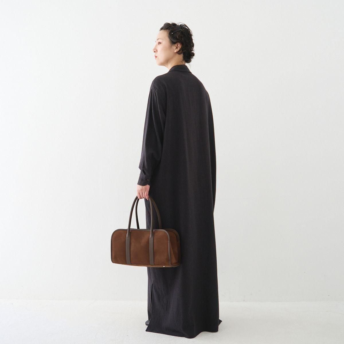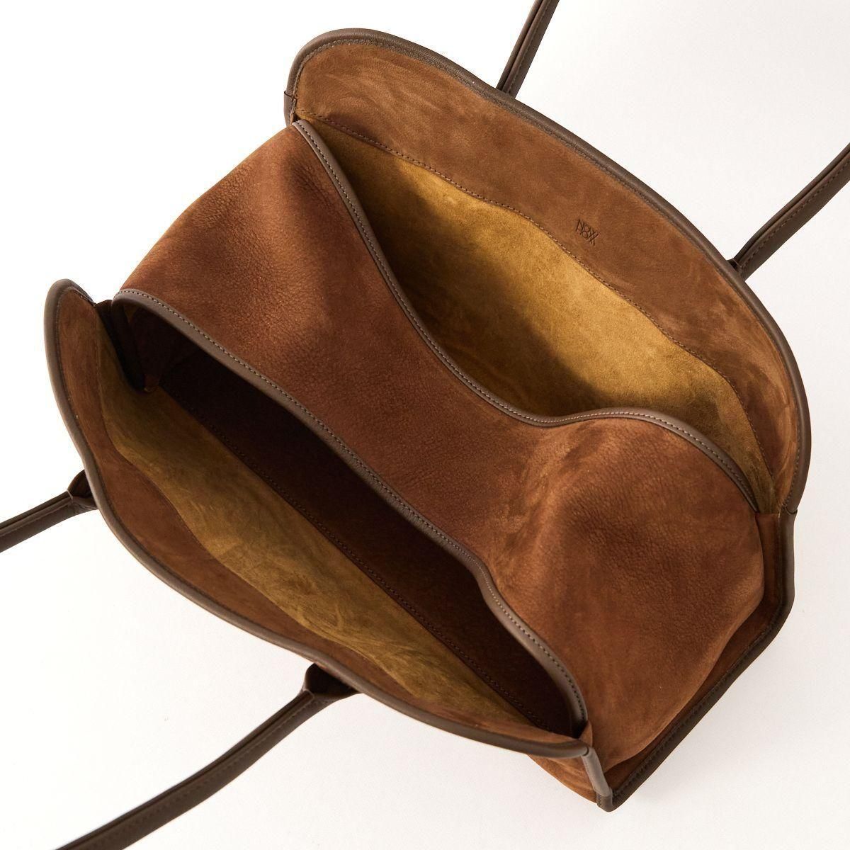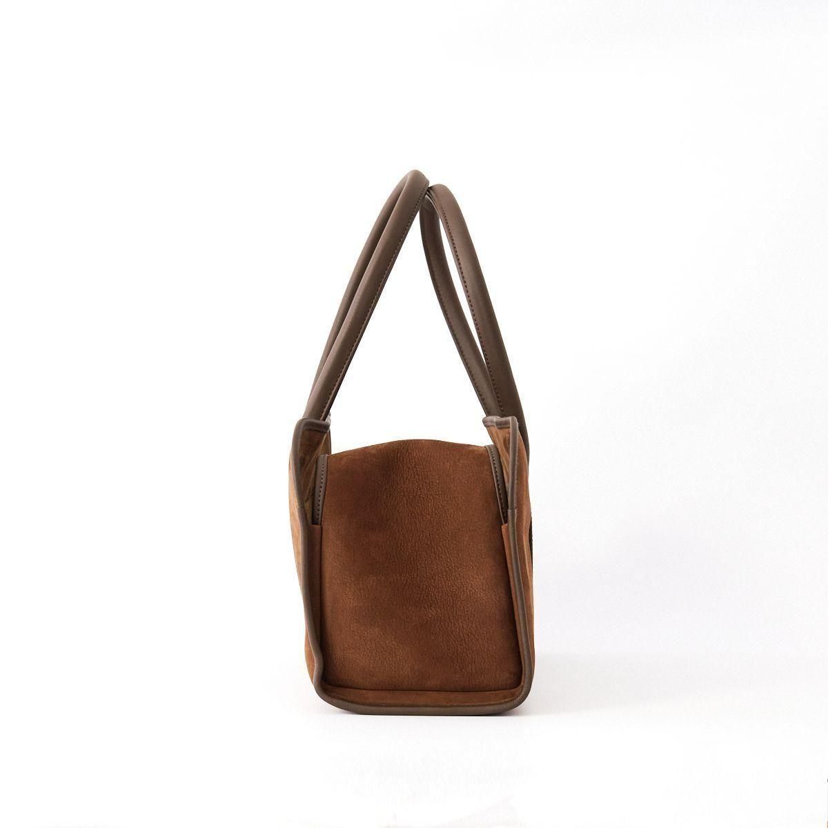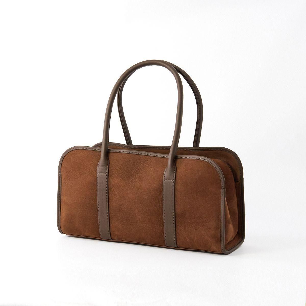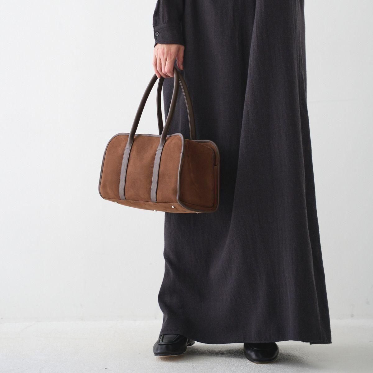 ドイツ発のレザーブランド"NOWHOW。 "NOW"=『今』、"HOW"=『どの様に』、革職人とオペラ振付師という異なる経歴をもつ2人の日本人によってベルリンにてデザインから製作まで全ての工程を行う。ヨーロッパの上質なレザーを使用しベーシックでありながらコンテンポラリーなプロダクトを提案されています。 熟練した革職人がひとつひとつハンドメイドで丁寧に仕立てており、軽量かつ柔らかな革は使い込むほどに味わいの出る経年変化を楽しめます。 こちらはヌバックを使用したRIDEG wide。 サイドのマチ部分を延長し帯状に渡された開閉口が特徴のデザインです。 外から中が見えにくくなっていて、その帯は少しカーブを施されているので、物の出し入れもしやすくなっています。パイピングやエッジなど細かい部分がハンドクラフトならではのハンドバッグです。内側に小さめのポケットが2つ付いています。底鋲付き。 ※この製品は天然の皮革を使用しております。皮革の表面は傷がつきやすいので丁寧にお取り扱いください。 ※職人による手作業の為、小ジワ、小キズ、多少の個体差などがございますが、味わいとしてご理解くださいませ。 また、ご使用中の摩擦や水濡れにより色落ちや色移りの可能性がございます。衣服との組み合わせの際は充分にご注意ください。 size:ONE SIZE W345mm D150mm H170mm(STRAP LENGTH 520mm) material: Cow leather(南フランス製牛革)/パイピング部分 Lambskin color:Black / Dark Brown お取り扱い店舗・・・dieci芝川ビル店