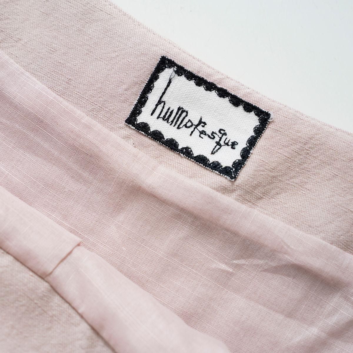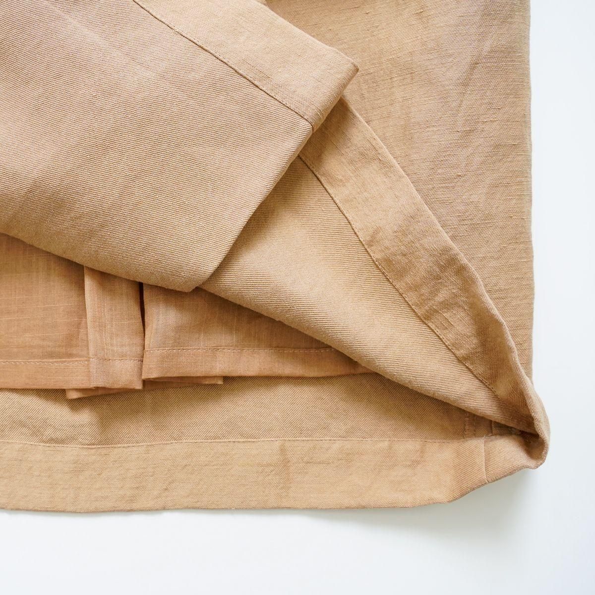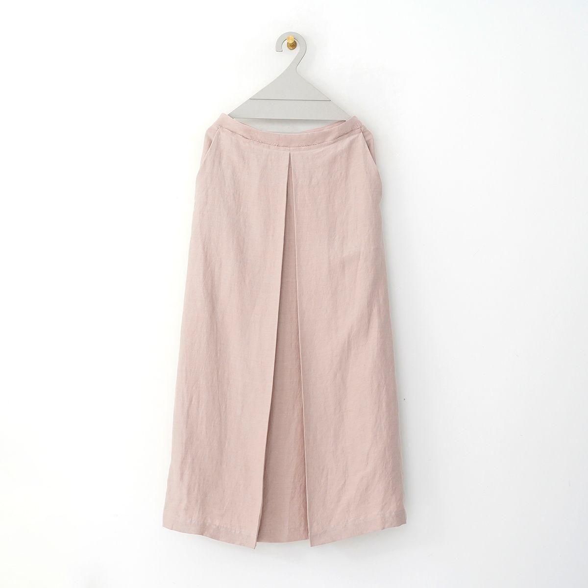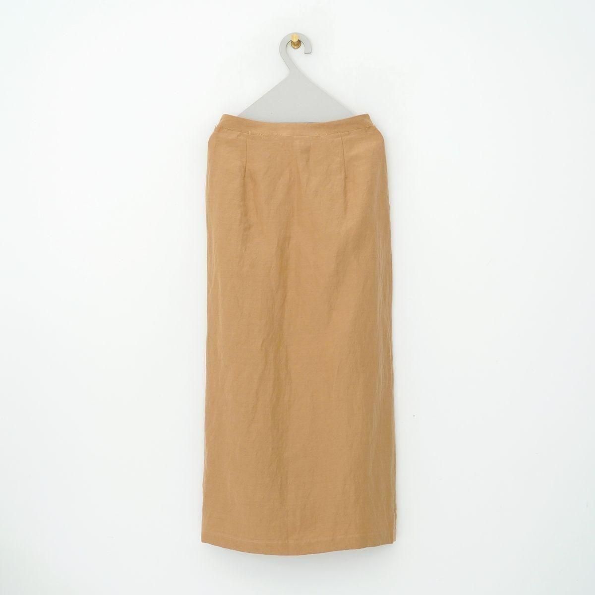 humoresque(ユーモレスク)は、デザイナー 渡辺由夏さんの「ちょうど良い糸を、ちょうど良い形で編んでみたい。」との想いから2012年の秋冬シーズンにニットを中心とした衣服ブランドをスタート。 動きに品を添える、ボックスタックのスカート 素材は、縦に中太番手シルク、横に中太番手のリネン糸で密度を甘めに織ったリネンシルクを使いました。リネンのソリッドな表情にシルクならではの静かな品の良さが見え隠れして、膨らみがありながらも軽い感触が特徴です。肌に触れる面には加工をしてピーチタッチに仕上げていますので、素肌でも心地よく感じられます。肌に馴染むほどに柔らかさが増し、風合いに深みが生まれるので、長く愛用するほど自分だけの1着へ育ってゆく過程も楽しんでいただける素材です。 ウエストからくるぶしまでゆったりと落ちるクリーンなラインは、どんなトップスを合わせてもすっきりとまとまります。大きめのプリーツを入れることで長めの丈にある動きにくさを解消しました。ウエストには裁ち切りのディテールを効かせるなど、細やかな仕立ての技術も光ります。 色は、優しい華やかさを添えるpink beige、柔和なivory、枯葉のようなbeigeの3色をご用意しております。 同生地でお作りしているpuff sleeve pulloverとのセットアップもおすすめです。 両サイドポケット付き (humoresque officialより引用) 25AW color: color:pink beige / camel / ivory size: 38 ウエスト 37cm 着丈95cm ヒップ50cm material: リネン54% シルク46% 手洗い可 model: 163cm お取り扱い店舗・・・dieci芝川ビル店 size_chart