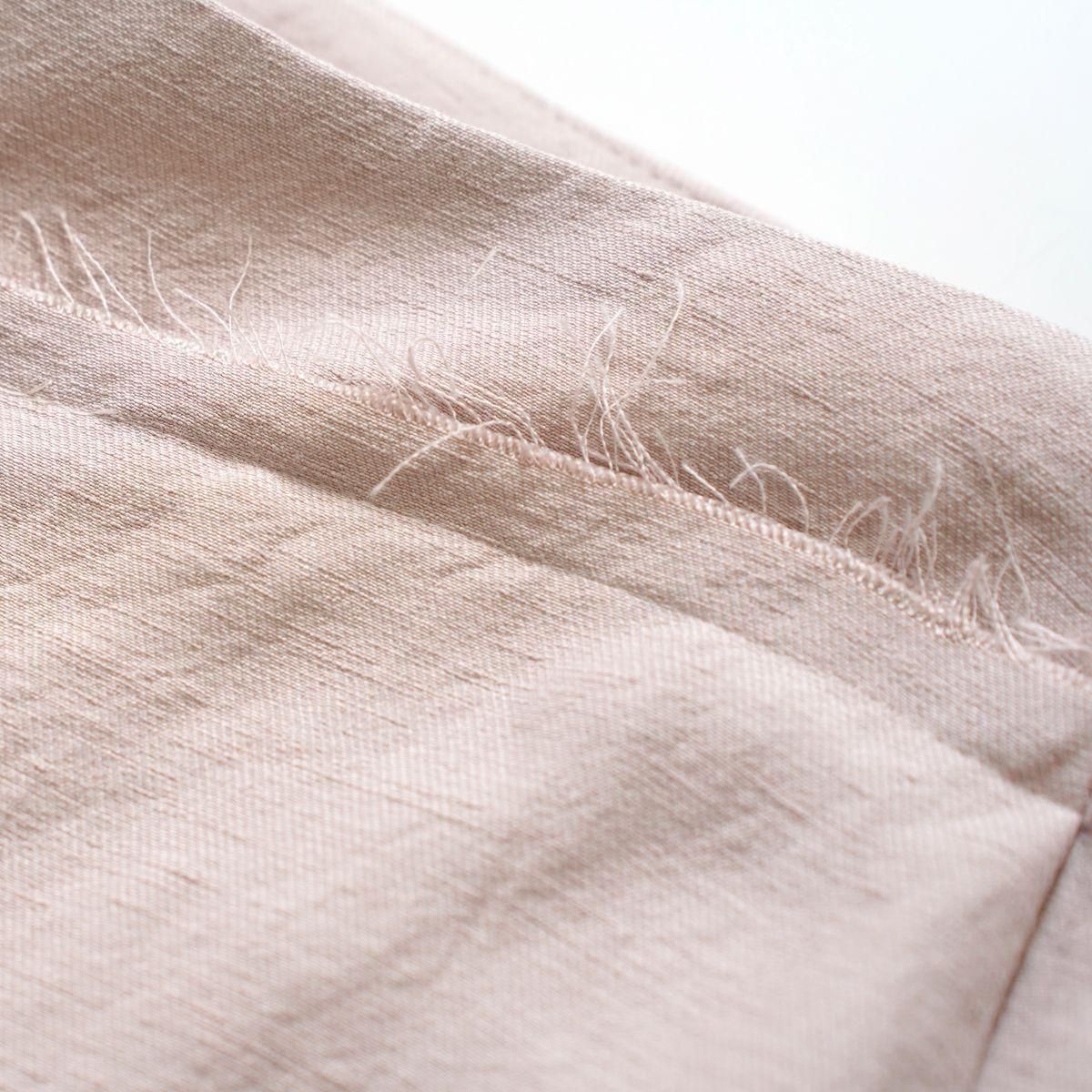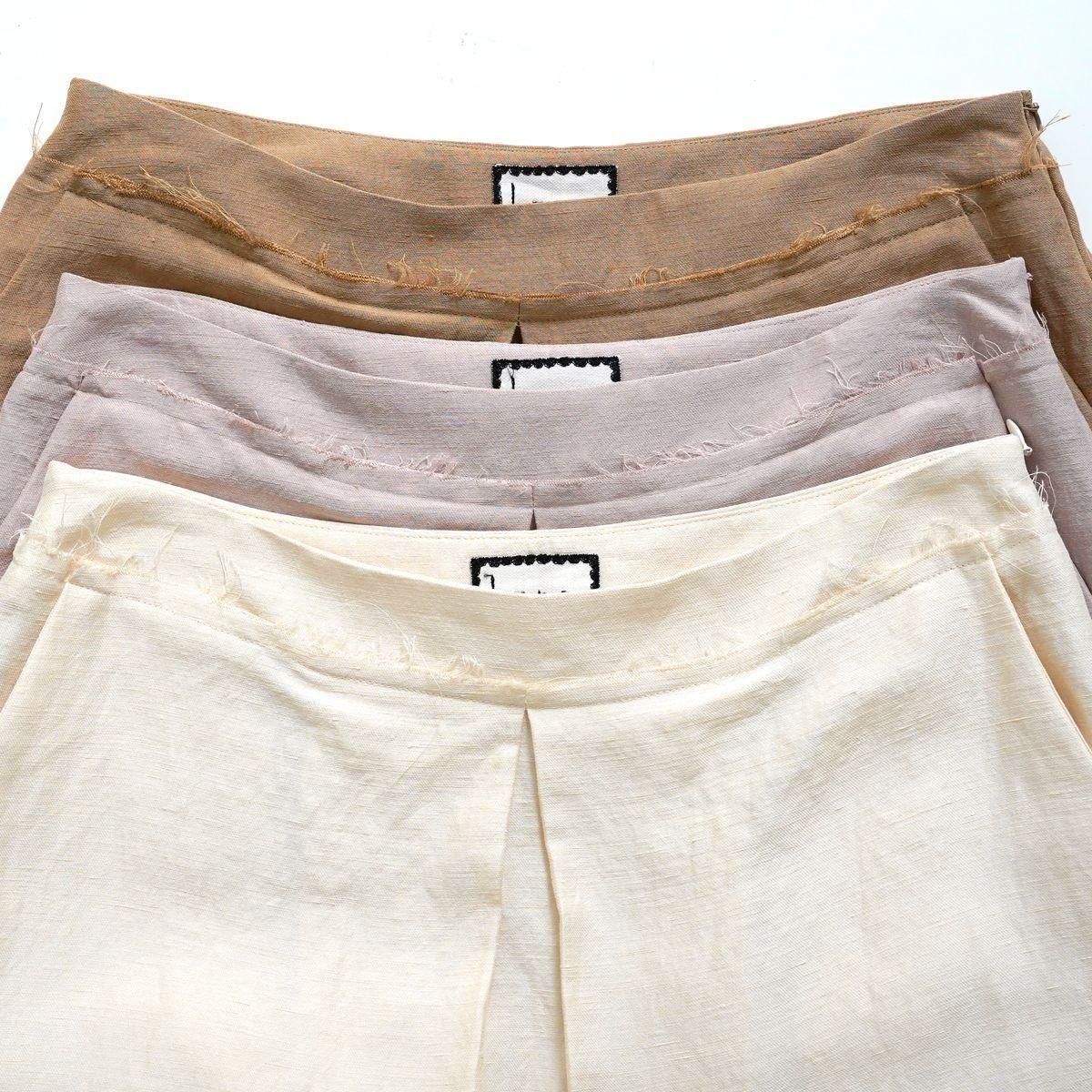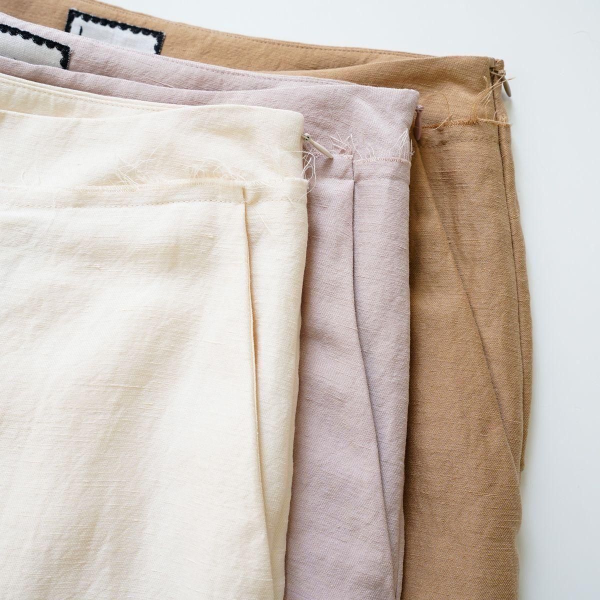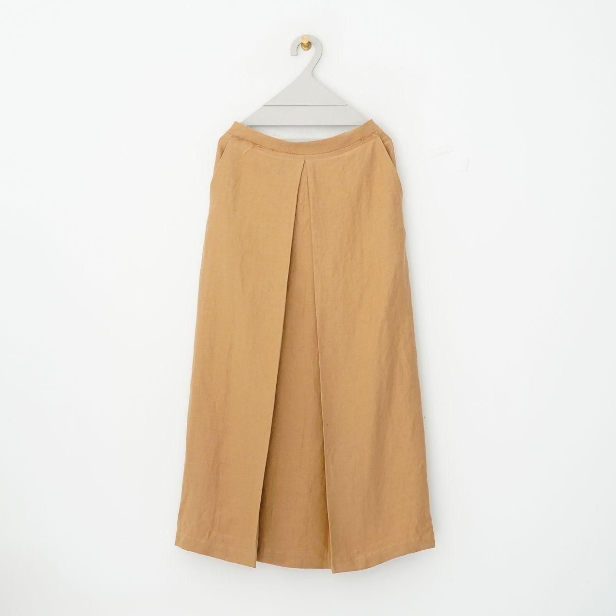 humoresque(ユーモレスク)は、デザイナー 渡辺由夏さんの「ちょうど良い糸を、ちょうど良い形で編んでみたい。」との想いから2012年の秋冬シーズンにニットを中心とした衣服ブランドをスタート。 動きに品を添える、ボックスタックのスカート 素材は、縦に中太番手シルク、横に中太番手のリネン糸で密度を甘めに織ったリネンシルクを使いました。リネンのソリッドな表情にシルクならではの静かな品の良さが見え隠れして、膨らみがありながらも軽い感触が特徴です。肌に触れる面には加工をしてピーチタッチに仕上げていますので、素肌でも心地よく感じられます。肌に馴染むほどに柔らかさが増し、風合いに深みが生まれるので、長く愛用するほど自分だけの1着へ育ってゆく過程も楽しんでいただける素材です。 ウエストからくるぶしまでゆったりと落ちるクリーンなラインは、どんなトップスを合わせてもすっきりとまとまります。大きめのプリーツを入れることで長めの丈にある動きにくさを解消しました。ウエストには裁ち切りのディテールを効かせるなど、細やかな仕立ての技術も光ります。 色は、優しい華やかさを添えるpink beige、柔和なivory、枯葉のようなbeigeの3色をご用意しております。 同生地でお作りしているpuff sleeve pulloverとのセットアップもおすすめです。 両サイドポケット付き (humoresque officialより引用) 25AW color: color:pink beige / camel / ivory size: 38 ウエスト 37cm 着丈95cm ヒップ50cm material: リネン54% シルク46% 手洗い可 model: 163cm お取り扱い店舗・・・dieci芝川ビル店 size_chart