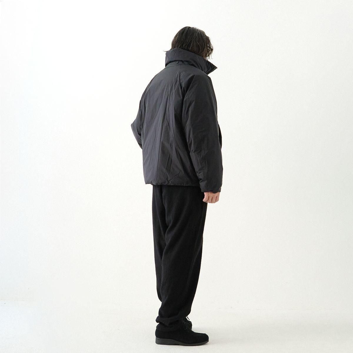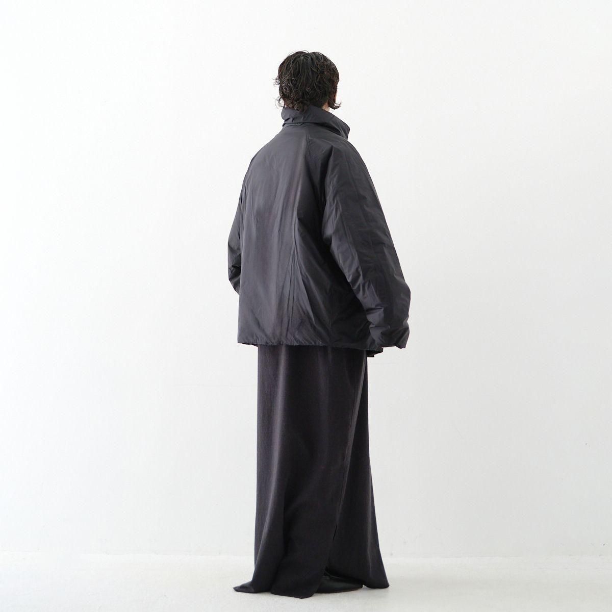 着用時のストレスを無くす超軽量性。 繊細な素材を用いることで表現される上品な光沢感。 品のある表情に仕上げ、ON/OFF様々なシーンで着用可能。 MUTE SCOPE S/L の重量は約500gの超軽量。 大振りな襟。 立てても寝かせても良い襟。 ゆったりとした身幅が特徴のショートブルゾン。 小分けに収納出来るポケットを各部に配置(ポケット数:8)。 ON/OFどちらのシーンでも着用可能なシンプルデザイン。 肩幅の設定の無いデザインにする事で様々な体型にフィット。 襟後ろにハンガーフックを配置。 フロントファスナーはWジップを採用。 EVAPOD / エヴァポッド TEATORA史上、最軽量アウターです。 圧倒的な軽さを誇るEVAPODシリーズで、ひとたび袖を通せば暖かさからは想像もできない、着用していることすら忘れてしまうほどの軽さです。 ダウンパック: 内蔵されているダウンパックは、1956年から南極観測隊に採用される老舗日本ダウンメーカーZANTER社製。 まるで暖かな空気を纏っているような保温力です。 表地に採用された超軽量素材でパッキングすることで着用していることを忘れるほどの軽やかさを実現しています。 ビジネストリップのために開発されたMUTE SCOPEは、収納力を誇るhands freeシリーズの中でもごちゃつきがちなスモールデバイスの分別収納に特化したガーメントです。 腰ポケ内部にファスナーポケットを内蔵。旅先の現地通貨やカード、スマートフォンなど、ポケットに手をいれたまま直接アクセスできます。パスポートも収まるサイズになっているので、セキュリティーポケットとしても利用できます。 左右の内前身頃にはスモールデバイスの分別に便利な4室の縦型ファスナーポケットを内蔵。スマートフォンやワイヤレスイヤホン、充電器などのポケットの中で乱雑になりがちなスモールデバイスを細かく分別ができます。 size: 1,2,3 size1 着丈:63cm 身幅:68cm 裄丈:86cm size2 着丈:65cm 身幅:70cm 裄丈:88cm size3 着丈:67cm 身幅:72cm 裄丈:90cm color:BLACK material: NYLON 100% ダウン組成: DOWN 90% FEATHER 10% ATTENTION ※エヴァポッドシリーズはデリケートな素材を使用している為、突起物やざらついたものに擦れると、引裂や破損が生じます。 また、摩擦や熱、火によっても破損が生じますので十分にご注意下さい。 この商品は、撥水、防水製品ではありません。雨、雪など製品が濡れる状況でのご使用はお避け下さい。 model:173cm/ 163cm (#3) 取扱い店舗…dieci芝川ビル店 -------------------------------------------------------------------------------- 2013年にスタートした、ワークチェアで戦うクリエーターのためのワークウェアメーカーTEATORA。クリエーターのパフォーマンスを向上させることを目的に開発された頭脳職のための機能服。様々なTPOに対して研究、開発されたTEATORAのウェアはあなたの都市生活をよりスマートにしてくれます。 size_chart