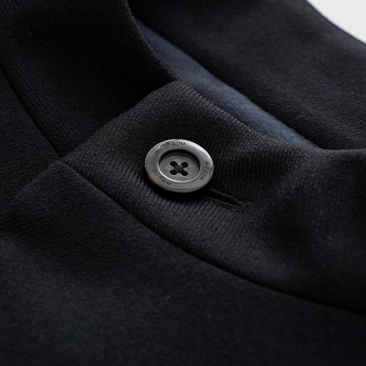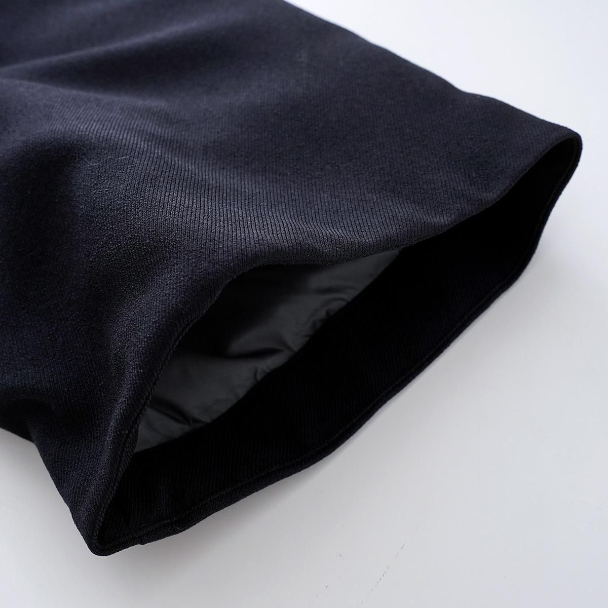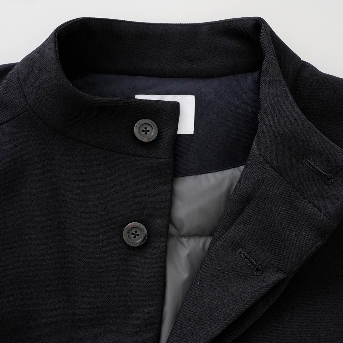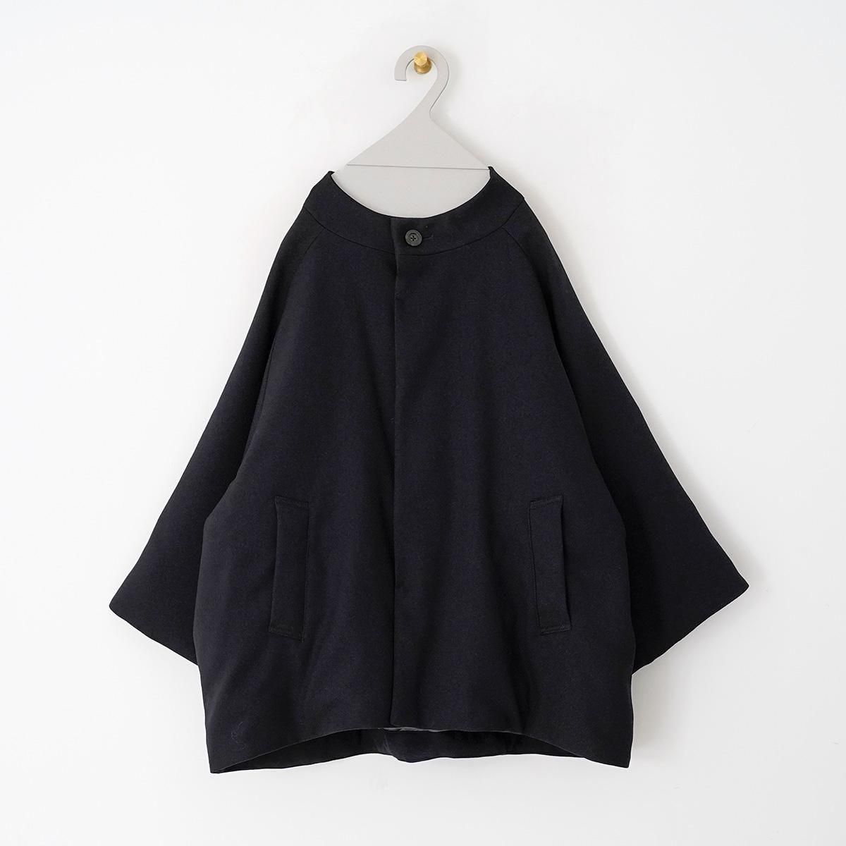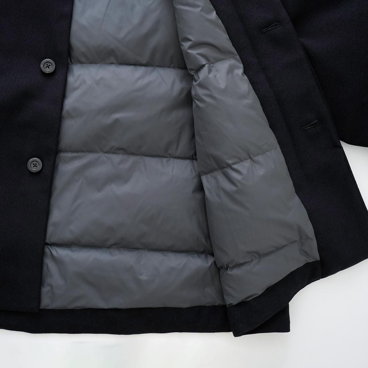 ケープのようなルックスのシンプルなAラインコート。 身頃と袖がそれぞれやや短めでゆったりとした作りなので、手袋などの冬小物を合わせやすく、ボリュームのあるニットの上からでもストレスなく羽織れます。 首や顔との干渉を抑えたモックネックラインで、フロントは衿元だけボタンが見える比翼仕立て。質感、見た目ともに、まるでウールのようなポリエステル100%の素材です。先染めの糸で織り上げることでリアルなウールに近い表情を実現。劣化に強く、非常に軽いのが特徴で、雨や湿気での縮みがないため、お手入れも簡単です。(公式より引用) 25AW size:2 身幅74cm/着丈71~77cm/袖丈74cm ※サイズ計測の多少の誤差はご了承下さい。 material: 表地: ポリエステル 100% 中綿: ダウン 90% フェザー 10% color:BLACK・BROWN(sold out) model:168cm お取り扱い店舗・・・dieci kyutaro店2F --------------------------------------------- "STAY WARM WITH WONDER" 〈miffew〉が目指すのは、トレンドやジェンダーを超え服を纏う人の日常と個性に寄り添う,「三冬(mifuyu)」のためのダウンウエア。服飾デザインの歴史に残る普遍的なアーカイブを再構築するだけでなく,新しいカタチに最高品質の国産ダウンを内包することでダウンウエアを都市生活者のワードローブとしてプレゼンテーションしています。 size_chart