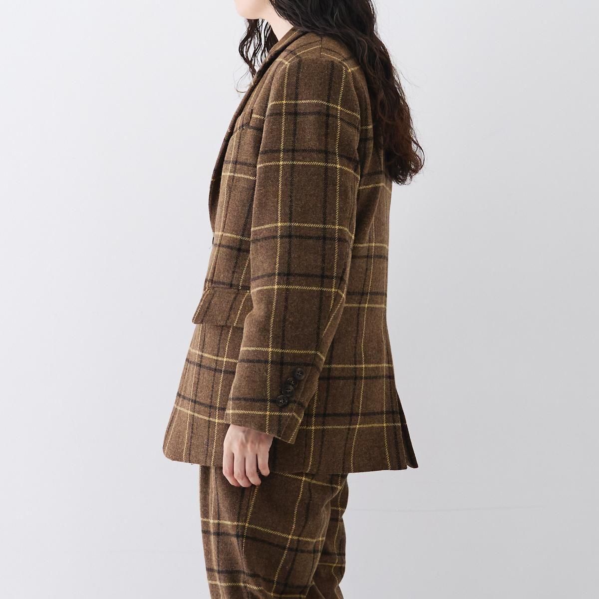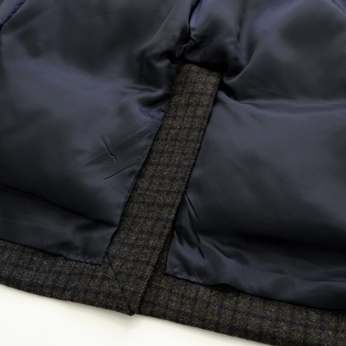 すっきりとしたフォルムを保ちながら暖かなダウンを忍ばせた、クラシックなテーラードジャケット。 ダウンパックを裾や袖口の内側に縫い付けず浮かしておくふらし始末にすることでナチュラルに仕上げたボックスシルエット、程よいドロップショルダーで、女性らしい柔和な印象に。パーツごとに細かくダウン量を調整することで、ボリューム感を抑えています。衿裏のカラークロスやフラップ裏の別地使い、背面のベンツなど細部にこだわりを感じる一着です。 原料調達から紡績、製織まで、すべての工程を尾州産地で行われています。 生地は古くから伝わる羊毛の循環・再生技術を活かしたリサイクルウールにリサイクルポリエステルをブレンドしたサスティナブル素材。生地本来の特徴であるゴワゴワ感を抑え、手織り感のある風合い、混じり気のあるメランジ調に。裏地には吸・放湿性に優れ、肌触りが滑らかなキュプラツイルを使用しています。(公式より引用) 25AW size:2 身幅55.5cm/肩幅46cm/着丈74.5cm ※サイズ計測の多少の誤差はご了承下さい。 material: 表地: 毛 60% ポリエステル 30% ナイロン 5% レーヨン 2% 中綿: ダウン 90% フェザー 10% color:BRITISH CHECK , GUNCLUB CHECK model:168cm(BRITISH CHECK) お取り扱い店舗・・・dieci kyutaro店2F --------------------------------------------- miffew|ミフュー "STAY WARM WITH WONDER" 〈miffew〉が目指すのは、トレンドやジェンダーを超え服を纏う人の日常と個性に寄り添う,「三冬(mifuyu)」のためのダウンウエア。服飾デザインの歴史に残る普遍的なアーカイブを再構築するだけでなく,新しいカタチに最高品質の国産ダウンを内包することでダウンウエアを都市生活者のワードローブとしてプレゼンテーションしています。 size_chart