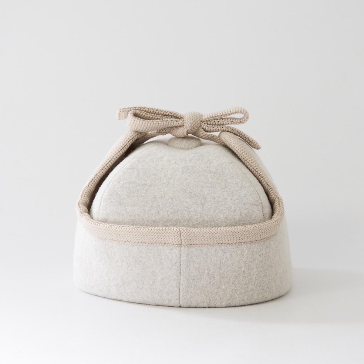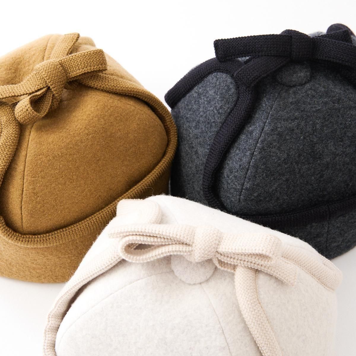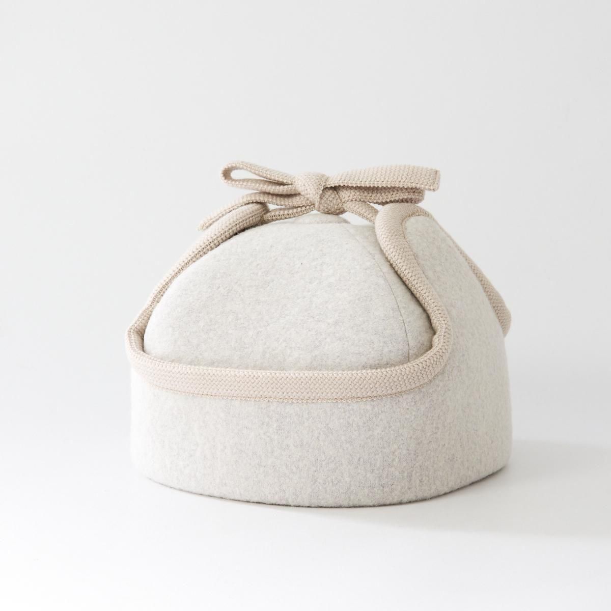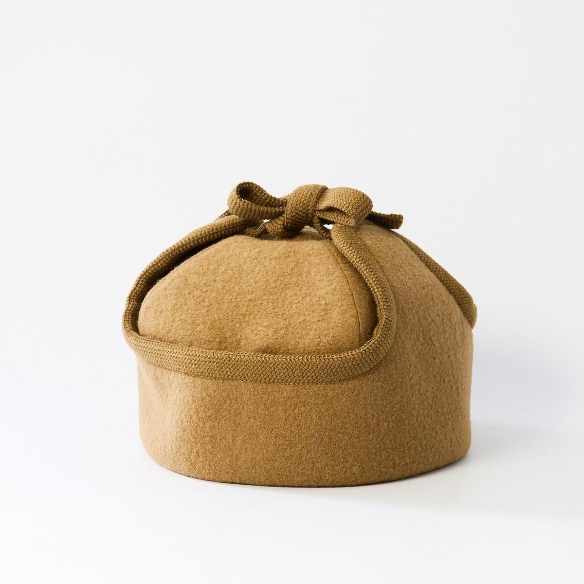 Sashikiオリジナルのトラッパーキャップです。 通称、飛行帽、フライトキャップ、トラッパー帽とも言われる耳当て付きの帽子ですが、こちらの商品はツバのないタイプになります。そのため、少しニットキャップのような雰囲気もあり、ツバのあるタイプよりも男性的な雰囲気が和らぎ、軽やかでやさしい雰囲気に仕上がっています。 表地はウールリングヤーンを圧縮した生地を使用していますのでふっくらとした印象です。寒い日は耳まで入れるのもおすすめです。すっぽりと被って暖かくお過ごしください。 ※サイズについて ご自身でサイズを測られる場合は、耳の付け根より指2本分上くらいを水平に測ります。 そこに髪の毛等のゆとり分として指1本分、または1cmプラスしたサイズが基本的なサイズとなりますので目安にされてください。 size:58,59,60 color:Charcoal,Camel,White material:wool65% nylon35% model:168cm 取り扱い店舗・・・dieci kyutaro店 2F ------------------------------------------------------ sashiki(サシキ) 2006年より神奈川県茅ヶ崎市に店舗を構える帽子専門ブランド。すべての工程を国内のアトリエにて行ない、ひとつひとつ丁寧に作られています。素材、デザインにこだわり、日々の装いに寄り添う帽子を制作しています。