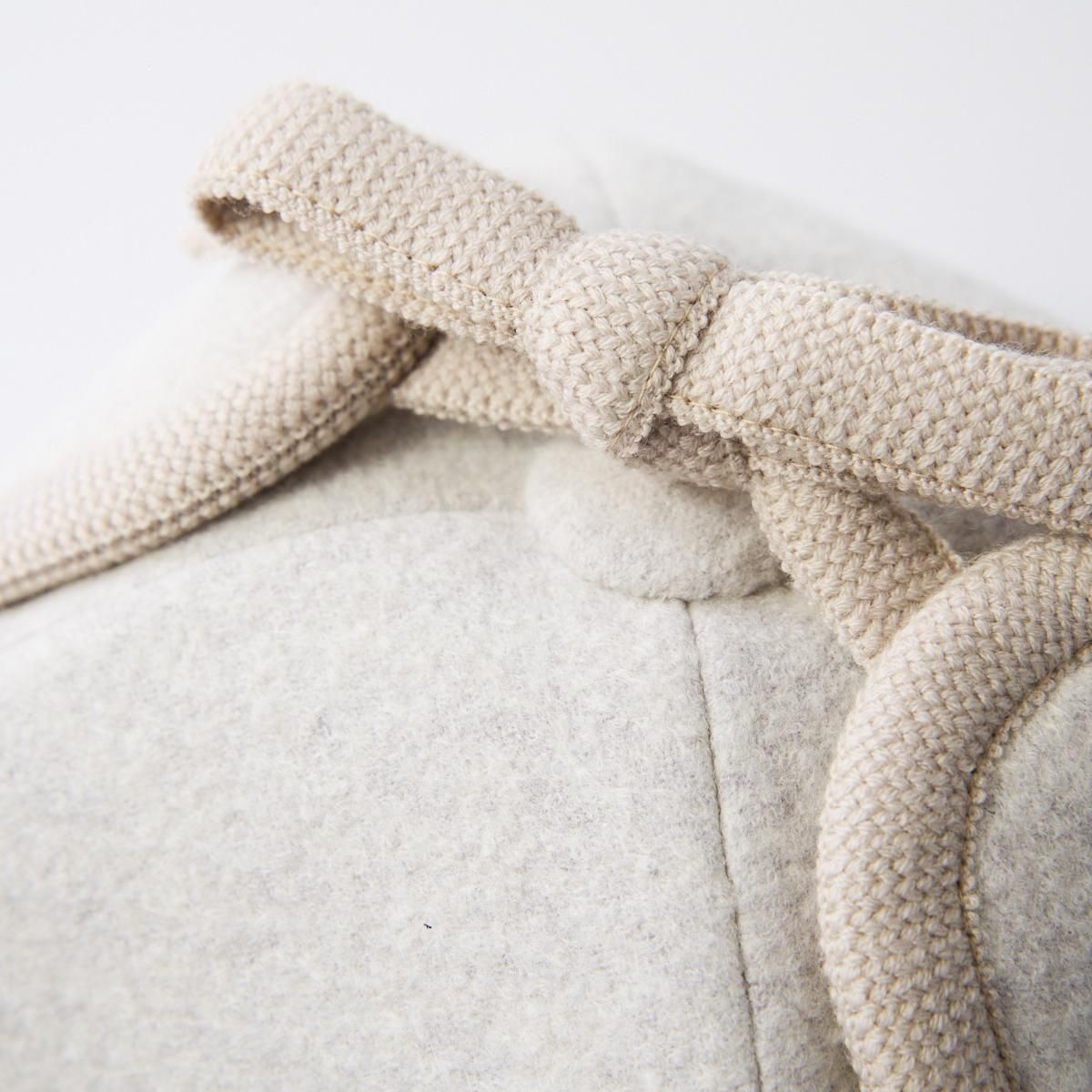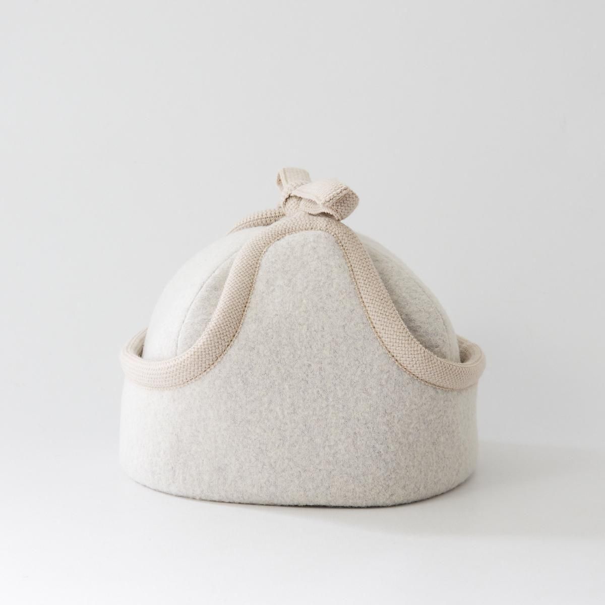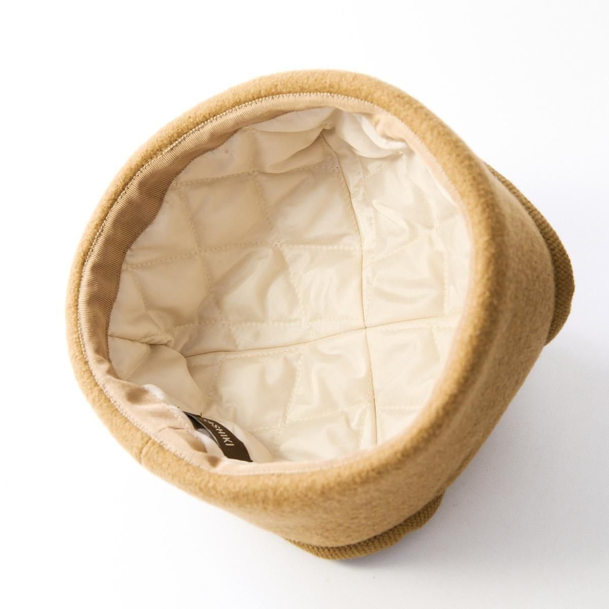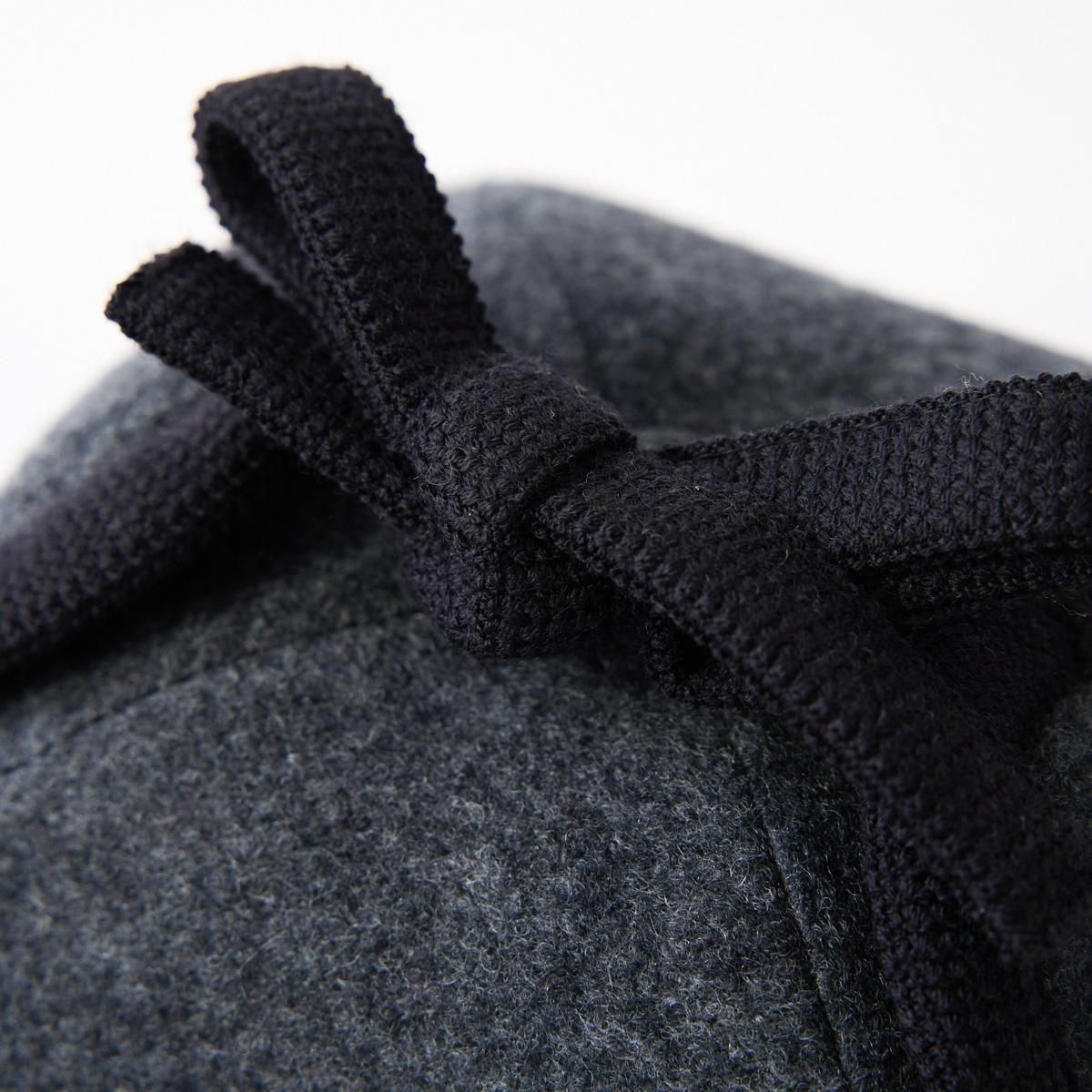 Sashikiオリジナルのトラッパーキャップです。 通称、飛行帽、フライトキャップ、トラッパー帽とも言われる耳当て付きの帽子ですが、こちらの商品はツバのないタイプになります。そのため、少しニットキャップのような雰囲気もあり、ツバのあるタイプよりも男性的な雰囲気が和らぎ、軽やかでやさしい雰囲気に仕上がっています。 表地はウールリングヤーンを圧縮した生地を使用していますのでふっくらとした印象です。寒い日は耳まで入れるのもおすすめです。すっぽりと被って暖かくお過ごしください。 ※サイズについて ご自身でサイズを測られる場合は、耳の付け根より指2本分上くらいを水平に測ります。 そこに髪の毛等のゆとり分として指1本分、または1cmプラスしたサイズが基本的なサイズとなりますので目安にされてください。 size:58,59,60 color:Charcoal,Camel,White material:wool65% nylon35% model:168cm 取り扱い店舗・・・dieci kyutaro店 2F ------------------------------------------------------ sashiki(サシキ) 2006年より神奈川県茅ヶ崎市に店舗を構える帽子専門ブランド。すべての工程を国内のアトリエにて行ない、ひとつひとつ丁寧に作られています。素材、デザインにこだわり、日々の装いに寄り添う帽子を制作しています。