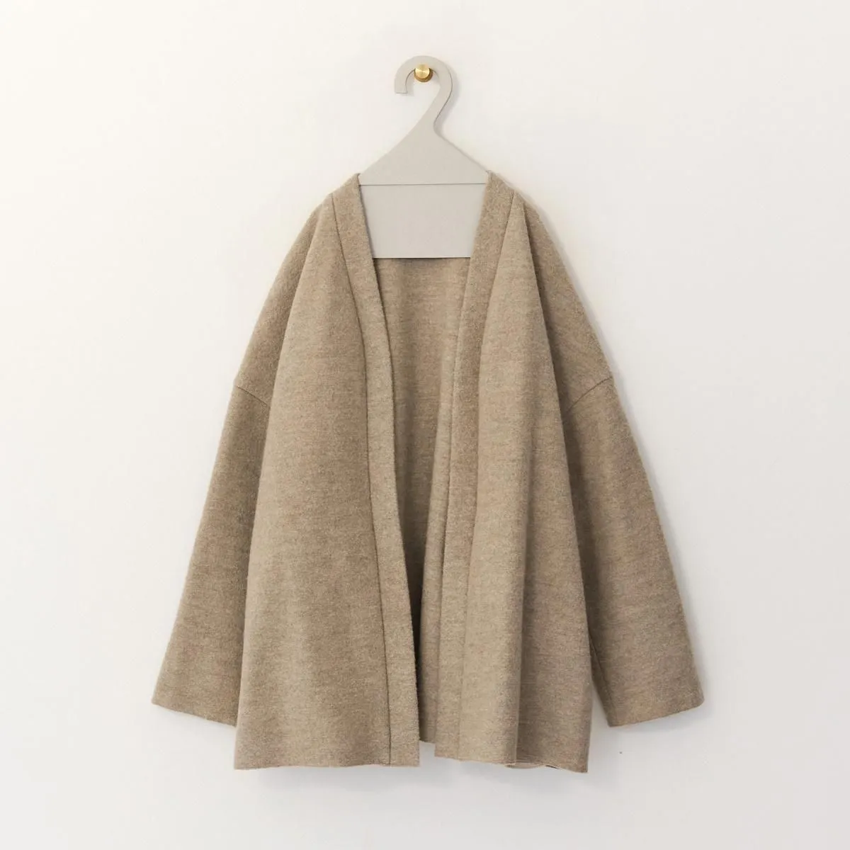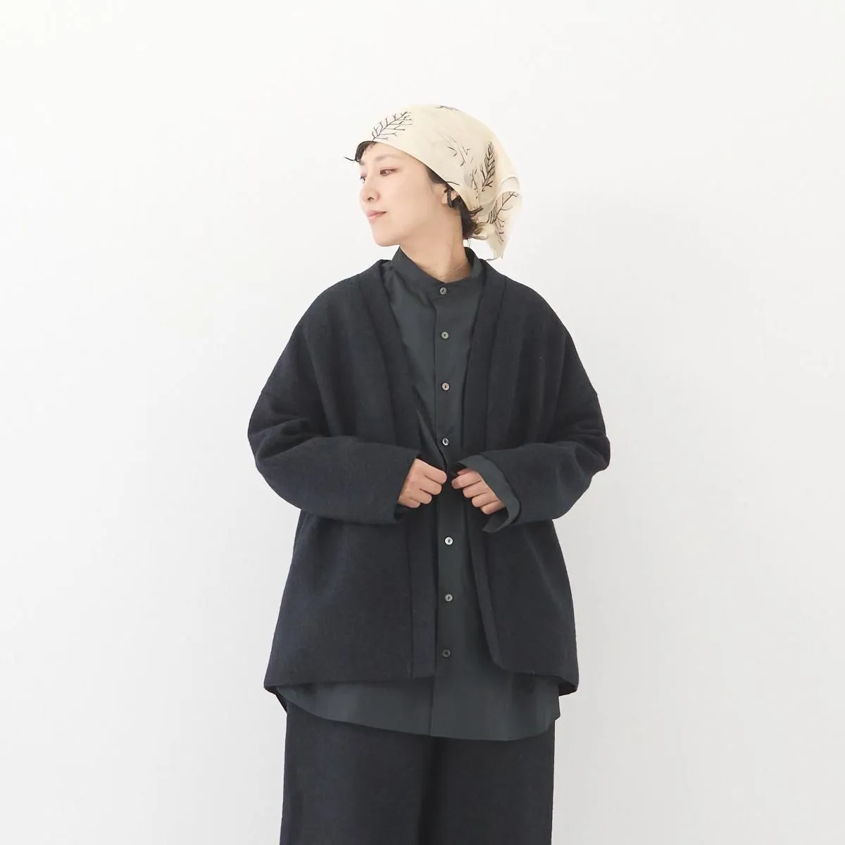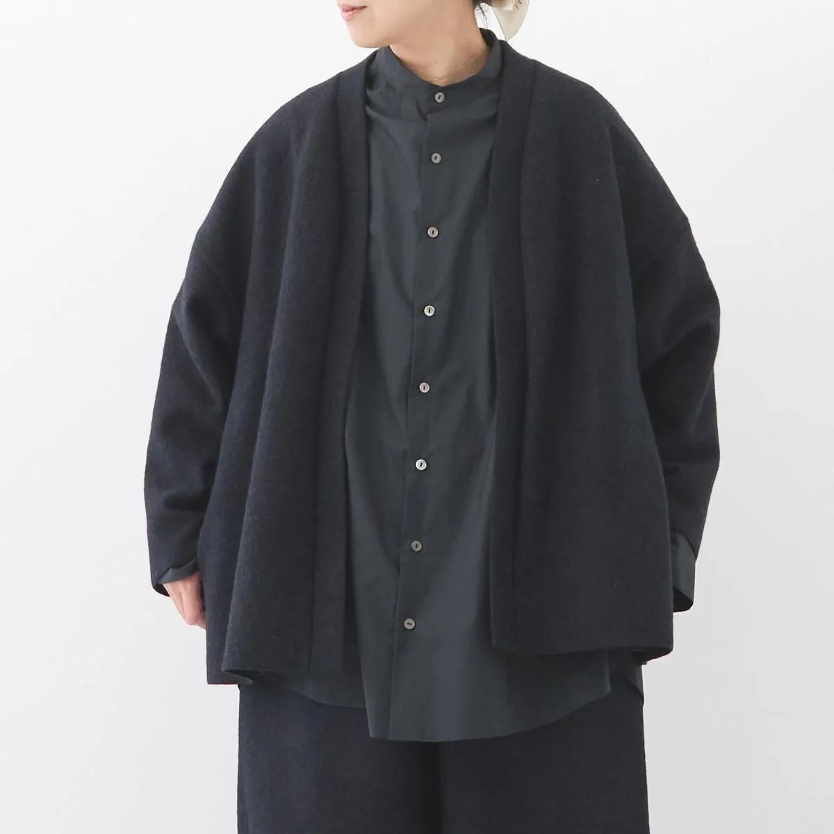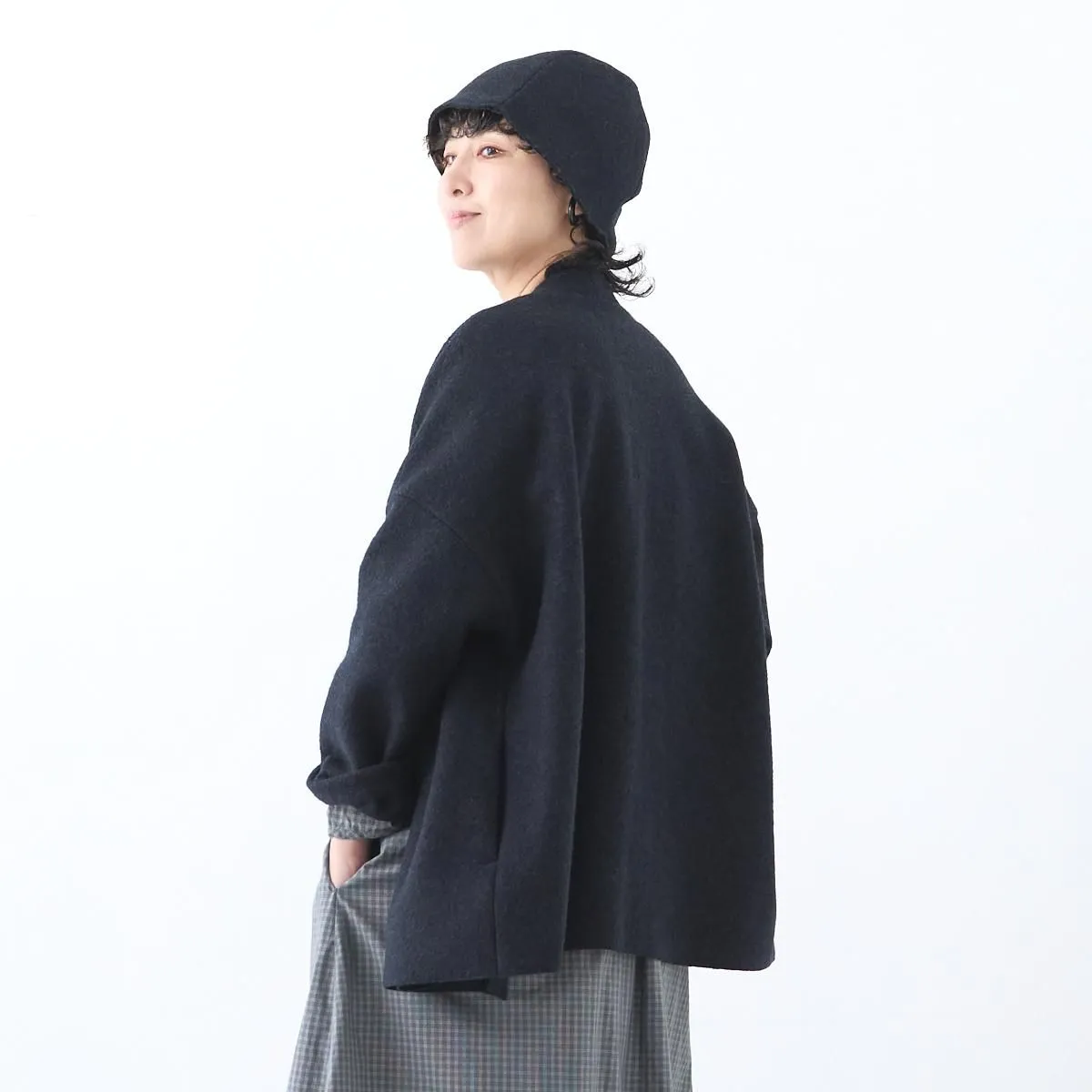 「気の張った"主役"としての服ではなく、ふだんのコーディネートがしやすくなる、お気に入りの"脇役"になるような服を作りたい。」との思いから2021年に立ち上げた女性ふたりのブランド「Yoli」。 軽くて柔らかい崇高なウール天竺を圧縮したジャケットです。 裏目使いをすることで特有の凹凸感が、ニット生地に独特の表情と適度なハリと膨らみを与えます。 パーツを極力減らし、一重仕立ての軽い着心地が特徴。 同素材のWide pantsやSkirtとのセットアップもおすすめです。 [取扱方法] ※手洗い:可 ・お水通ししますと多少の縮みがございます。 ・洗濯機の使用は、縮みや風合いを損ねる原因となります。また脱水は1分ほどに留めていただき、高頻度での洗濯はお控えください。 ・シーズンの終わりは信頼のおけるクリーニング店へお出しすることをおすすめします。 25AW Color:Beige, Brown, Charcoal gray Size: 1・3 1:Bust 126cm | Length 66cm | Sleeve 41.5cm 3:Bust 144cm | Length 80.5cm | Sleeve 46.5cm ※サイズはYoliオフィシャル表記となります ※サイズ計測の多少の誤差はご了承下さい。 material:100% Wool model:163cm(サイズ1,3) 取扱店 : dieci芝川ビル店