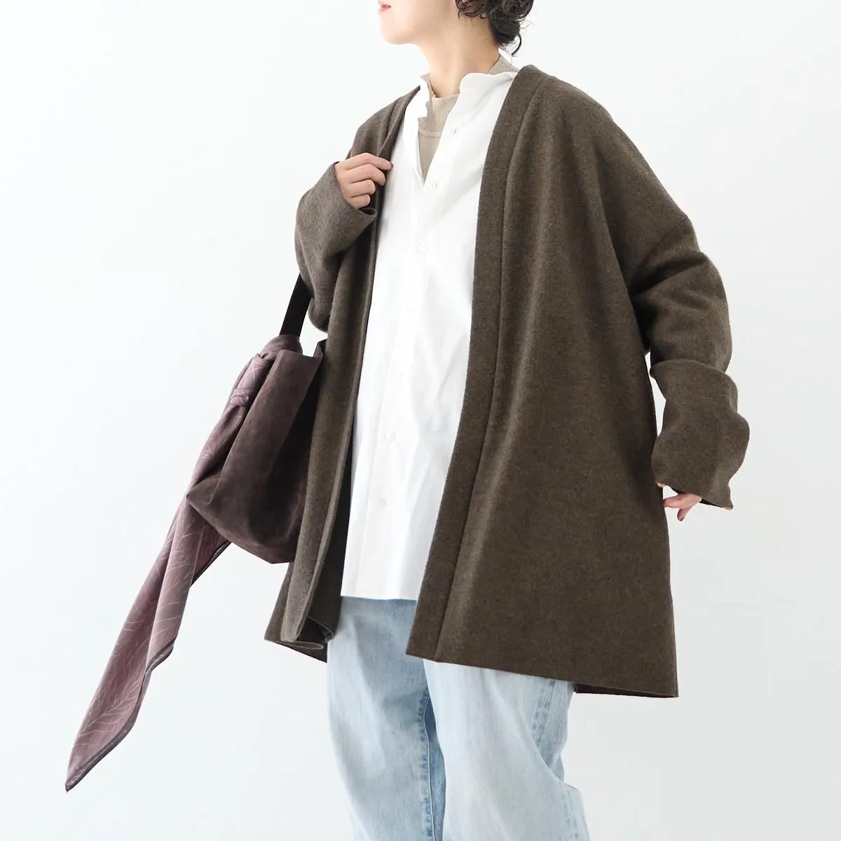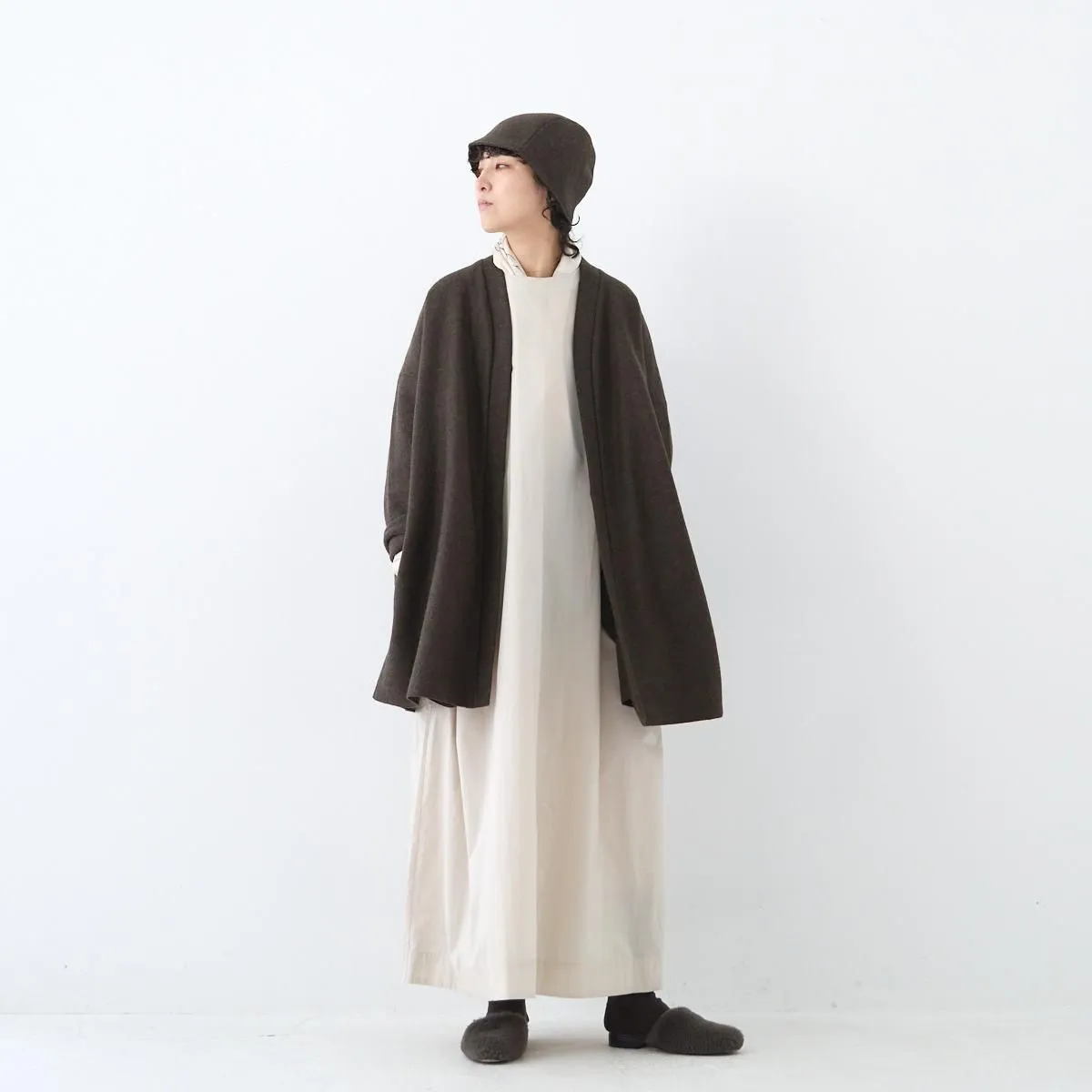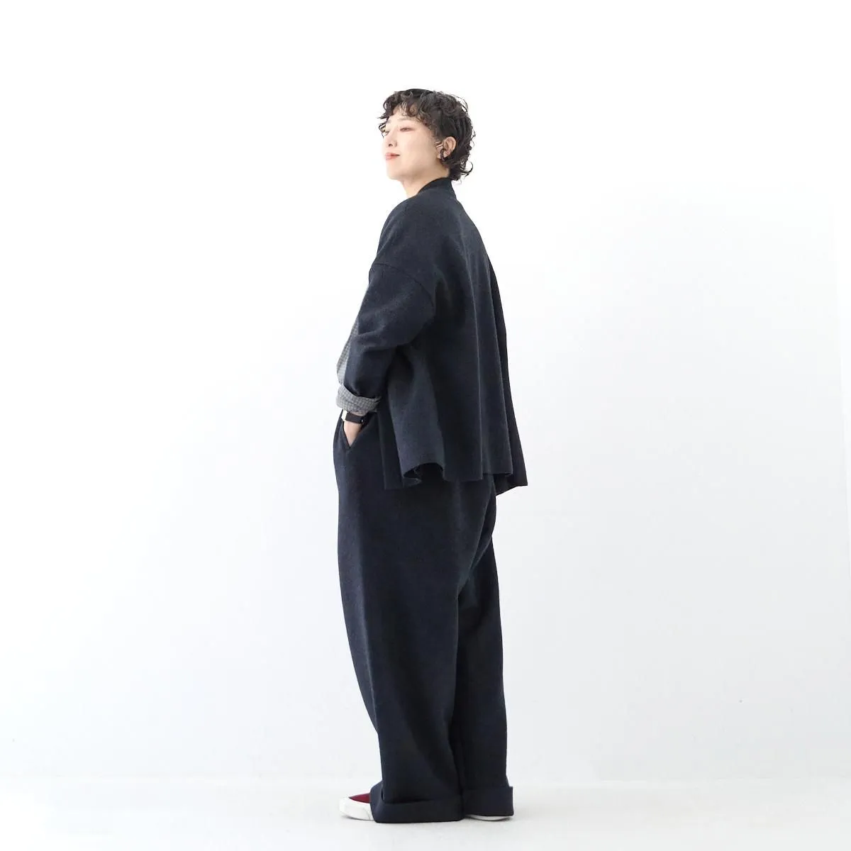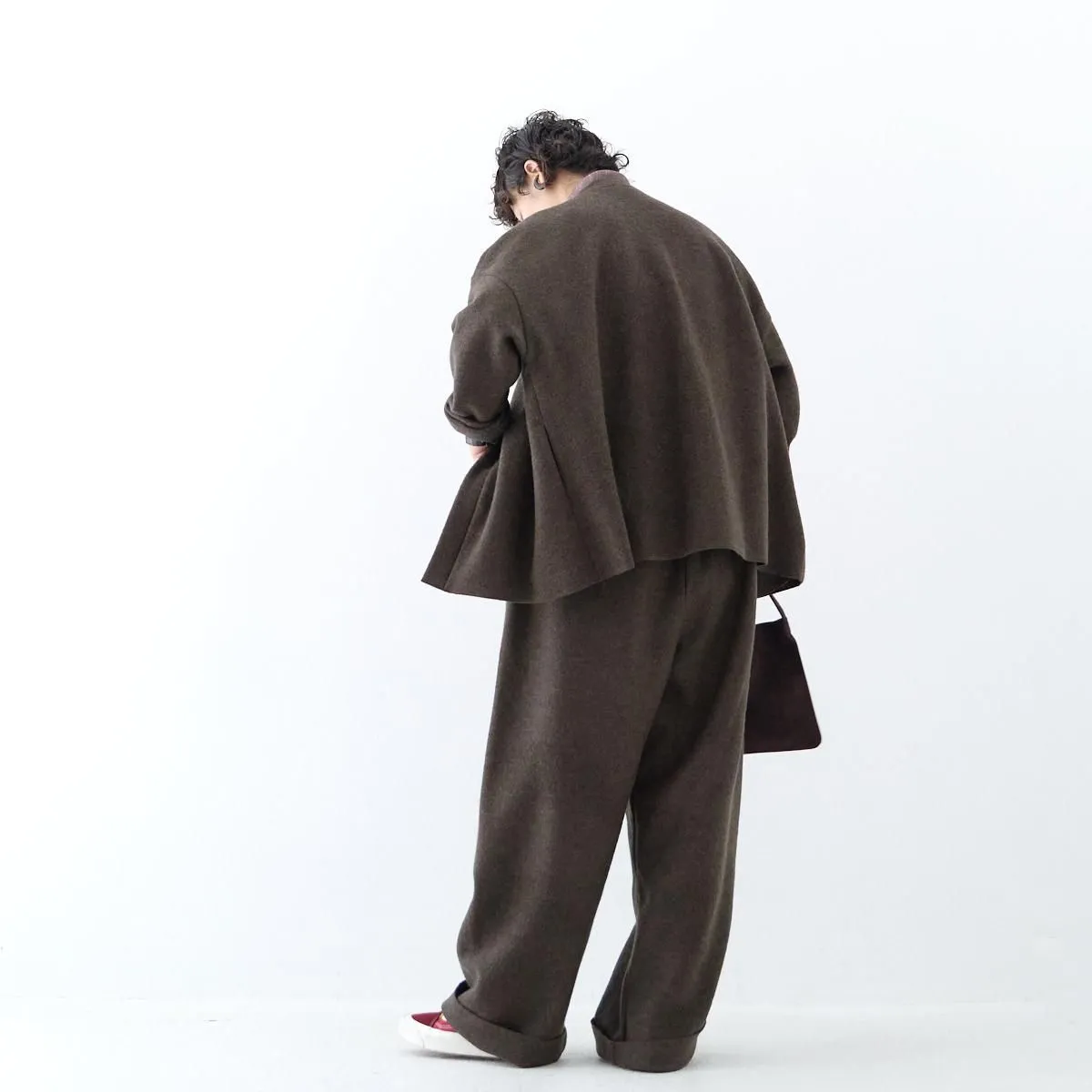 「気の張った"主役"としての服ではなく、ふだんのコーディネートがしやすくなる、お気に入りの"脇役"になるような服を作りたい。」との思いから2021年に立ち上げた女性ふたりのブランド「Yoli」。 軽くて柔らかい崇高なウール天竺を圧縮したジャケットです。 裏目使いをすることで特有の凹凸感が、ニット生地に独特の表情と適度なハリと膨らみを与えます。 パーツを極力減らし、一重仕立ての軽い着心地が特徴。 同素材のWide pantsやSkirtとのセットアップもおすすめです。 [取扱方法] ※手洗い:可 ・お水通ししますと多少の縮みがございます。 ・洗濯機の使用は、縮みや風合いを損ねる原因となります。また脱水は1分ほどに留めていただき、高頻度での洗濯はお控えください。 ・シーズンの終わりは信頼のおけるクリーニング店へお出しすることをおすすめします。 25AW Color:Beige, Brown, Charcoal gray Size: 1・3 1:Bust 126cm | Length 66cm | Sleeve 41.5cm 3:Bust 144cm | Length 80.5cm | Sleeve 46.5cm ※サイズはYoliオフィシャル表記となります ※サイズ計測の多少の誤差はご了承下さい。 material:100% Wool model:163cm(サイズ1,3) 取扱店 : dieci芝川ビル店
