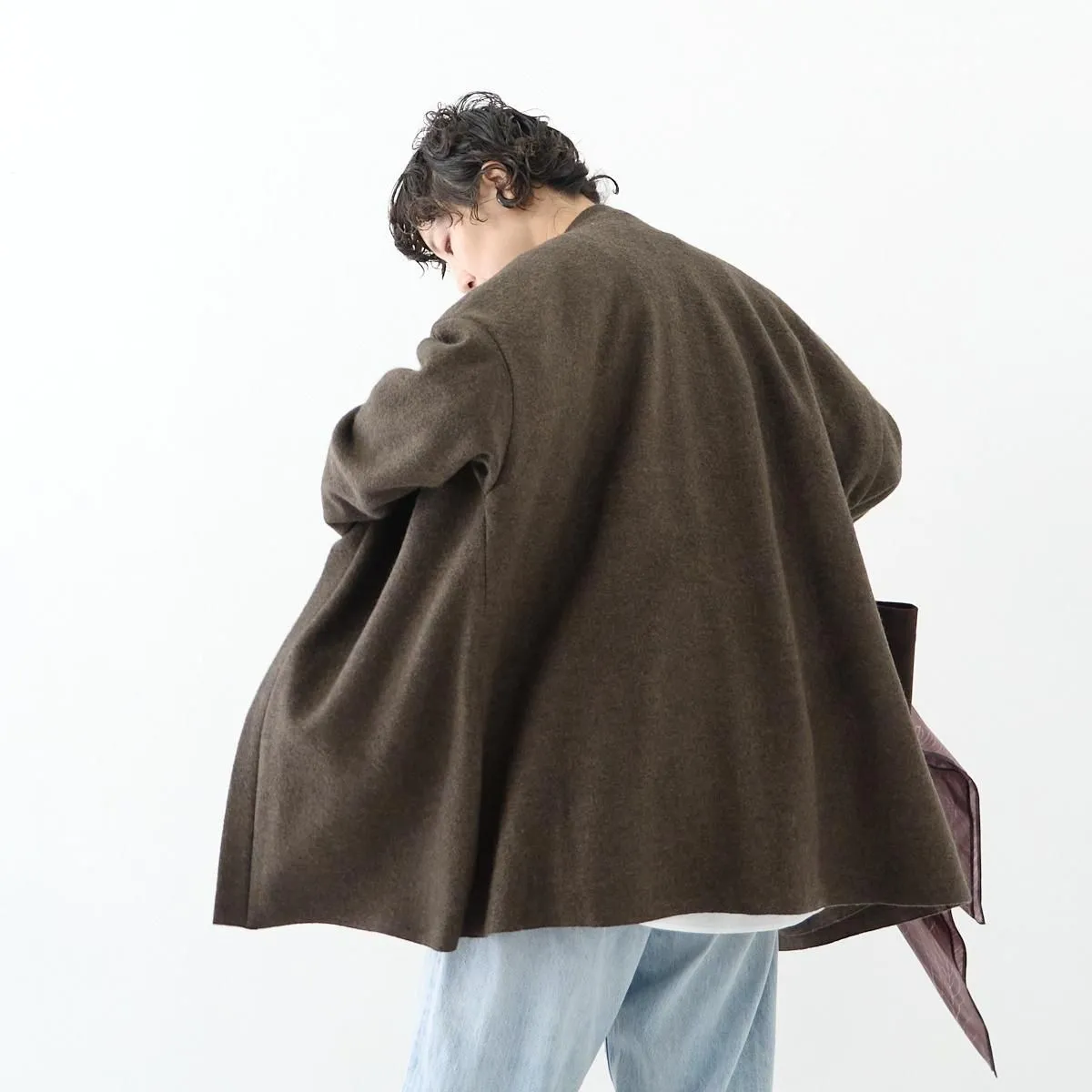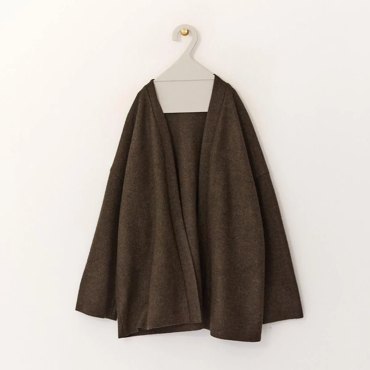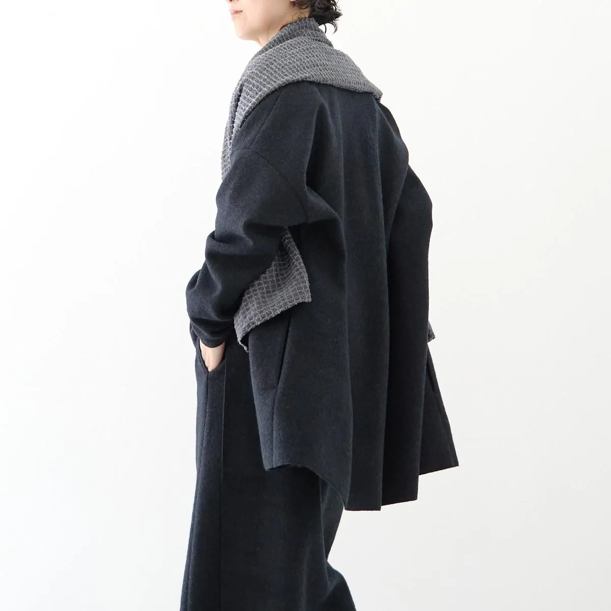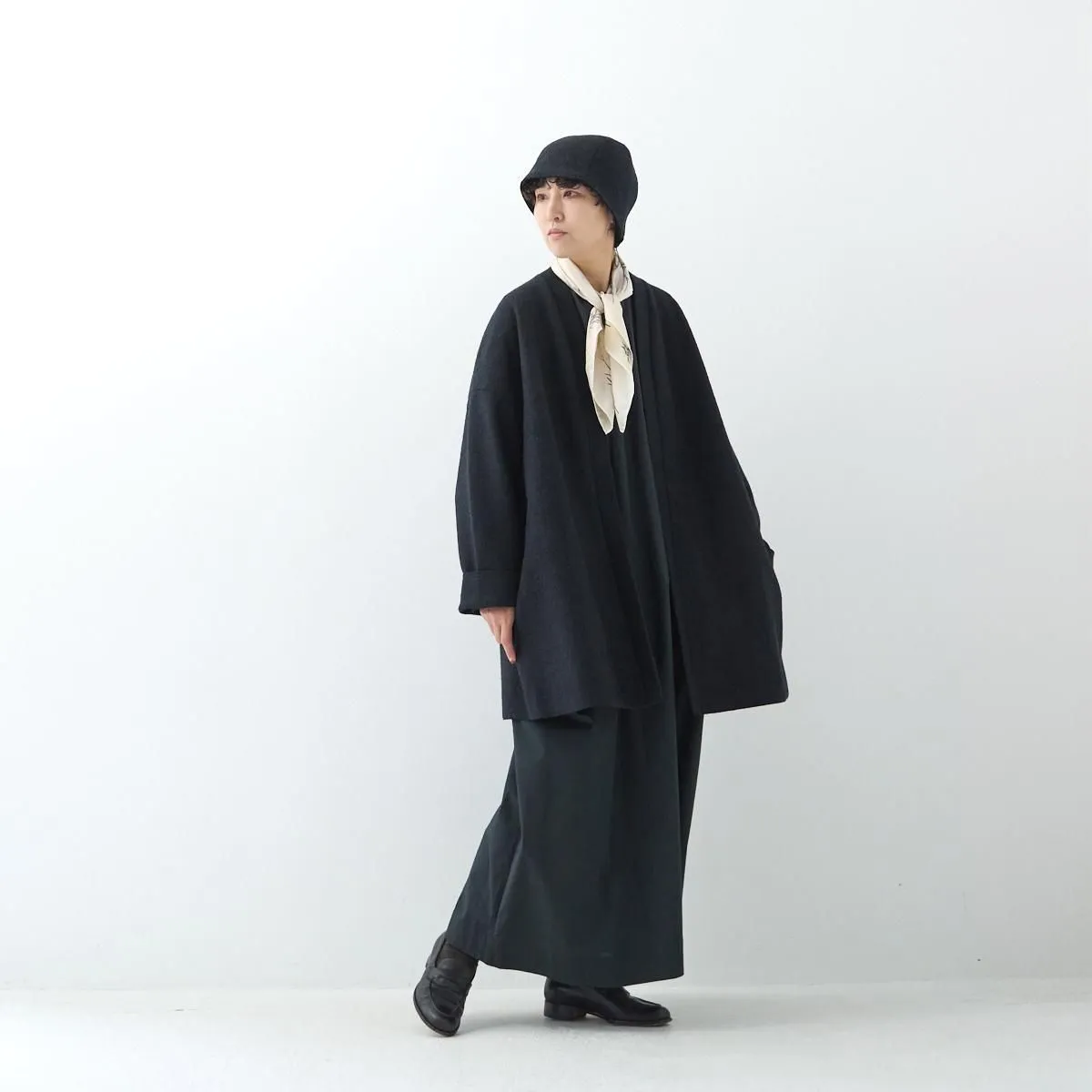 「気の張った"主役"としての服ではなく、ふだんのコーディネートがしやすくなる、お気に入りの"脇役"になるような服を作りたい。」との思いから2021年に立ち上げた女性ふたりのブランド「Yoli」。 軽くて柔らかい崇高なウール天竺を圧縮したジャケットです。 裏目使いをすることで特有の凹凸感が、ニット生地に独特の表情と適度なハリと膨らみを与えます。 パーツを極力減らし、一重仕立ての軽い着心地が特徴。 同素材のWide pantsやSkirtとのセットアップもおすすめです。 [取扱方法] ※手洗い:可 ・お水通ししますと多少の縮みがございます。 ・洗濯機の使用は、縮みや風合いを損ねる原因となります。また脱水は1分ほどに留めていただき、高頻度での洗濯はお控えください。 ・シーズンの終わりは信頼のおけるクリーニング店へお出しすることをおすすめします。 25AW Color:Beige, Brown, Charcoal gray Size: 1・3 1:Bust 126cm | Length 66cm | Sleeve 41.5cm 3:Bust 144cm | Length 80.5cm | Sleeve 46.5cm ※サイズはYoliオフィシャル表記となります ※サイズ計測の多少の誤差はご了承下さい。 material:100% Wool model:163cm(サイズ1,3) 取扱店 : dieci芝川ビル店