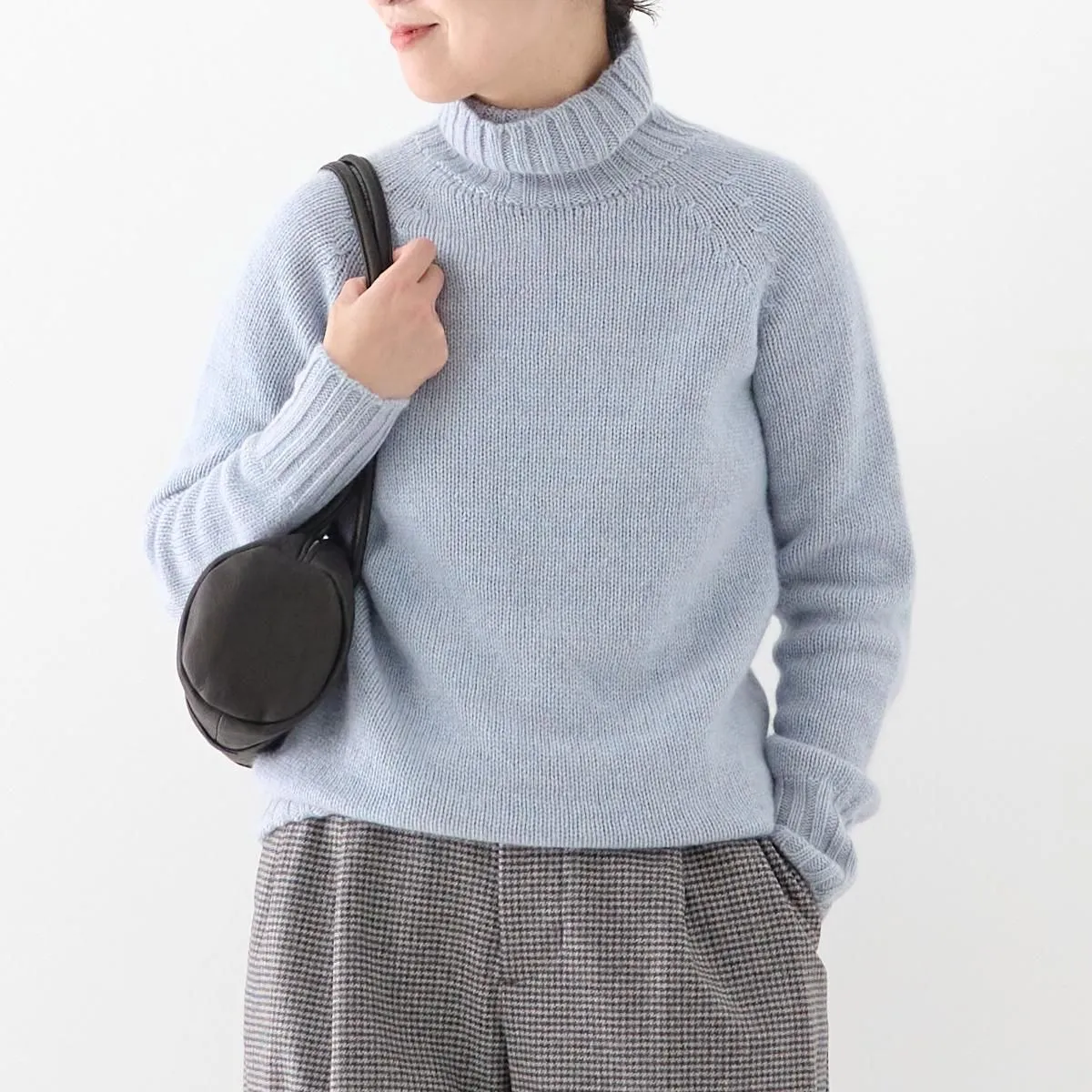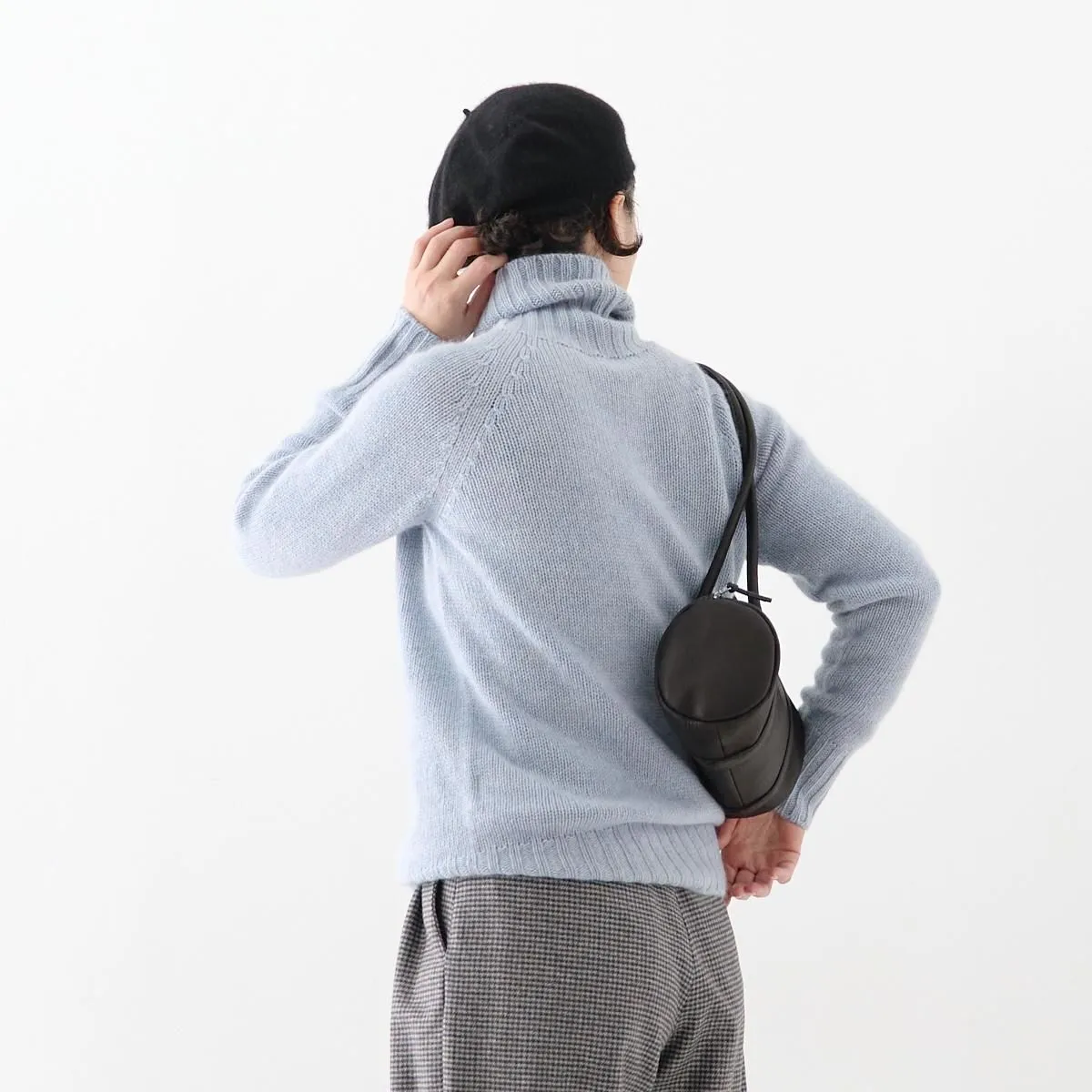 eleven 2ndは橋本靖代さんによる暮らしを意識したニットプロダクトです。20AWより上質なニットウエアやストールを展開しています。 こちらはヤクウールのタートルネックセーター。 ヤクはカシミヤにも匹敵する滑らかさで、肌に触れてもチクチク感が少なく、ふんわりぬくもりある風合いが特徴です。また摩擦に強く、丈夫で毛玉になりにくいので、取り扱いしやすいのも嬉しいポイント。空気を含んだようなソフトで軽い着心地が魅力です。 25AW size:M(one size) 着丈64cm/身幅45cm/裄丈77cm/ネック高さ15cm 参考寸法(平置き) ニットの為多少の差異がございます。 color:Forest blue・natural・Charcoal material: yak 100% model:163cm(Forest blue着用) 取扱い店舗…dieci芝川ビル店 size_chart