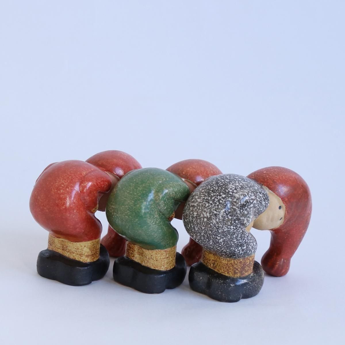 Lisa Larson(リサ・ラーソン)のクリスマスシリーズ。こちらはしゃがんでおじぎをしているTOMTEです。クリスマスを楽しく彩るTOMTE。他にもいろいろなポーズをしているTOMTEの仲間がいるので、並べて飾ってもよりいっそうかわいいです。 size : H7cm color : green / red / gray designed : Lisa Larson (KERAMIKSTUDION GUSTAVSBERG) ※こちらはハンドメイドのため、一点一点に 個体差がございます。なるべくご希望に添う ようお選びしますので、色合いなどでご希望 がある場合は備考欄にお願い致します。 ※手袋のお色は個体差がございます。 取扱店舗…dieci天神橋