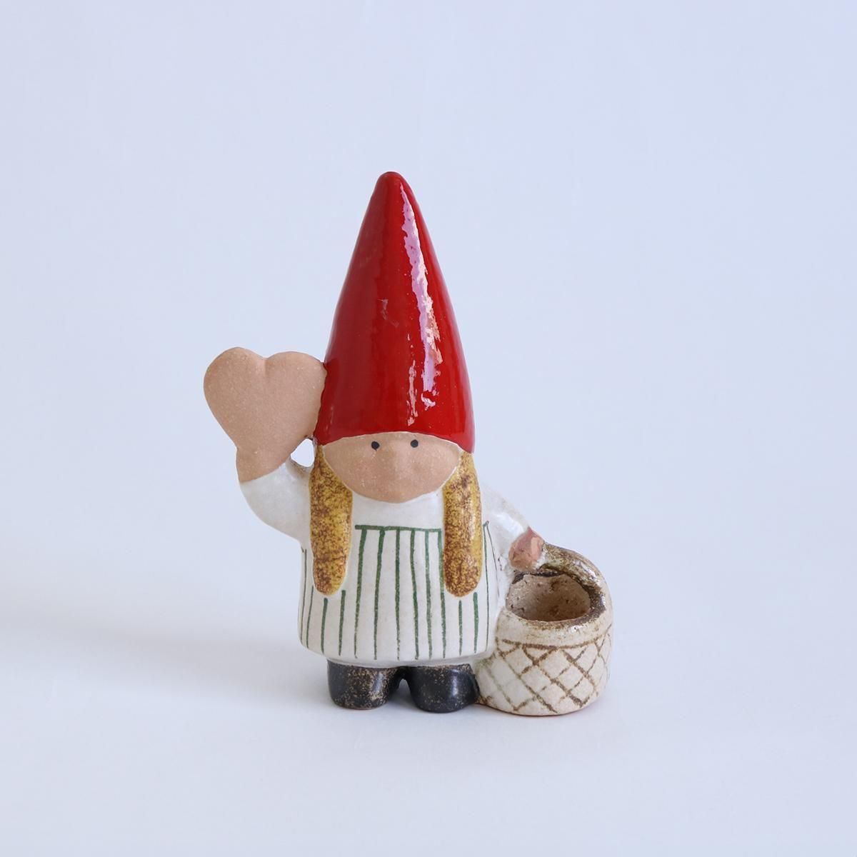 Lisa Larson(リサ・ラーソン)のクリスマスシリーズ。にっこりと、ハートとバスケットを持ったお姉さんと、ネコを抱えた妹ちゃん。こちらのTOMTEファミリーには、お父さん・お母さん・4人の子供たちがいます。家族みんなで揃えたくなりますね。 GIRL WHITH CATには約1cmほどの穴があいているので、細いろうそくを立てて、キャンドルホルダーとしてもお使いいただけます。 size : GIRL WHITH BASKET H14cm GIRL WHITH CAT H13.5cm designed : Lisa Larson (KERAMIKSTUDION GUSTAVSBERG) ※こちらはハンドメイドのため、一点一点に 個体差がございます。なるべくご希望に添う ようお選びしますので、色合いなどでご希望 がある場合は備考欄にお願い致します。 ※手袋のお色は個体差がございます。 取扱店舗…dieci天神橋