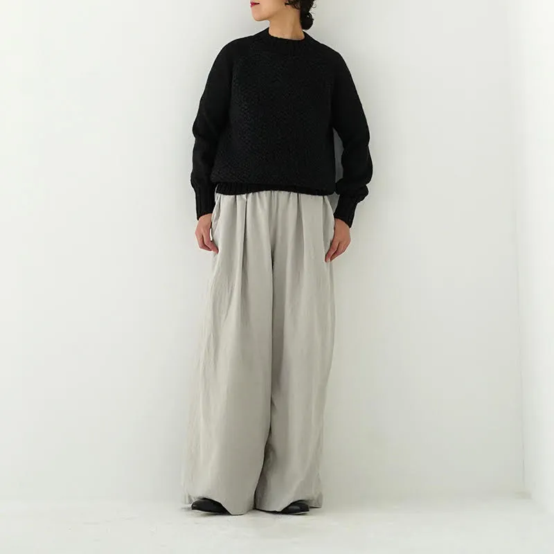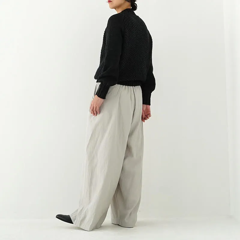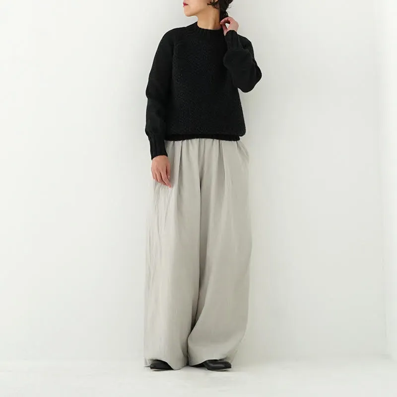 TORICI(トリチ)はデザイナー鳥飼さんによる、手触りの良さ、軽さ、強さ、そして色彩の美しさ全てを満たす高品質な糸を世界中から厳選し日本の職人の手仕事で一着一着丁寧に編み上げる高いクオリティとシンプルなデザインで長く使える時代に左右されない「定番」としてのニットウェアブランドです。 イタリアの上質な毛糸を使用した、鹿子編みが美しく目を惹くニットです。 全体的にややコンパクトなシルエット、ラグラン仕様に袖口の膨らみバランスがとても素敵です。 着るほどに愛着も増していくTORICIのハンドニットです。 24AW イタリア糸使用 日本製 手編み size: F 参考寸法(平置き) 1点1点個体差がございます。 着丈 約54cm 身幅 約48cm 裄丈 約76cm color: グレージュ,ペールピンク material: ウール100% model:163cm 取扱い店舗…dieci芝川ビル店 size_chart