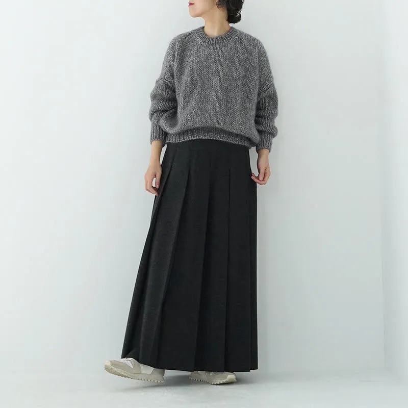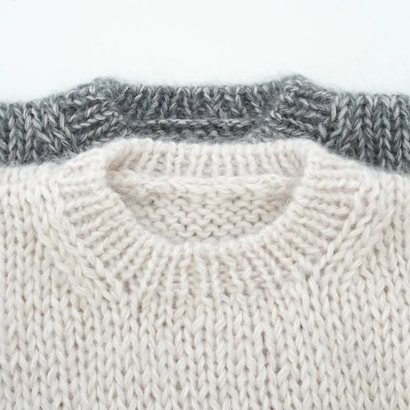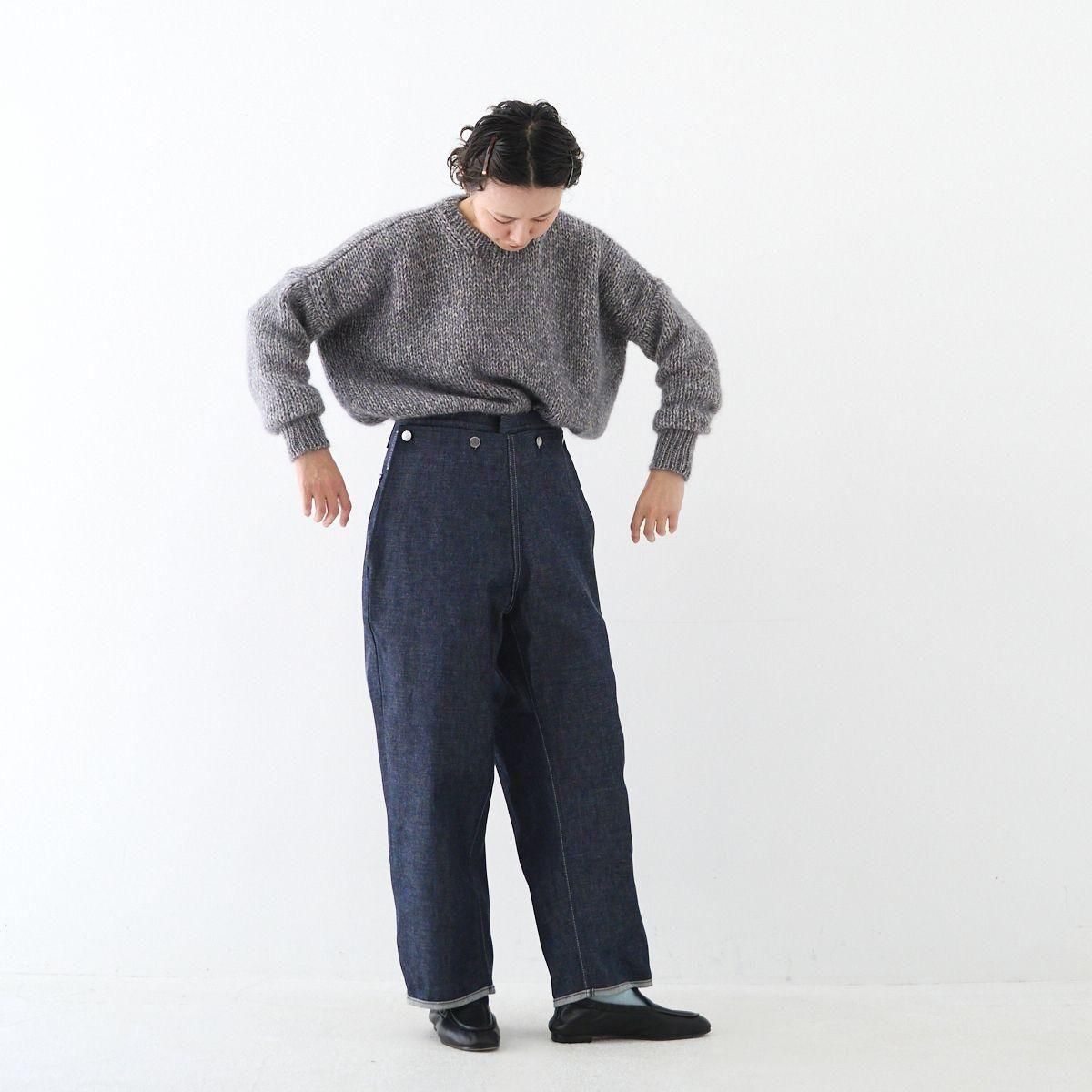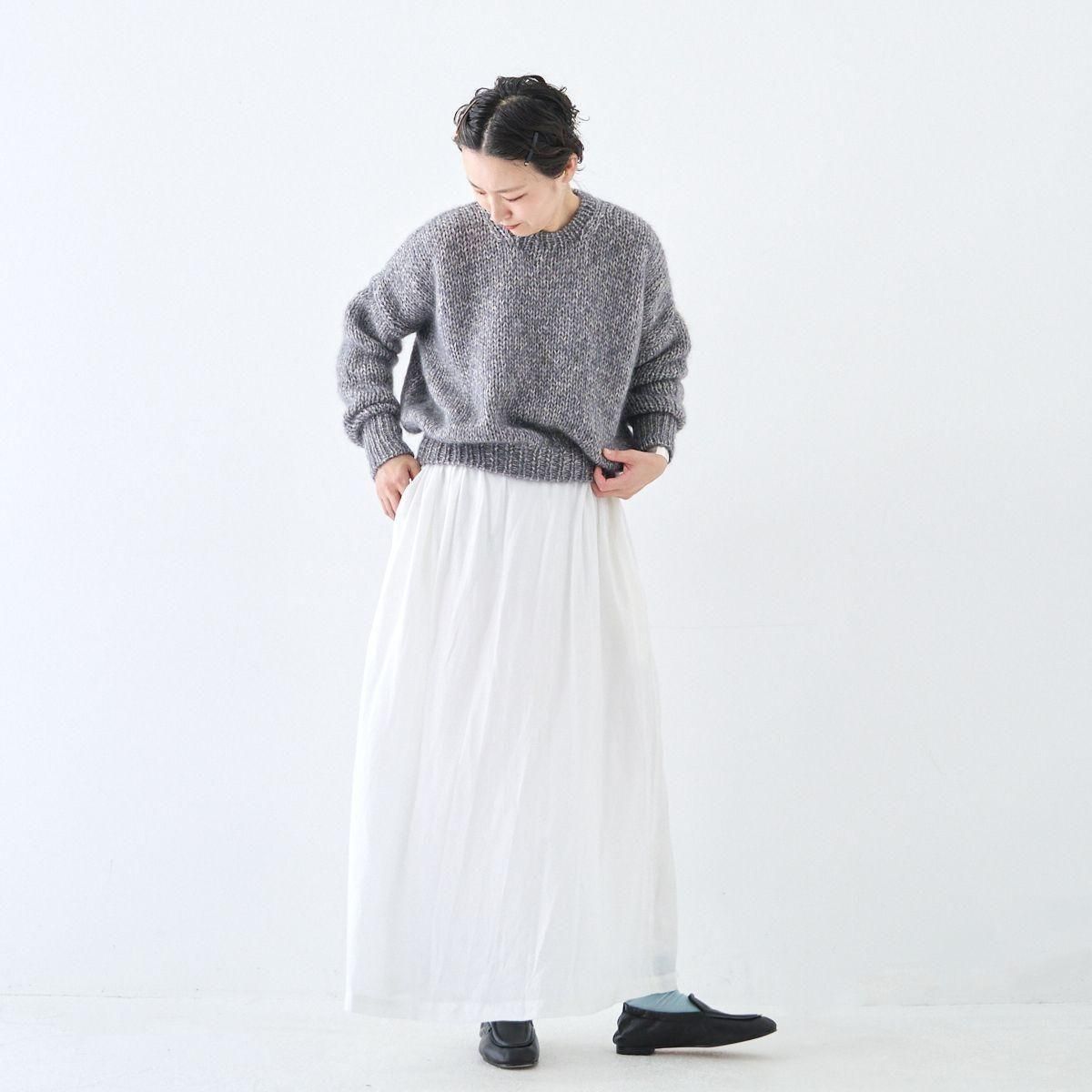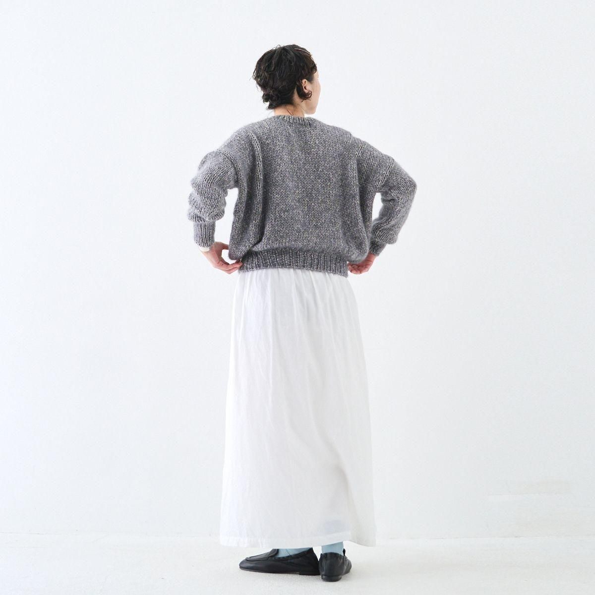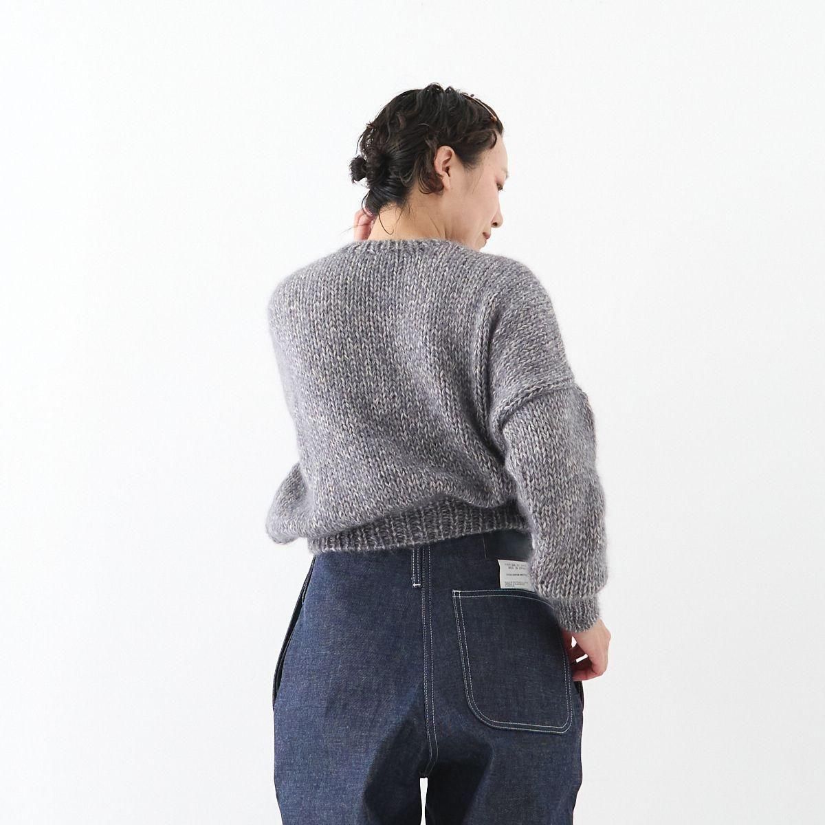 TORICI レベルセーター イタリア糸使用 日本製 手編み スーパーキッドモヘヤとファインメリノウールにシルクをミックスした発色の良い糸を使用し、手編みでふっくら編み上げられた"レベルセーター"。 90年代をイメージし作られていて、どこかレトロな雰囲気が漂う仕上がりに。ウエストが絞られていてパンツ、スカート問わず相性の良いセーターです。 手編み商品の為、風合いやサイズ感などに個体差がございます。ご理解の上でご購入くださいませ。 size: F 参考寸法(平置き) 1点1点個体差がございます。 着丈 約51cm 身幅 約65cm 裄丈 約85cm color: グレー material: ウール55%/モヘア32%/シルク13% 取扱い店舗…dieci芝川ビル店 ------------------------------------------------------------------------------- TORICI(トリチ)は手触りの良さ、軽さ、強さ、そして色彩の美しさ 全てを満たす高品質な糸を世界中から厳選し日本の職人の手仕事で一着一着丁寧に編み上げる高いクオリティとシンプルなデザインで長く使える時代に左右されない「定番」としてのニットウェアブランドです。