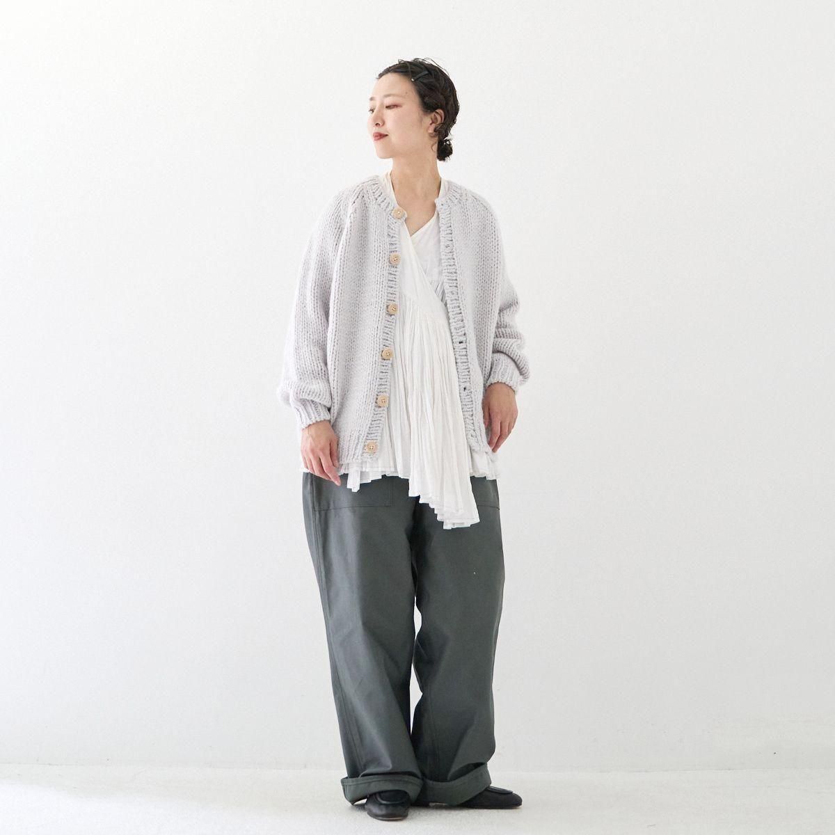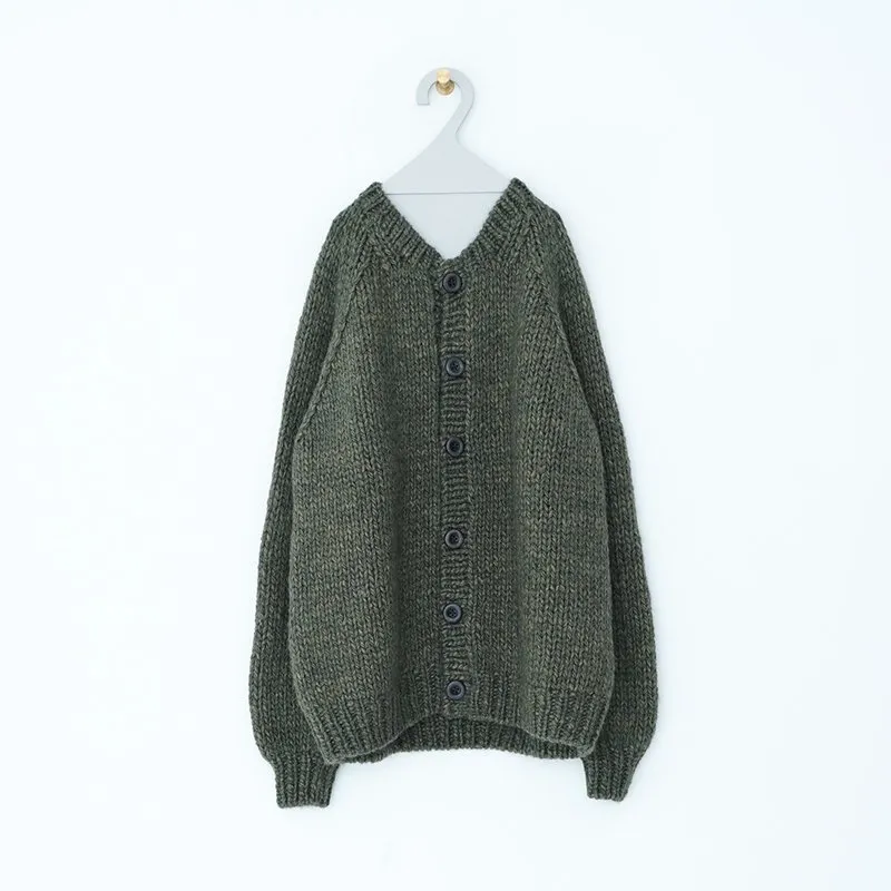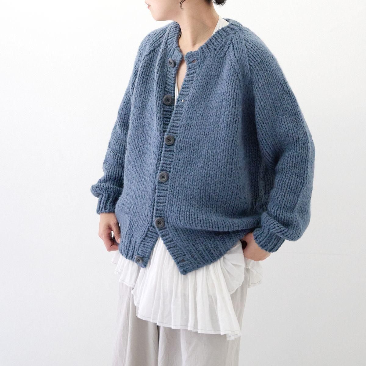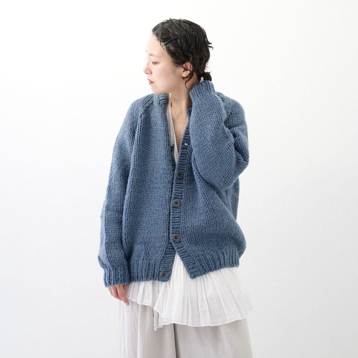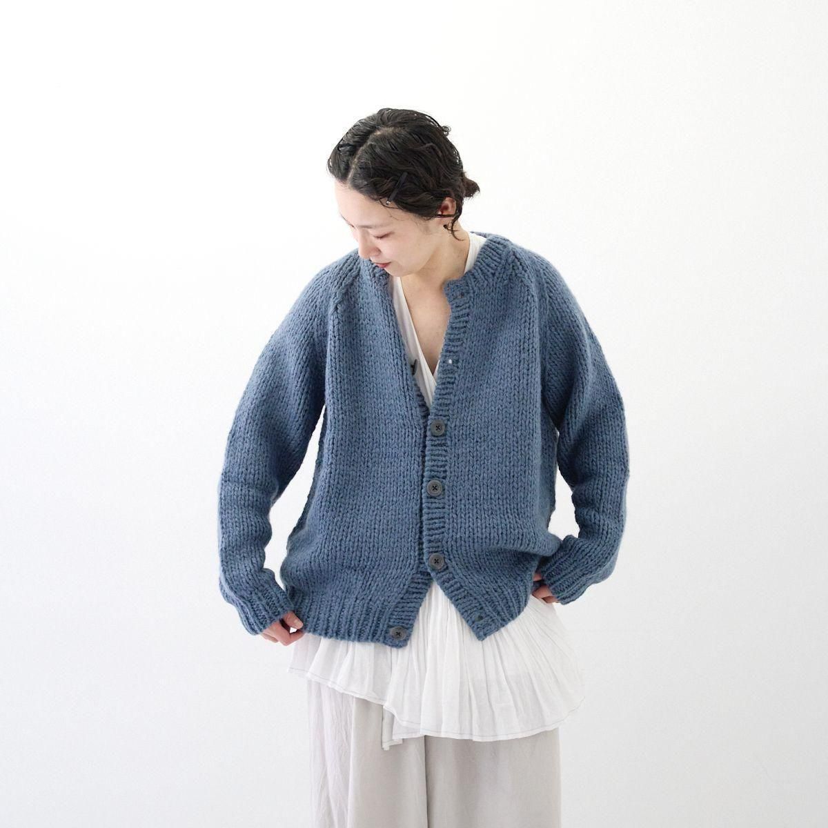TORICI AIRカーディガン イタリア糸使用 日本製 手編み 軽さと発色の良さそして柔らかい肌触りが特徴のニットです。イタリアの撚糸の得意な紡績会社の糸を使用し、綺麗な発色と光沢、糸の膨らみがあります。カジュアルなシルエットですが、糸のおかげで、どこか上品に見せてくれます。 軽さを一番に考え、糸によりがかかっていない糸を使用しているため、毛羽が立ち摩擦により毛玉ができやすくなっています。毛玉もこのボリュームのニットのチャームポイントだと思いますが、気になった場合は毛玉取り機などで処理ください。 毛玉ができることで暖かさが増し、愛着も増していくTORICIオールハンドニットです。 手編み商品の為、風合いやサイズ感などに個体差がございます。ご理解の上でご購入くださいませ。 size: F(UNISEX) 参考寸法(平置き) 1点1点個体差がございます。 裄丈 約80cm 身幅 約58〜63cm 着丈 約62〜65cm color: ice grey,light grey,blue grey,khaki material: ウール50%/アルパカ25%/アクリル25% 取扱い店舗…dieci芝川ビル店 ----------------------------------------------------------------------------- TORICI(トリチ)は手触りの良さ、軽さ、強さ、そして色彩の美しさ 全てを満たす高品質な糸を世界中から厳選し日本の職人の手仕事で一着一着丁寧に編み上げる高いクオリティとシンプルなデザインで長く使える時代に左右されない「定番」としてのニットウェアブランドです。
