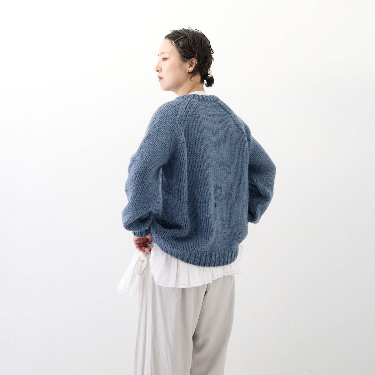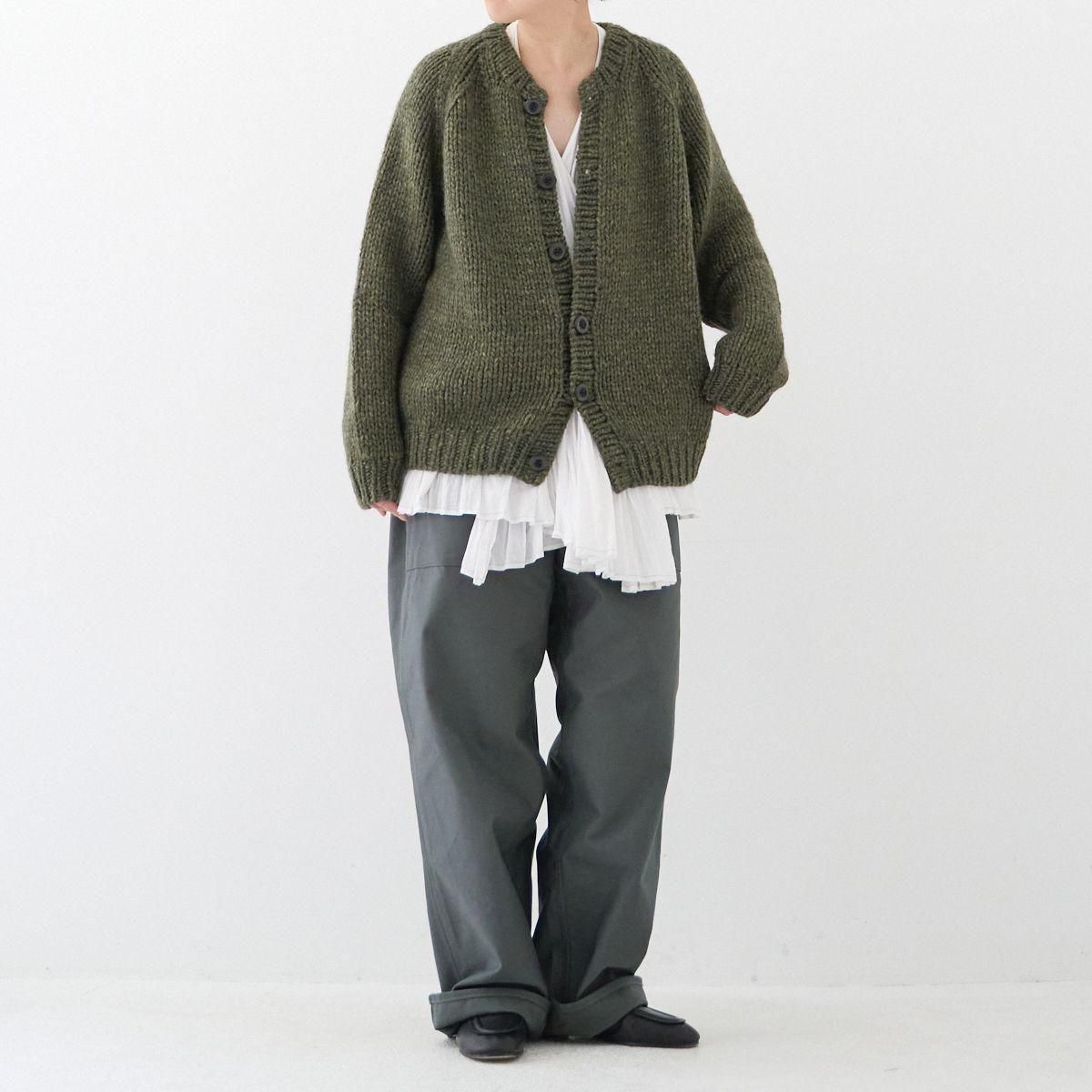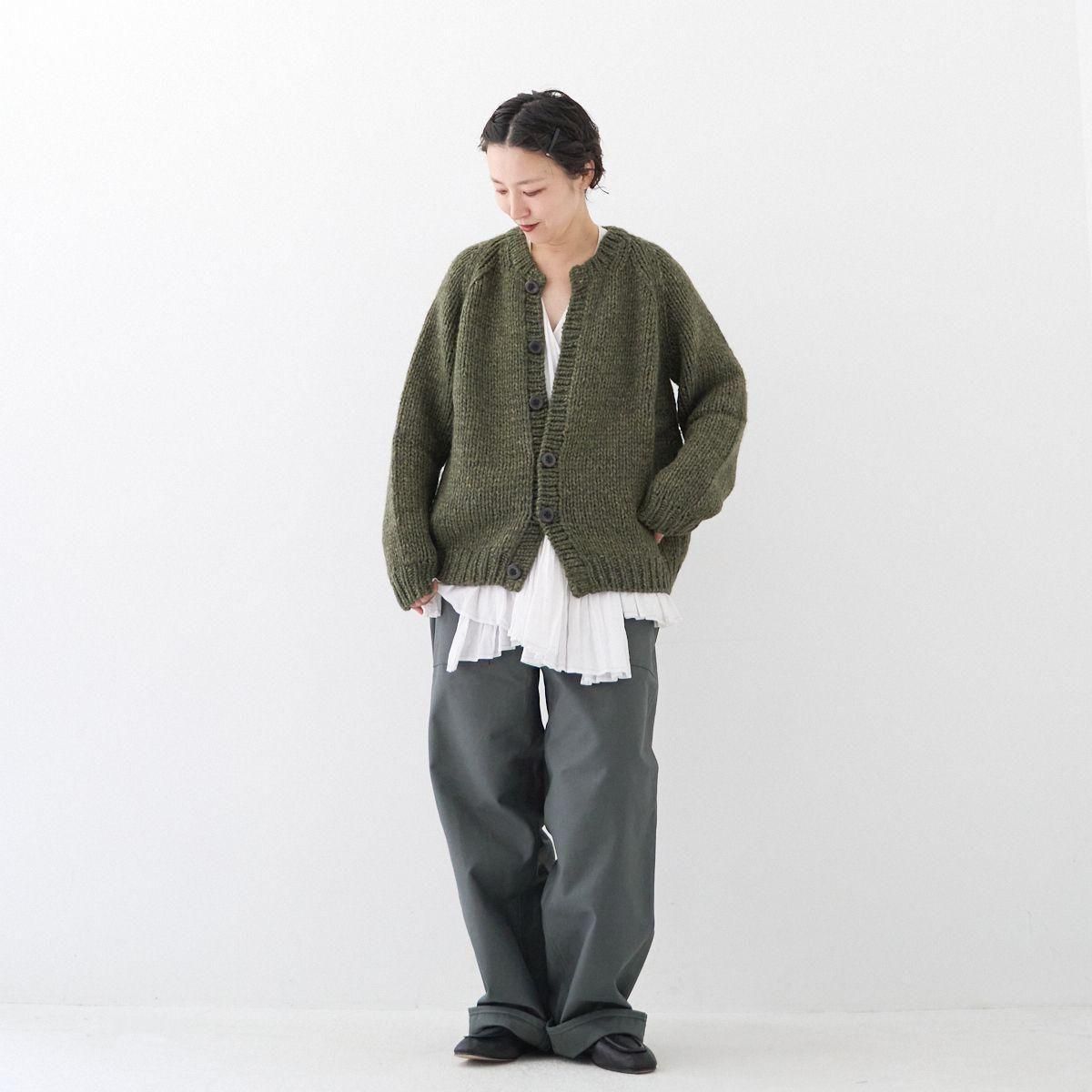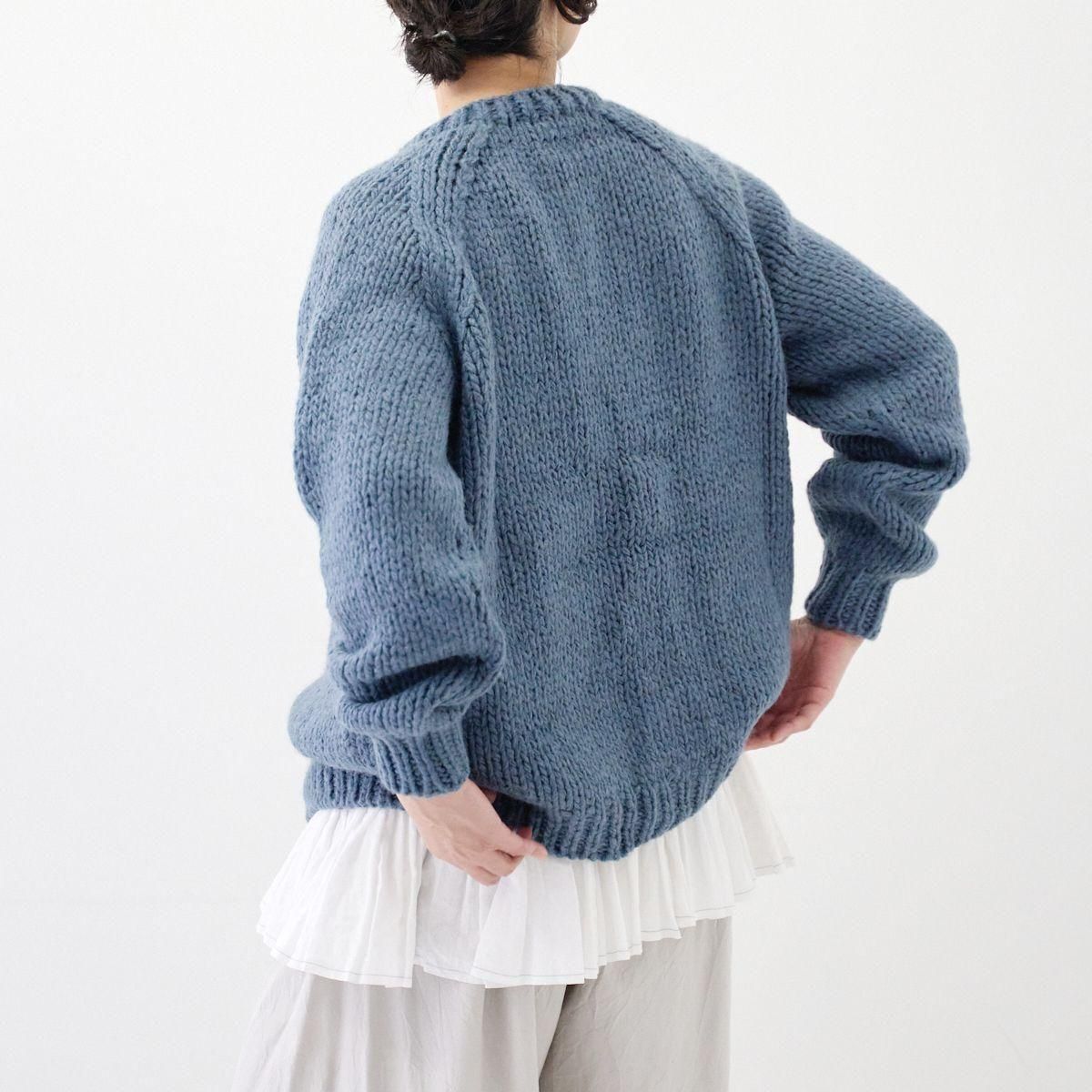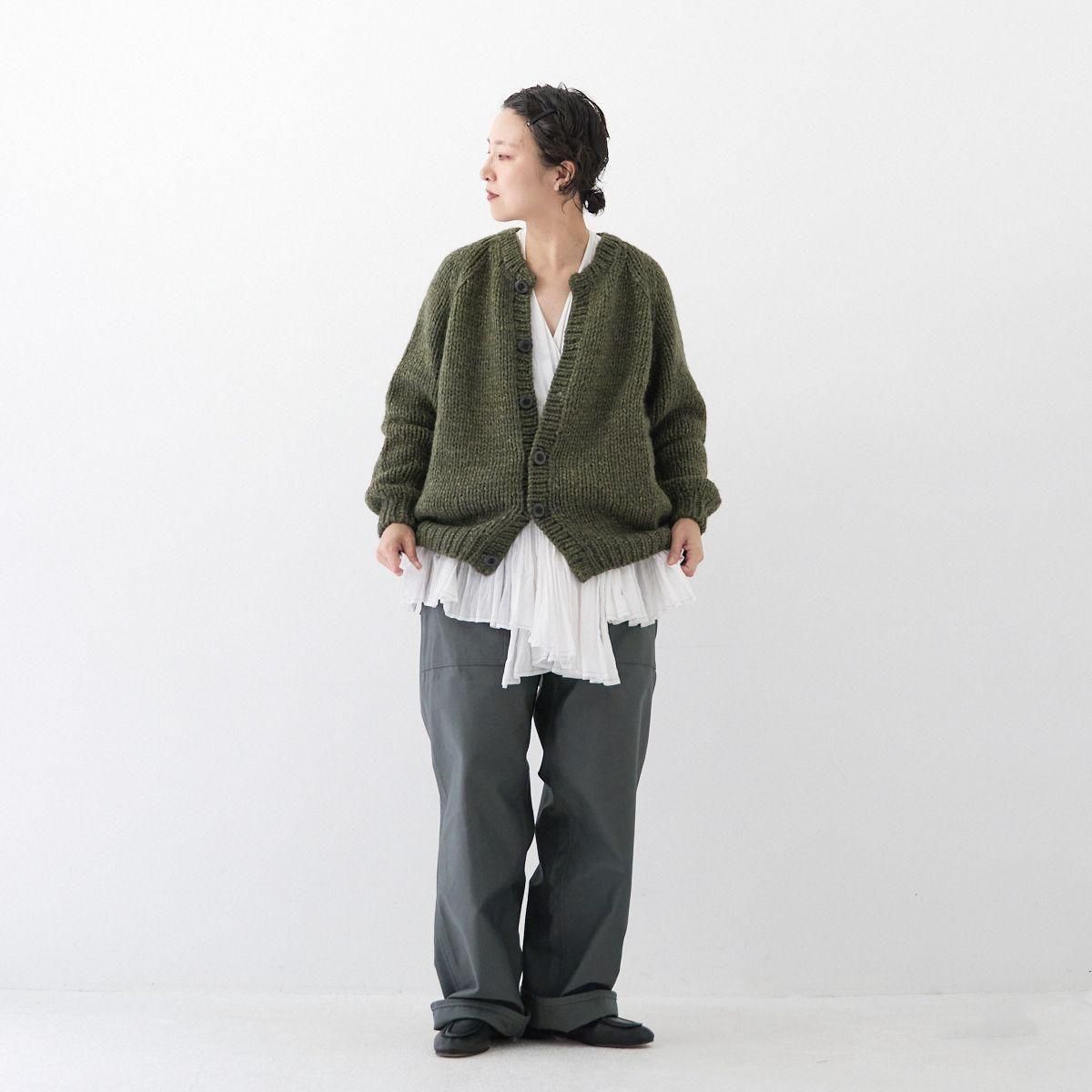 TORICI AIRカーディガン イタリア糸使用 日本製 手編み 軽さと発色の良さそして柔らかい肌触りが特徴のニットです。イタリアの撚糸の得意な紡績会社の糸を使用し、綺麗な発色と光沢、糸の膨らみがあります。カジュアルなシルエットですが、糸のおかげで、どこか上品に見せてくれます。 軽さを一番に考え、糸によりがかかっていない糸を使用しているため、毛羽が立ち摩擦により毛玉ができやすくなっています。毛玉もこのボリュームのニットのチャームポイントだと思いますが、気になった場合は毛玉取り機などで処理ください。 毛玉ができることで暖かさが増し、愛着も増していくTORICIオールハンドニットです。 手編み商品の為、風合いやサイズ感などに個体差がございます。ご理解の上でご購入くださいませ。 size: F(UNISEX) 参考寸法(平置き) 1点1点個体差がございます。 裄丈 約80cm 身幅 約58〜63cm 着丈 約62〜65cm color: ice grey,light grey,blue grey,khaki material: ウール50%/アルパカ25%/アクリル25% 取扱い店舗…dieci芝川ビル店 ----------------------------------------------------------------------------- TORICI(トリチ)は手触りの良さ、軽さ、強さ、そして色彩の美しさ 全てを満たす高品質な糸を世界中から厳選し日本の職人の手仕事で一着一着丁寧に編み上げる高いクオリティとシンプルなデザインで長く使える時代に左右されない「定番」としてのニットウェアブランドです。