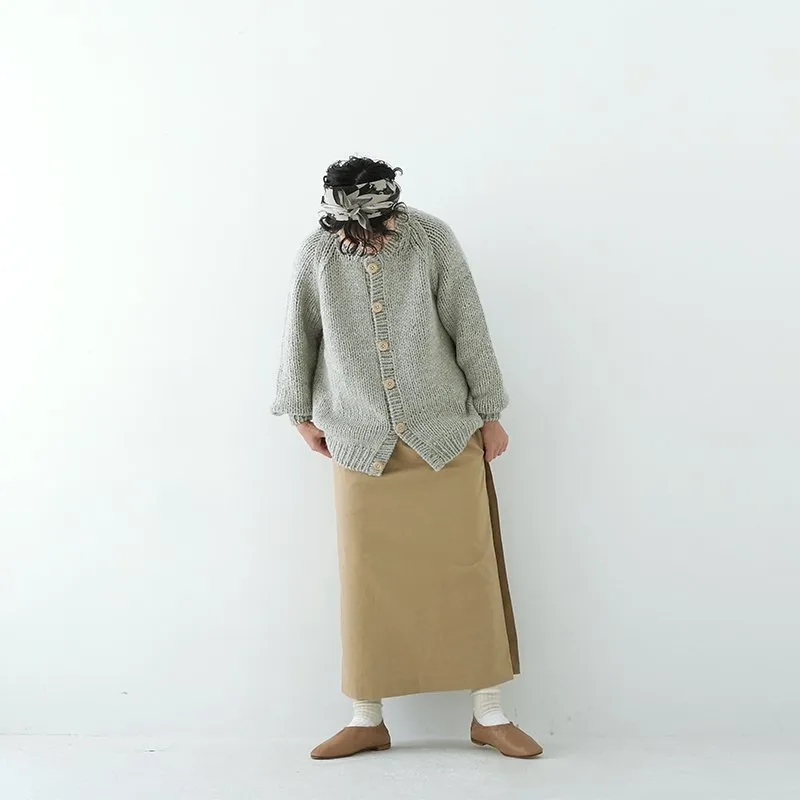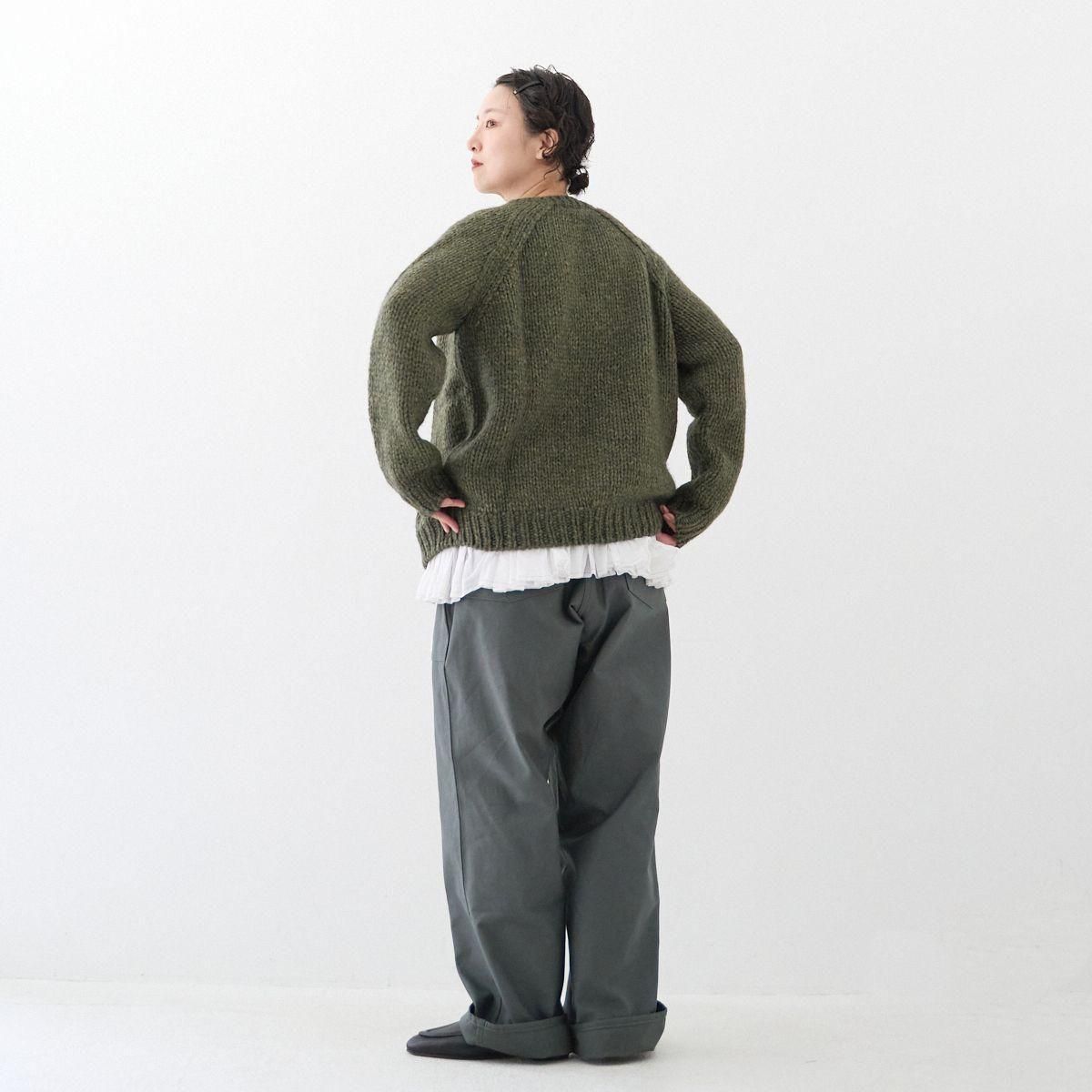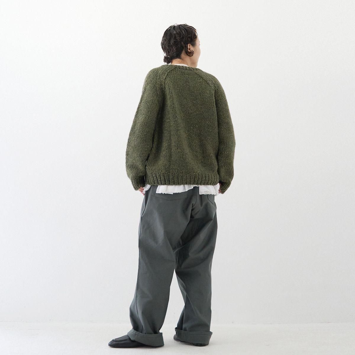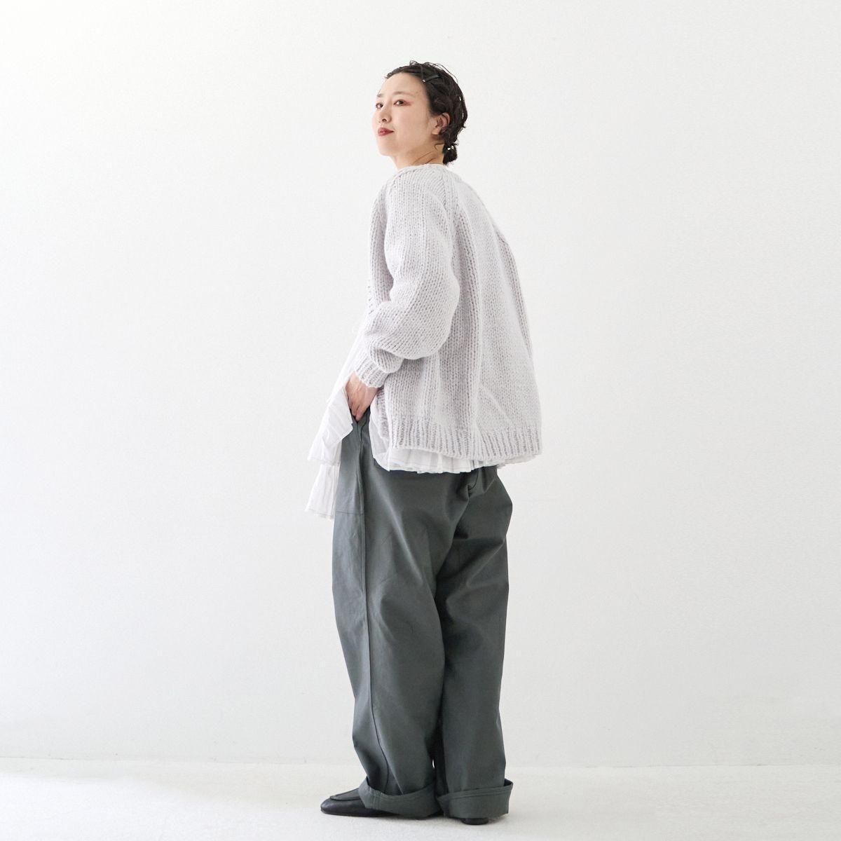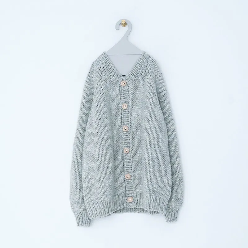 TORICI AIRカーディガン イタリア糸使用 日本製 手編み 軽さと発色の良さそして柔らかい肌触りが特徴のニットです。イタリアの撚糸の得意な紡績会社の糸を使用し、綺麗な発色と光沢、糸の膨らみがあります。カジュアルなシルエットですが、糸のおかげで、どこか上品に見せてくれます。 軽さを一番に考え、糸によりがかかっていない糸を使用しているため、毛羽が立ち摩擦により毛玉ができやすくなっています。毛玉もこのボリュームのニットのチャームポイントだと思いますが、気になった場合は毛玉取り機などで処理ください。 毛玉ができることで暖かさが増し、愛着も増していくTORICIオールハンドニットです。 手編み商品の為、風合いやサイズ感などに個体差がございます。ご理解の上でご購入くださいませ。 size: F(UNISEX) 参考寸法(平置き) 1点1点個体差がございます。 裄丈 約80cm 身幅 約58〜63cm 着丈 約62〜65cm color: ice grey,light grey,blue grey,khaki material: ウール50%/アルパカ25%/アクリル25% 取扱い店舗…dieci芝川ビル店 ----------------------------------------------------------------------------- TORICI(トリチ)は手触りの良さ、軽さ、強さ、そして色彩の美しさ 全てを満たす高品質な糸を世界中から厳選し日本の職人の手仕事で一着一着丁寧に編み上げる高いクオリティとシンプルなデザインで長く使える時代に左右されない「定番」としてのニットウェアブランドです。