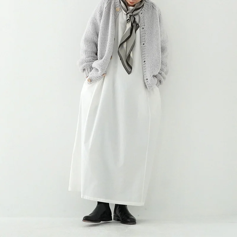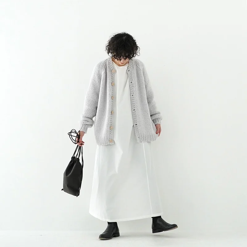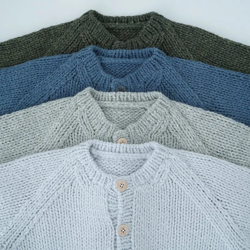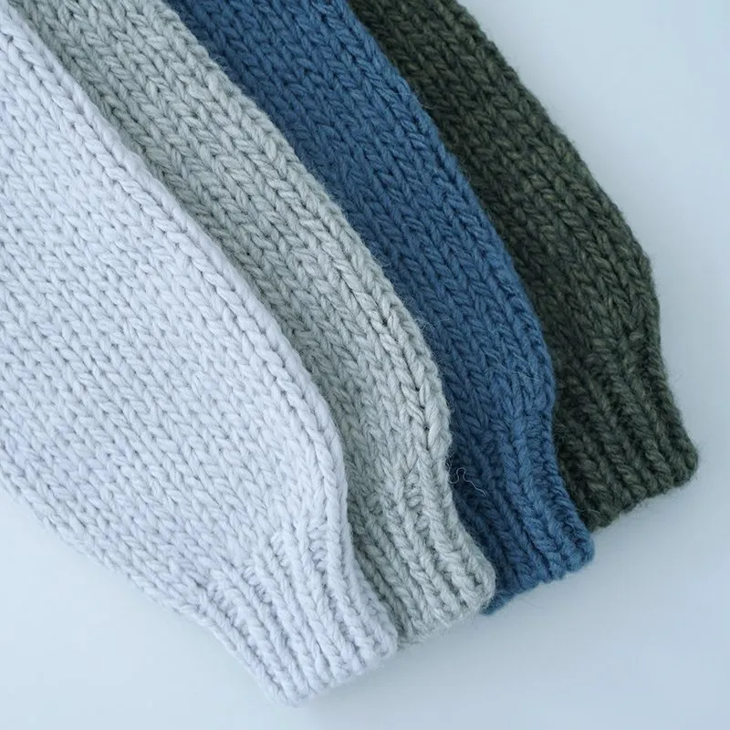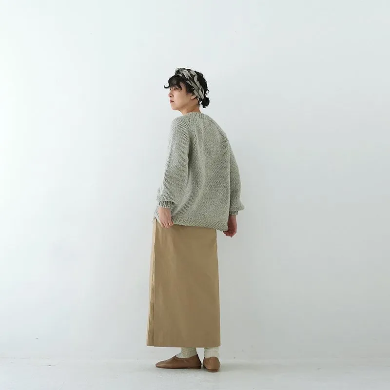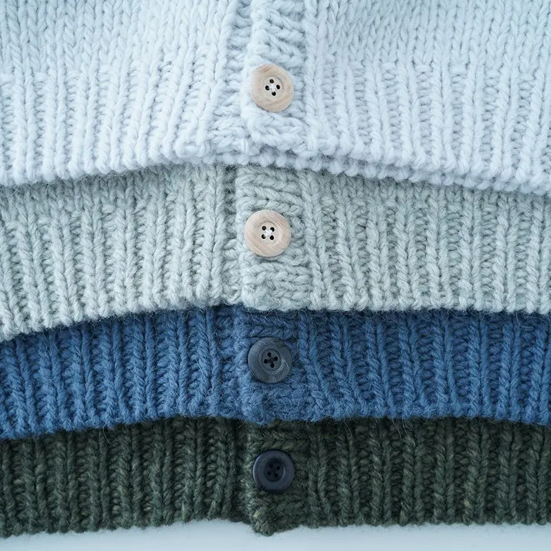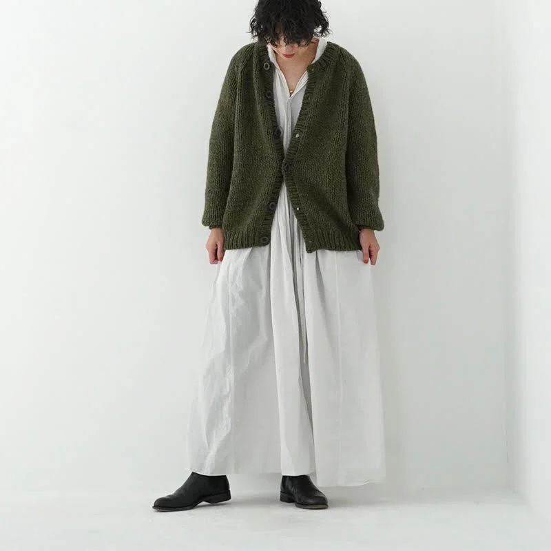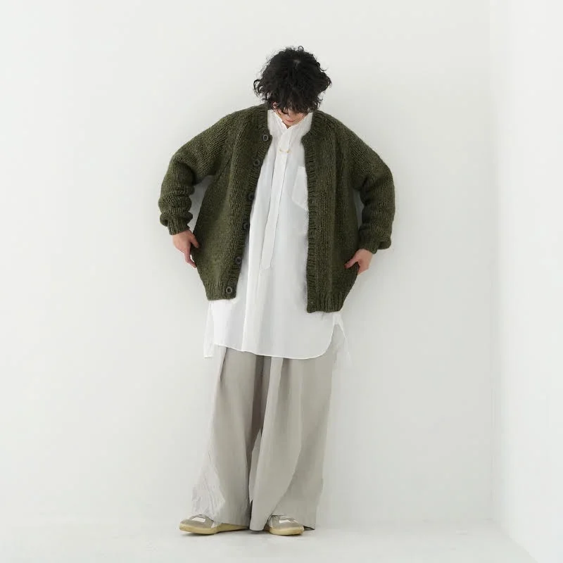 TORICI AIRカーディガン イタリア糸使用 日本製 手編み 軽さと発色の良さそして柔らかい肌触りが特徴のニットです。イタリアの撚糸の得意な紡績会社の糸を使用し、綺麗な発色と光沢、糸の膨らみがあります。カジュアルなシルエットですが、糸のおかげで、どこか上品に見せてくれます。 軽さを一番に考え、糸によりがかかっていない糸を使用しているため、毛羽が立ち摩擦により毛玉ができやすくなっています。毛玉もこのボリュームのニットのチャームポイントだと思いますが、気になった場合は毛玉取り機などで処理ください。 毛玉ができることで暖かさが増し、愛着も増していくTORICIオールハンドニットです。 手編み商品の為、風合いやサイズ感などに個体差がございます。ご理解の上でご購入くださいませ。 size: F(UNISEX) 参考寸法(平置き) 1点1点個体差がございます。 裄丈 約80cm 身幅 約58〜63cm 着丈 約62〜65cm color: ice grey,light grey,blue grey,khaki material: ウール50%/アルパカ25%/アクリル25% 取扱い店舗…dieci芝川ビル店 ----------------------------------------------------------------------------- TORICI(トリチ)は手触りの良さ、軽さ、強さ、そして色彩の美しさ 全てを満たす高品質な糸を世界中から厳選し日本の職人の手仕事で一着一着丁寧に編み上げる高いクオリティとシンプルなデザインで長く使える時代に左右されない「定番」としてのニットウェアブランドです。
