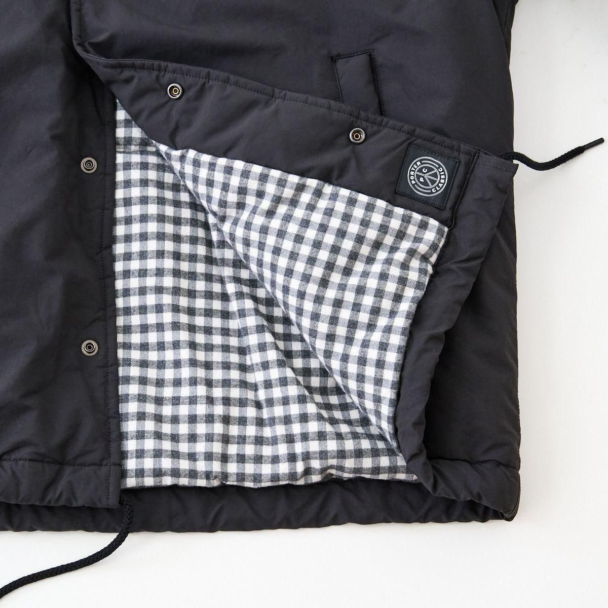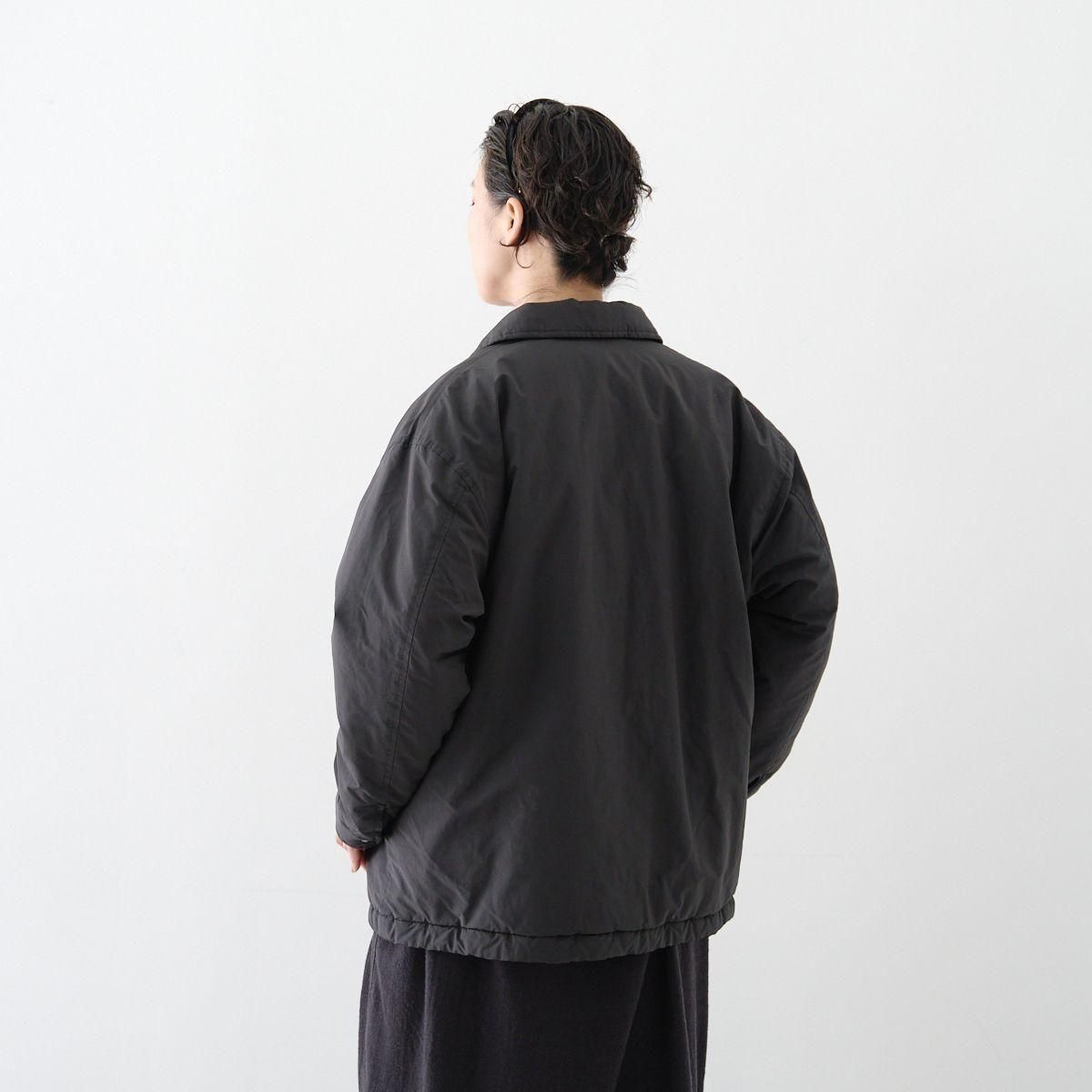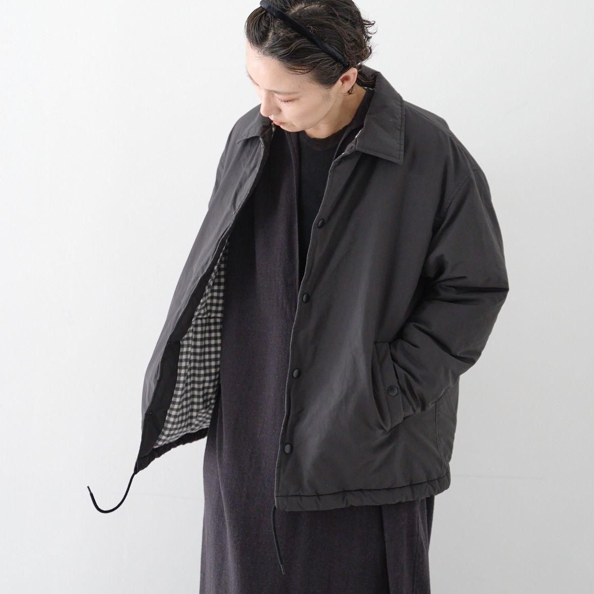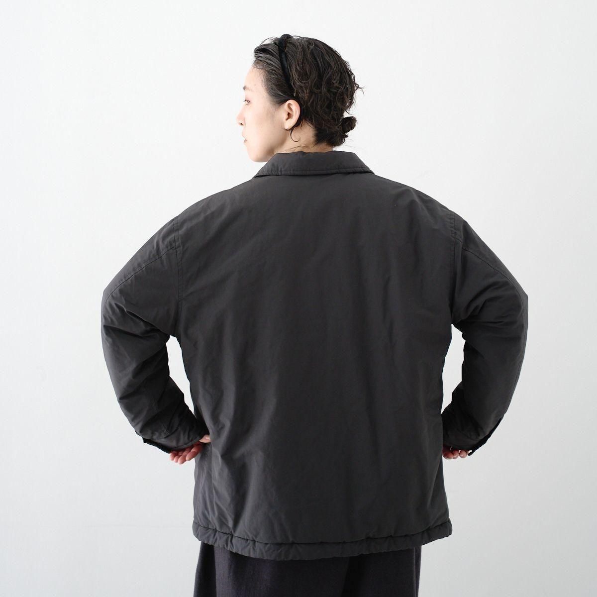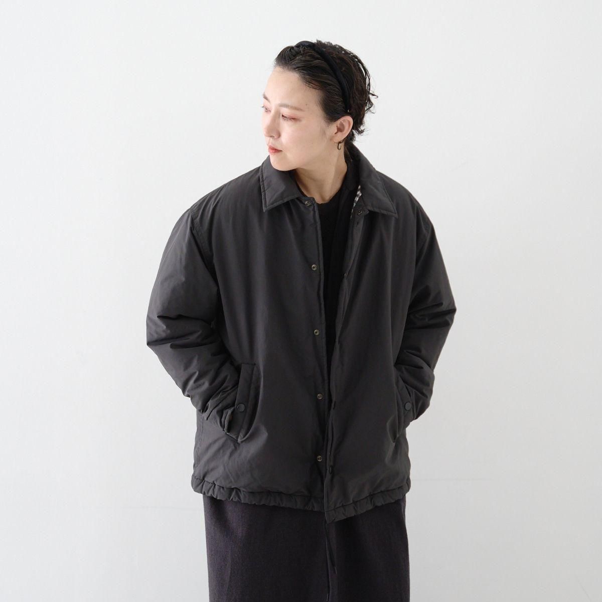 ポータークラシックのコーチジャケット。 表地はしなやかな上質コットン生地、中綿入りの軽量なアウターです。 裏地身頃は柔らかいコットンフランネルギンガム生地。 ちらりと覗いた時も嬉しくなる一着です。 裾のドローコードを絞ったりと防寒はもちろん、シルエットの変化も楽しめます。 男女問わずお召しいただけます。 25AW size:1,2,3,4 1 : 肩幅 53cm 身幅 61cm 着丈 70cm 袖丈 54cm 2 : 肩幅 56cm 身幅65cm 着丈 72cm 袖丈 55cm 3 : 肩幅 59cm 身幅 68cm 着丈 75cm 袖丈 56cm 4 : 肩幅 63cm 身幅 73cm 着丈 78cm 袖丈 55cm color:BLACK MATERIAL / POLYESTER 70% NYLON 30% LINING (BODY) / COTTON 100% LINING (SLEEVE) / NYLON 100% FILLING / POLYESTER 100% 日本製 model:163cm(#2) 取り扱い店舗・・・dieci 芝川ビル店 -------------------------------------------------------- PORTER CLASSIC(ポータークラシック) PORTER CLASSICは「世界基準のスタンダード」をコンセプトに掲げ、日本の伝統技術を生かしたものづくりを行うブランド。世代を問わず長く愛されるアイテムづくりを目指し、流行りにとらわれない普遍的なデザインを提案しています。映画や芸術など、文化的な背景を感じさせる佇まいも魅力のひとつ。また、日本の職人とともに歩み、その技術を次世代へ継承することにも力を注いでいます。アイテムだけではなく、製造環境や過程にまでこだわる姿勢が、PORTER CLASSICらしさを形づくっています。
