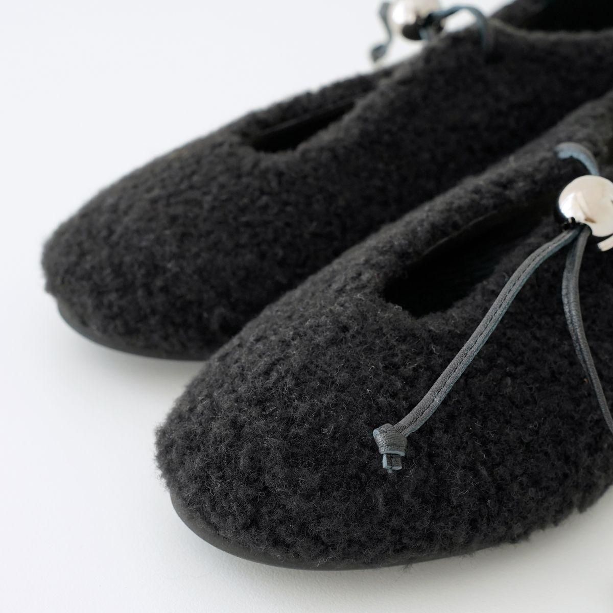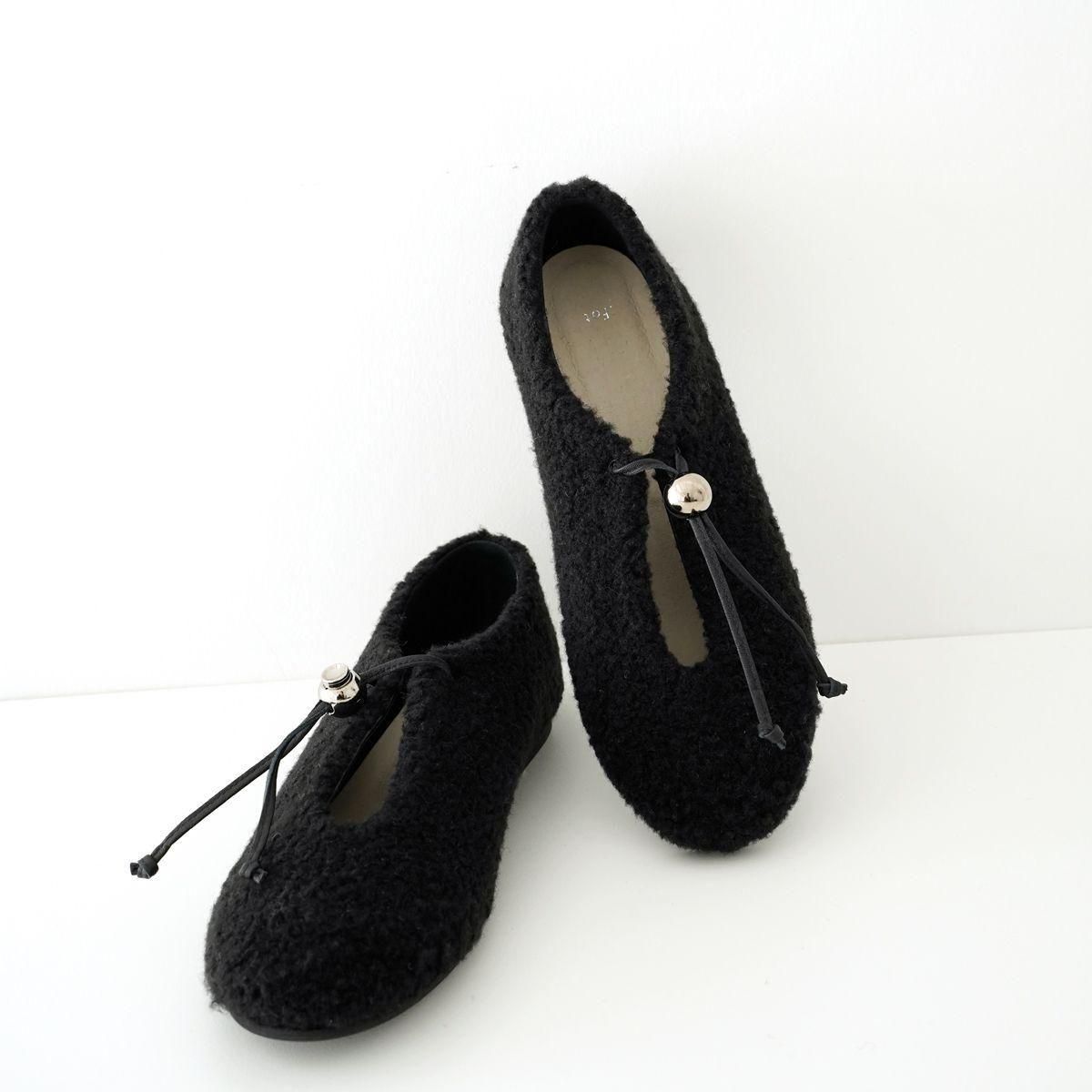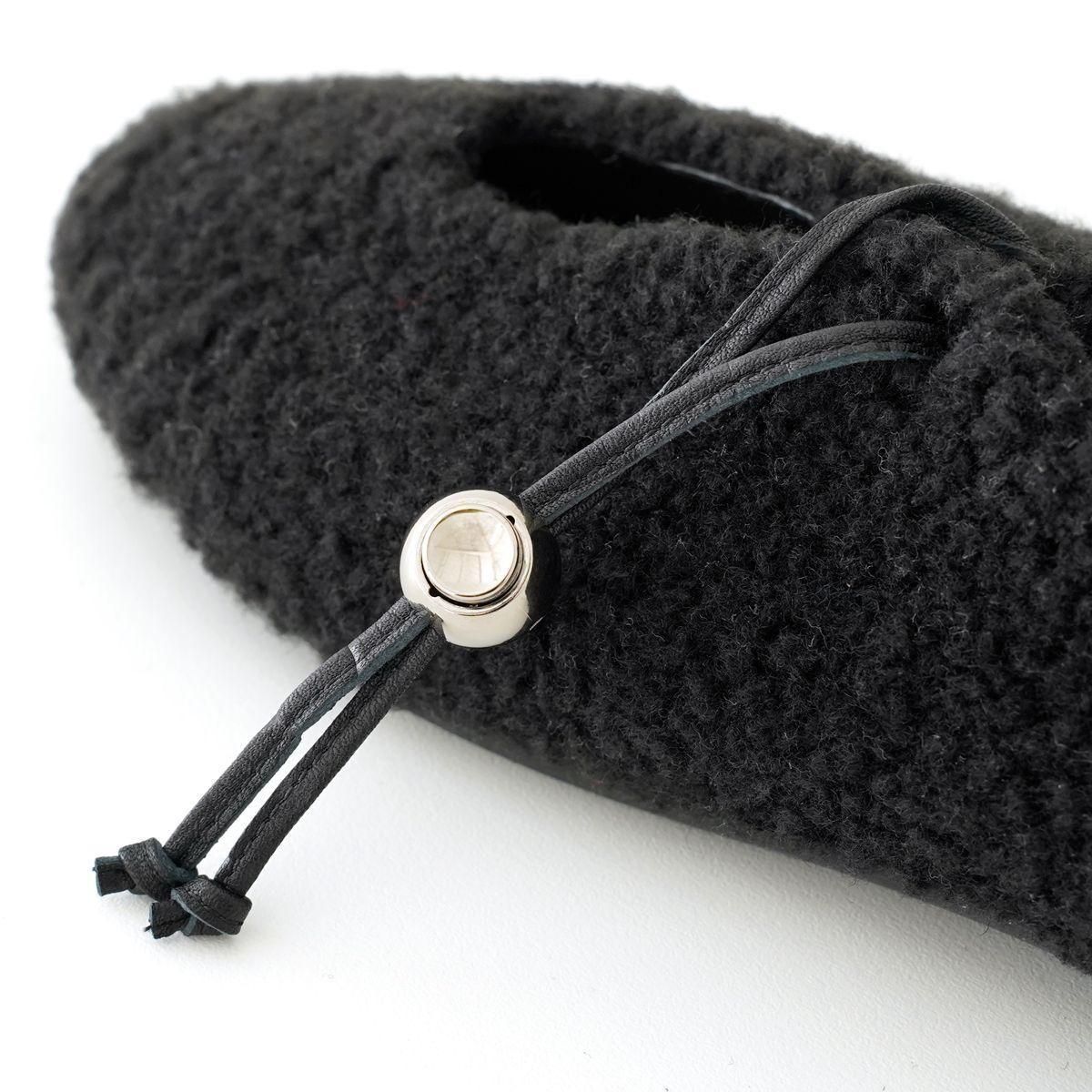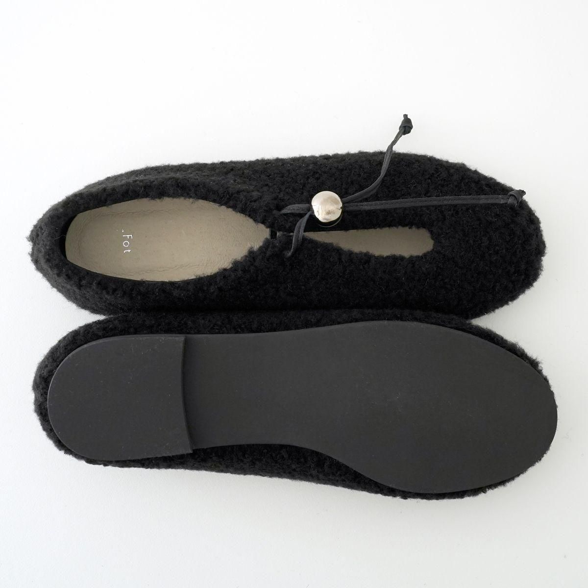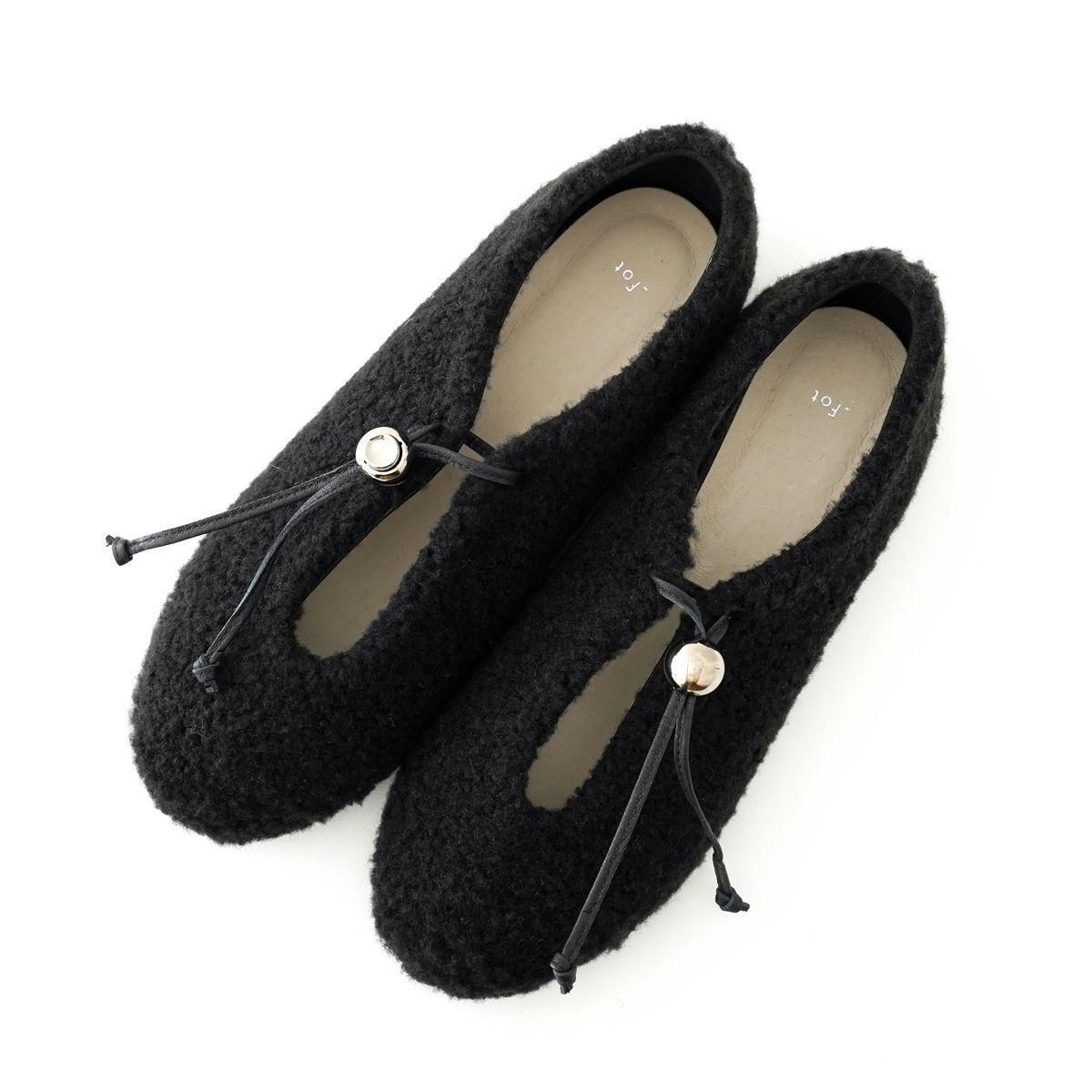 日本の職人技術を活かし、現代にも通用するデザインを生み出すブランド「_Fot」をご紹介します。 _Fot(フォート) ○△□をモチーフにした 上質なレザーシューズやバッグ、アクセサリーを展開 職人の手により一つ一つ仕上げられる高いクオリティと、曲線や温かみのある有機的かつ普遍性のあるデザインによるファッション性も兼ね揃えた作品を作り上げています。 metal ballのコードロックが付いたフラットシューズ。 _Fotのアイコニックなメタルボールがポイントになり、機能的にも作用しています。 紐を結ばずにスライドで簡単に着脱することができます。 ボア素材のふっくら柔らかい印象に、メタルボールやシューレースのラインがアクセントになっています。 color: black/silver ball size:37(23.5cm),38(24cm),39(24.5cm)40(25cm) material:upper boa pile,lining:pig leather,sole:micro rubber sole ※革や木など天然素材を使用している製品が多くございます。本来の風合いを生かしたまま加工しておりますため、一点ごとに色味や風合いが異なります。そのため、多少の色ムラ、汚れ、キズ、毛の長さや濃淡の差、木目の個体差などが見られる場合がございます。また、水分や摩擦によってシミや色落ちなどの原因となる恐れがありますので、薄い色の衣類を着用の際はお気をつけください。 取扱い店舗…dieci芝川ビル店