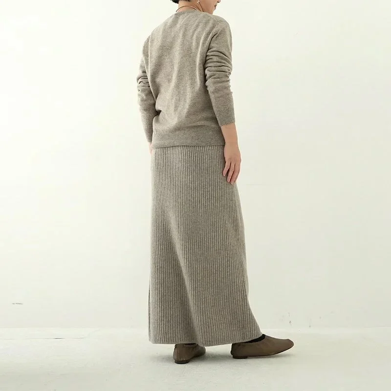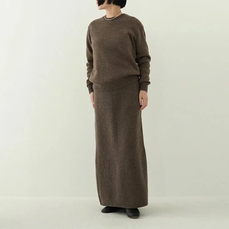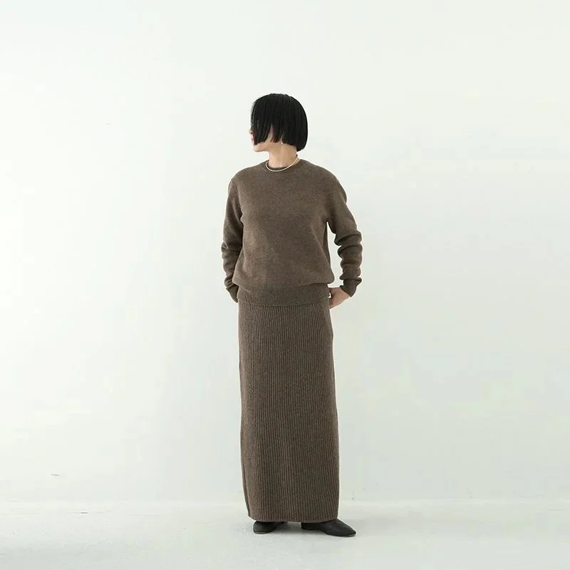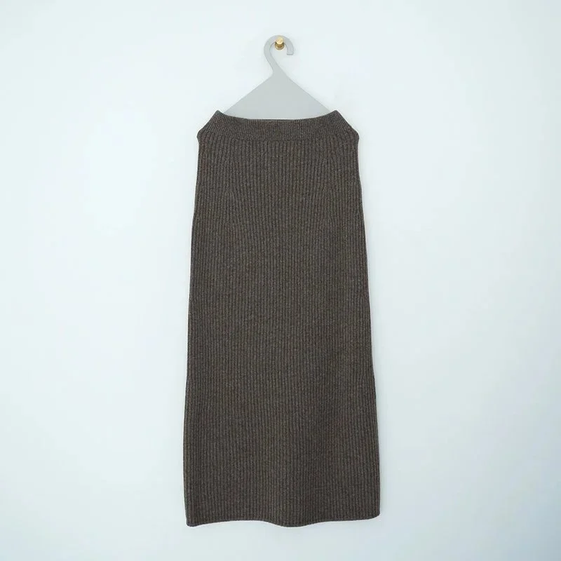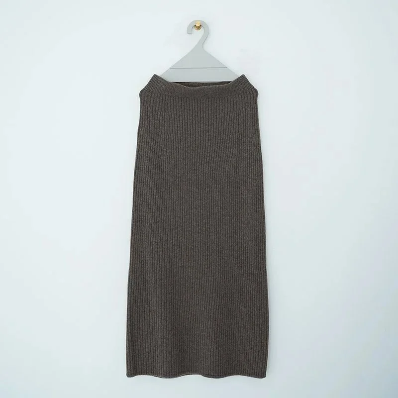 TORICI(トリチ)は手触りの良さ、軽さ、強さ、そして色彩の美しさ全てを満たす高品質な糸を世界中から厳選し日本の職人の手仕事で一着一着丁寧に編み上げる高いクオリティとシンプルなデザインで長く使える時代に左右されない「定番」としてのニットウェアブランドです。 「黒羊」ことブラックメリノは、イギリスで「変わり者」を意味する慣用句です。メリノウールを白く細かく改良する過程でごく稀に黒い羊が生まれるのだという。良質な毛を敢えて無彩色(ブラウンベージュ)の自然な色合いのまま厳選し、Share=「誰もが着れる、分かち合う」の想いをシリーズ名に乗せて。 24AWは5Gと10Gの間の7Gが新しく入荷しました。程よい厚みがあり、それでいて着膨れしない、絶妙なゲージ数になっています。脚全体をもっちりと包み込んでくれるその質感と丈感は冬の味方になること間違いなしです。 すっきりとしたシルエットのニットスカートは、リブが着る方を美しく見せてくれる上品さに加えて、暖かさも兼ね備えた寒い冬に手放せなくなるアイテムです。 ウエストはゴム仕様で体型を選ばず、同色のニットとセットアップのように着ていただくのもおすすめです。 TORICI 自動機 7G size:F ウエスト32cm, 着丈97cm, 裾幅54cm ※サイズには個体差がございます。ご了承くださいませ。 color: ブラウン, ベージュ material:wool 100% model:160cm 取扱い店舗…dieci kyutaro店2F